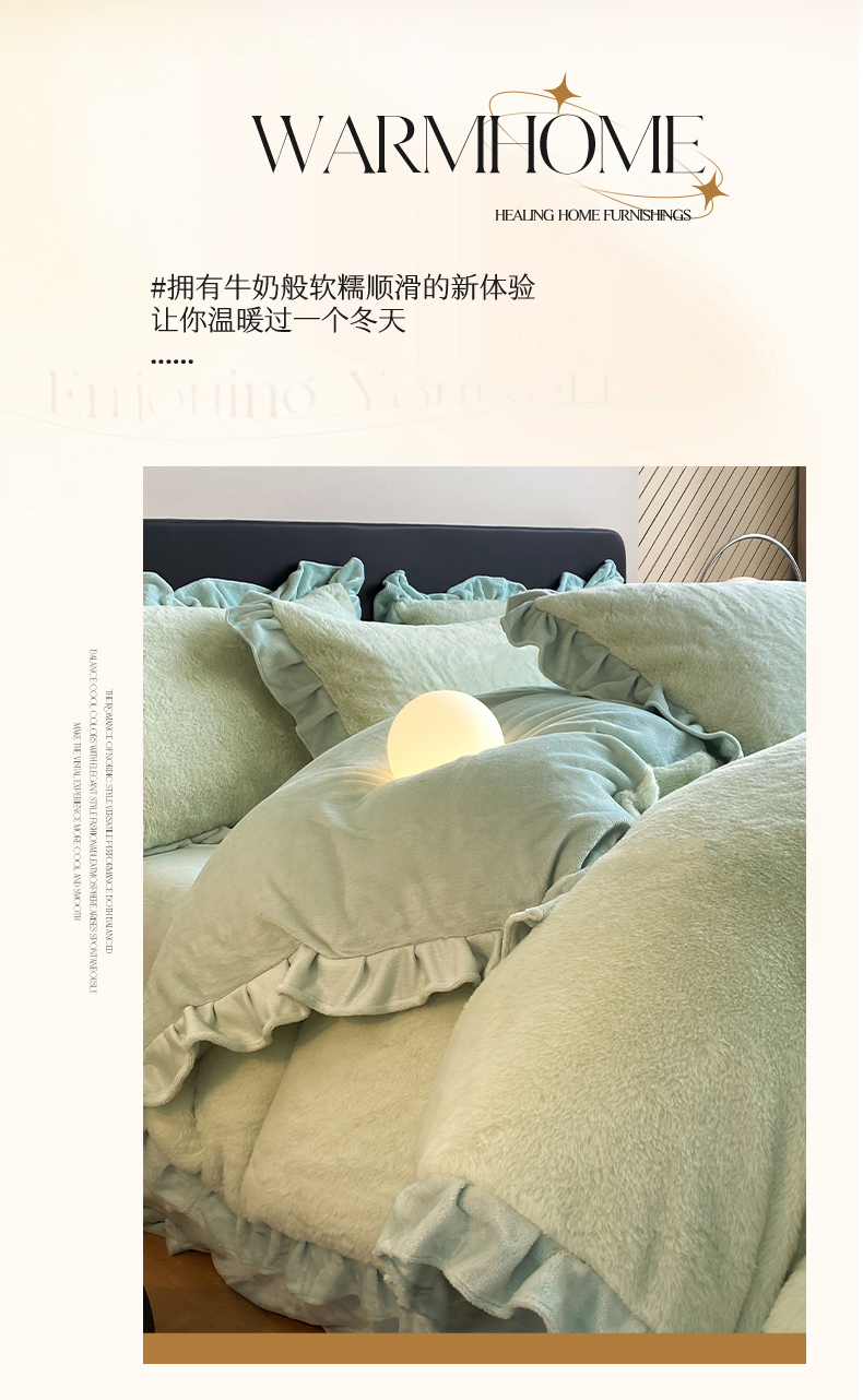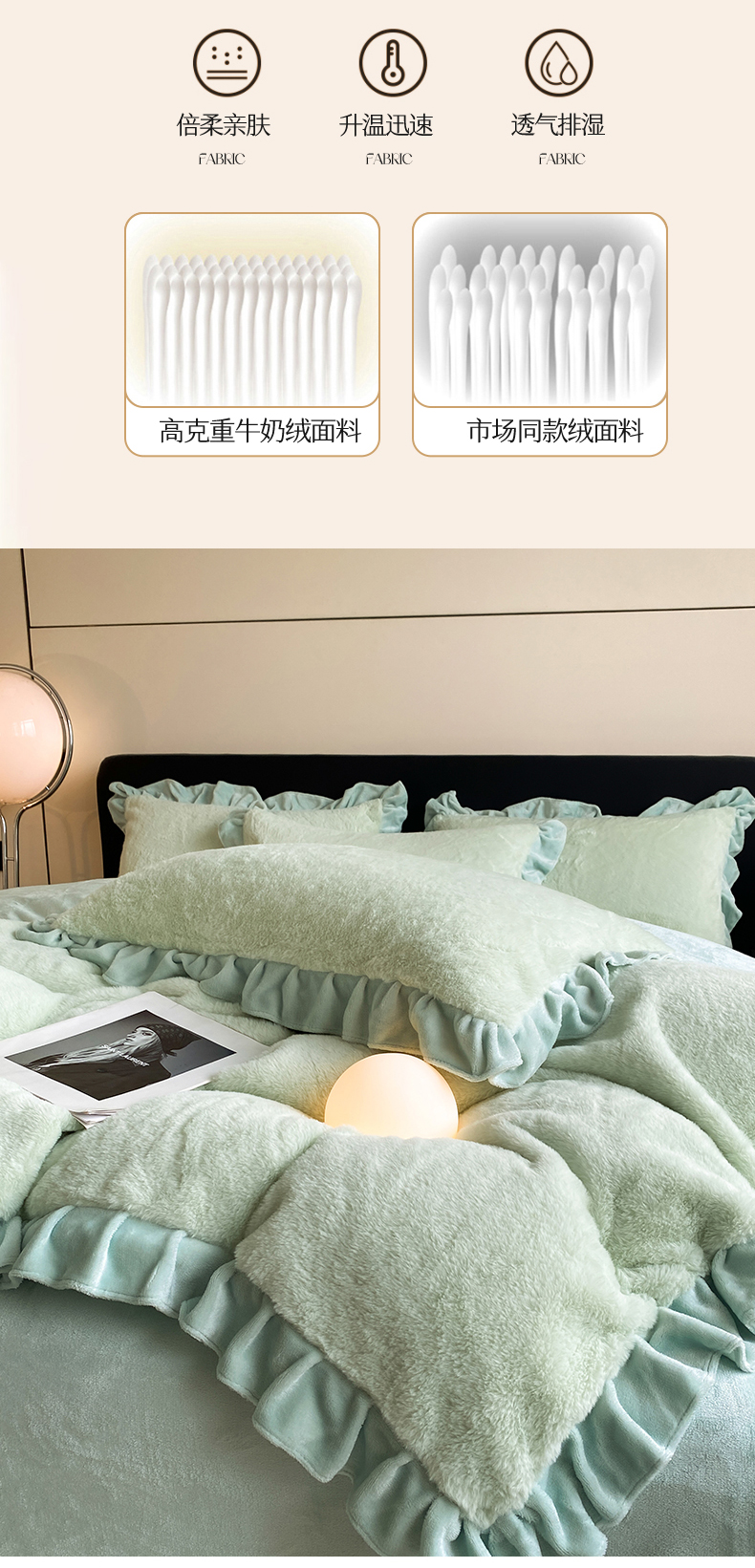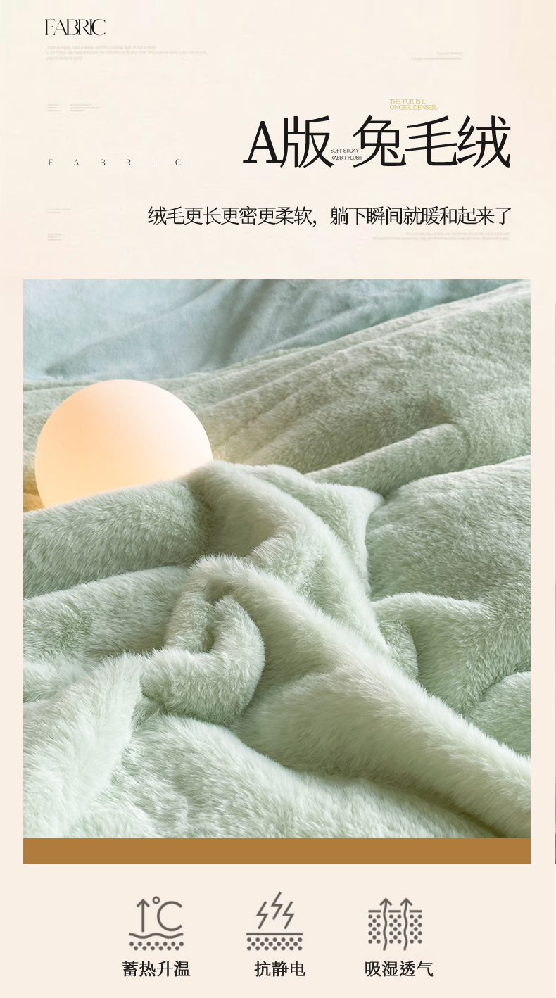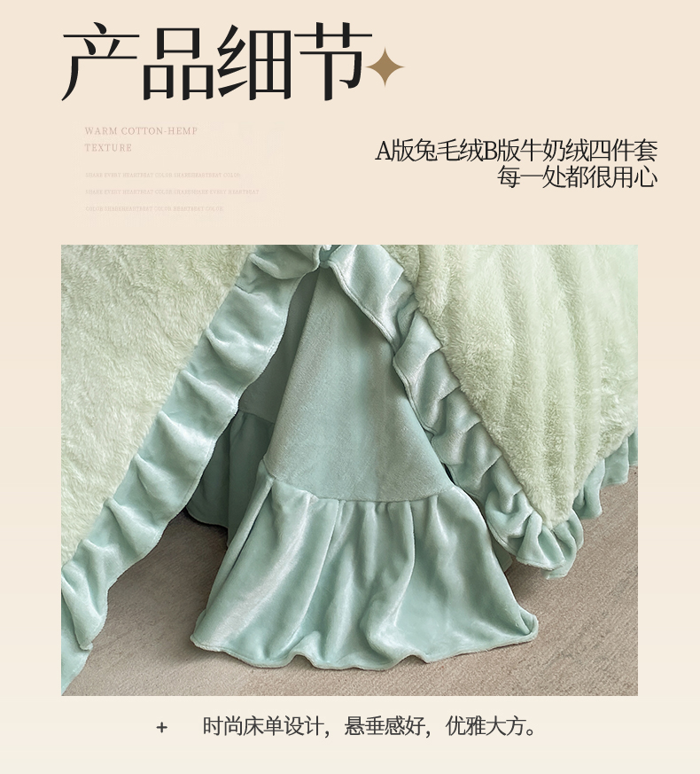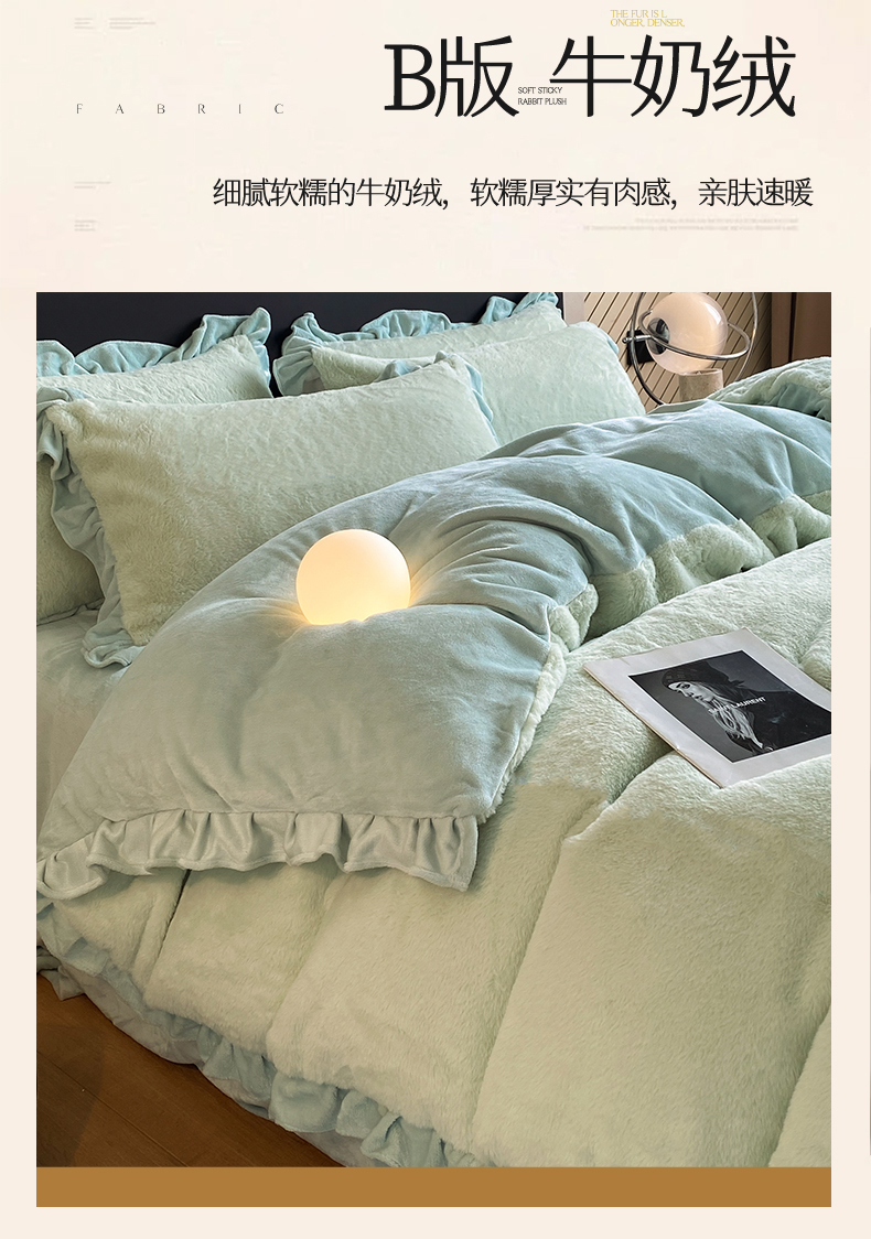 商品名称:2024新款AB版兔毛绒韩版四件套 抹茶绿