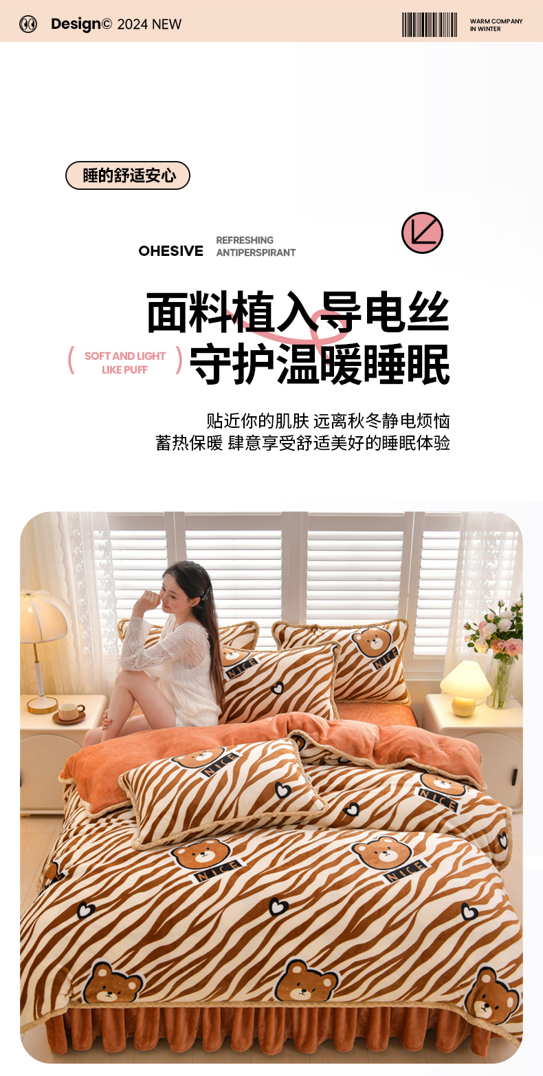 商品名称:绒耀 2025新款高克重牛奶绒四件套保暖四件套直播爆款电商爆款 熊先生