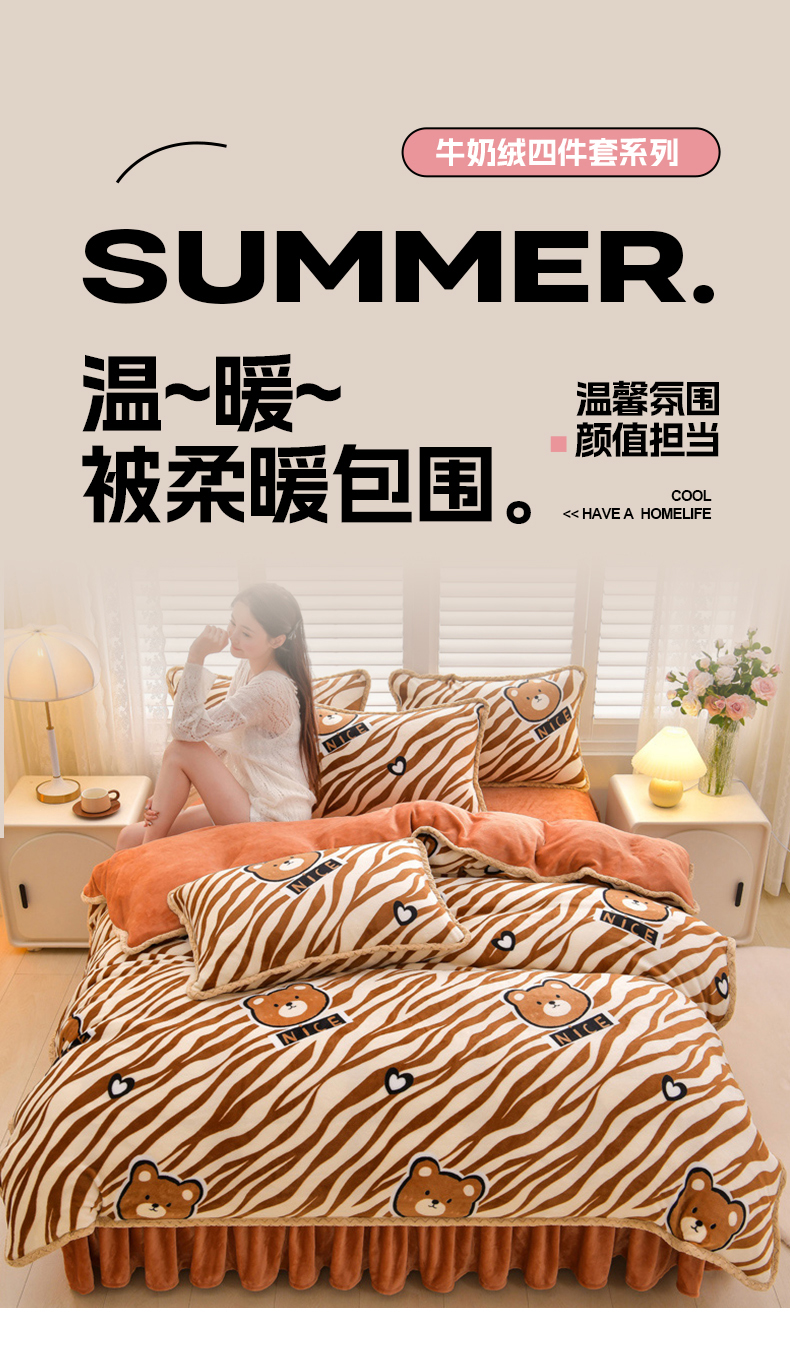 绒耀 2025新款高克重牛奶绒四件套保暖四件套直播爆款电商爆款 熊先生