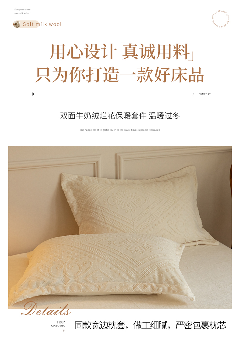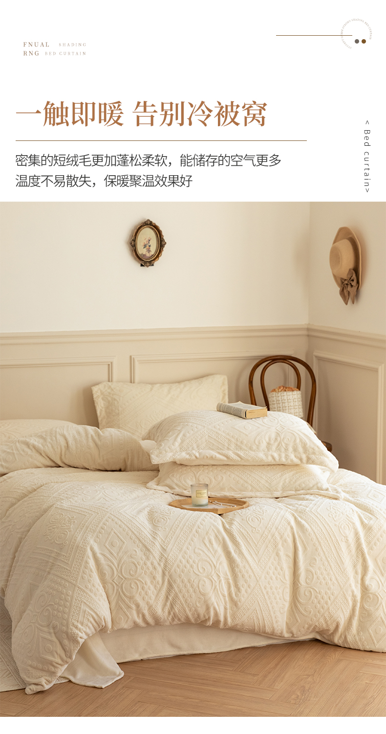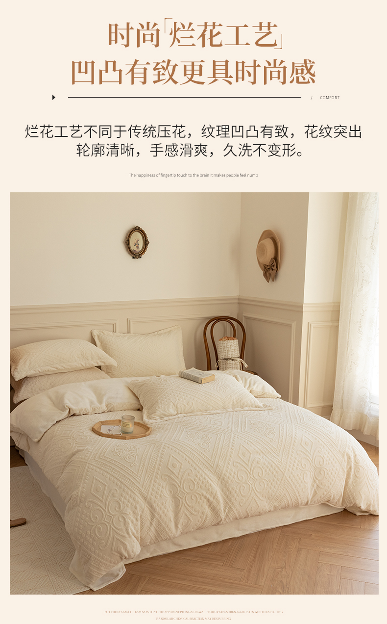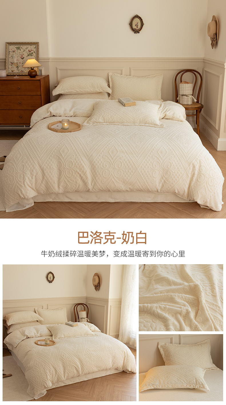 商品名称:优彩 2025年高克重烂花立体雕花牛奶绒四件套【买家秀联系商家】巴洛克奶白