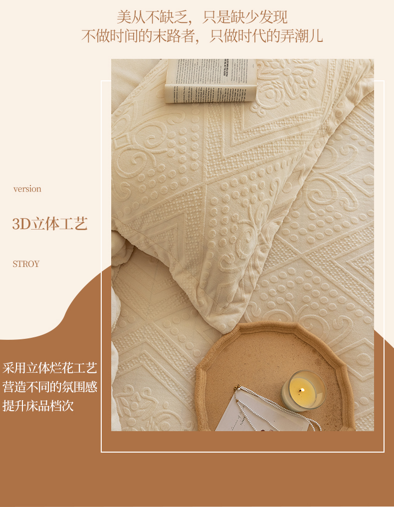 优彩 2025年高克重烂花立体雕花牛奶绒四件套【买家秀联系商家】巴洛克奶白