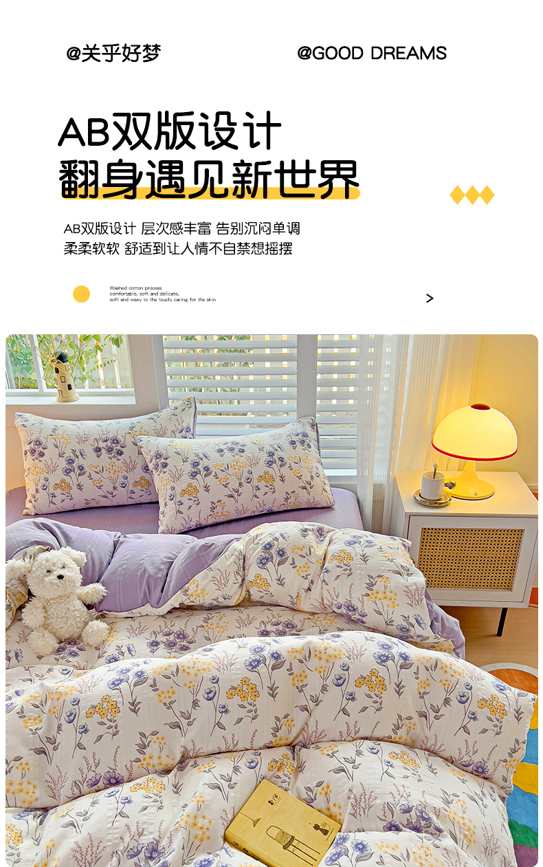 当前位置: 91家纺网 > 商品网购 > 床品套件 > 四件套 > 其它四件套 > 优选良品 2025新款有氧提花云纱棉圆角吊边工艺款四件套学生三件套 紫苏苏
