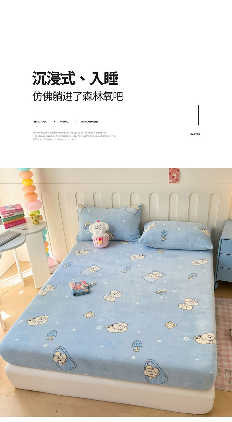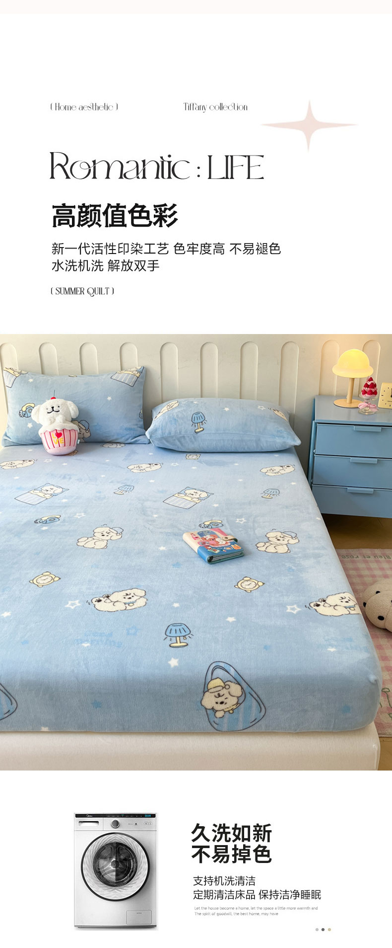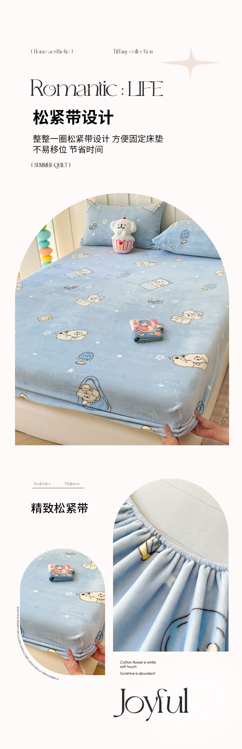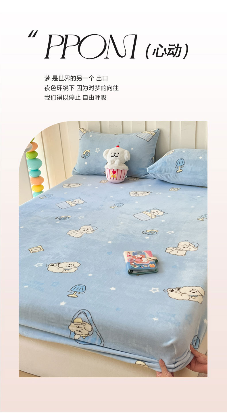 商品名称:星座家纺 2025新款小清新牛奶绒单床笠 早安狗