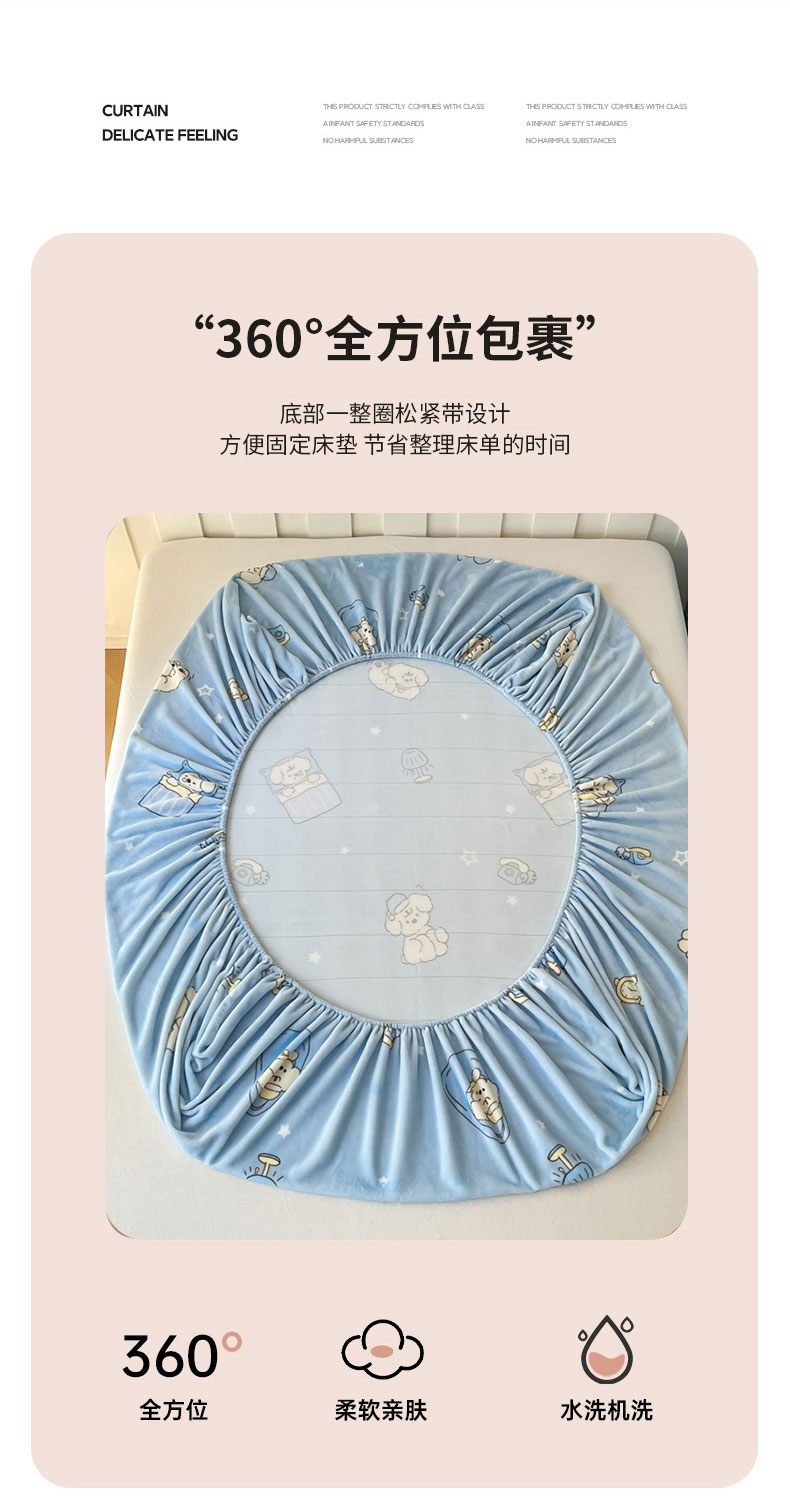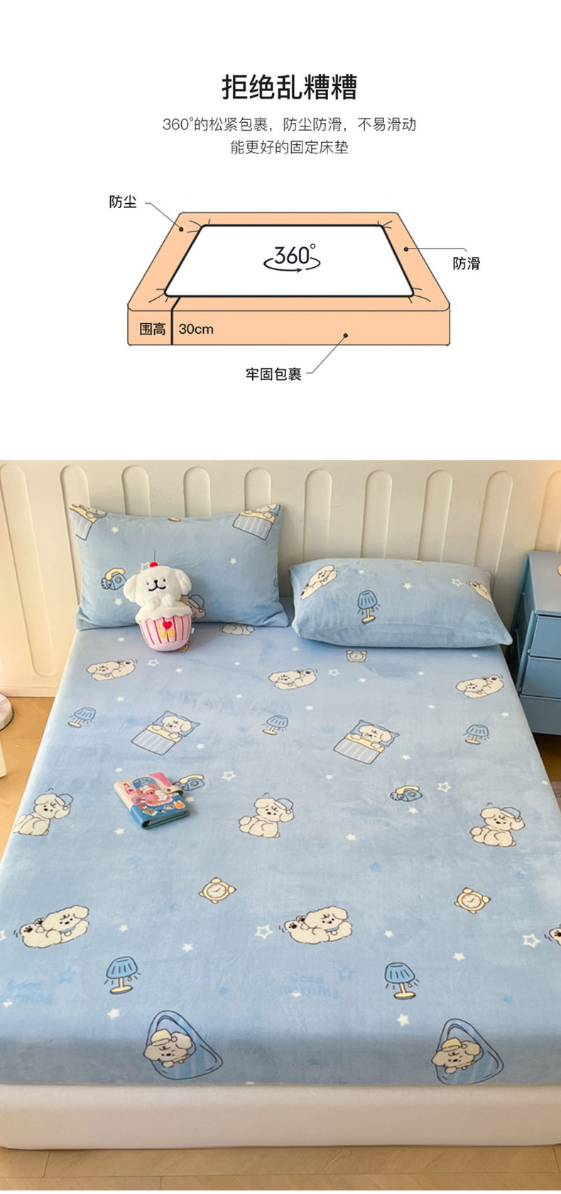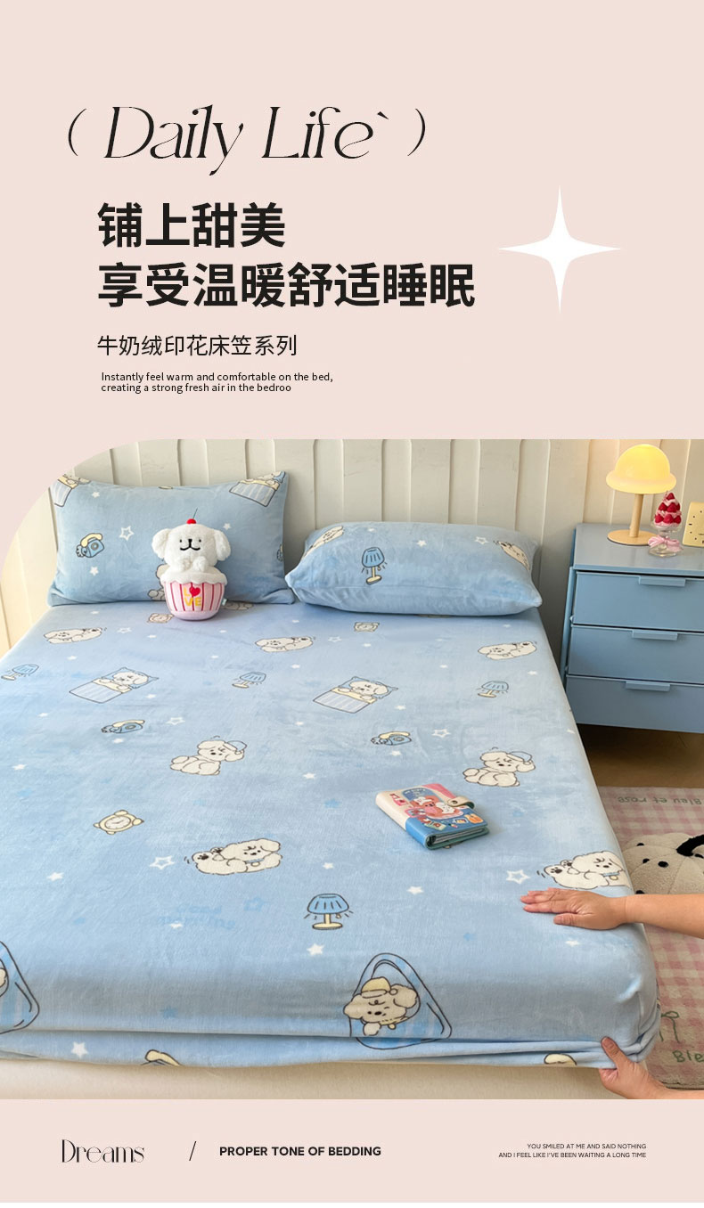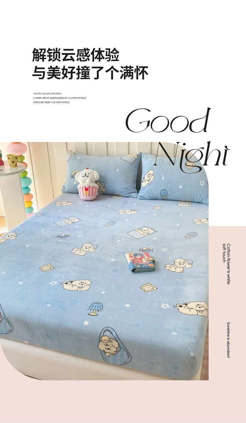 商品名称:星座家纺 2025新款小清新牛奶绒单床笠 早安狗