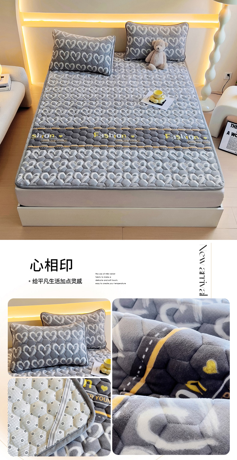 当前位置: 91家纺网 > 商品网购 > 床垫/床褥 > 普通床垫 > 情煊家纺 2024新款A类牛奶绒印花夹棉床垫 心相印