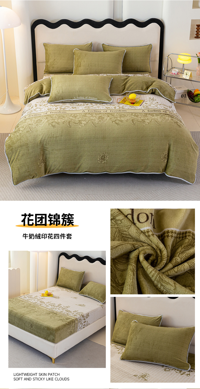 当前位置: 91家纺网 > 商品网购 > 床品套件 > 四件套 > 牛奶绒四件套 > 欧喜璐 2024年新款 8.5-9.5斤加厚牛奶绒金貂绒法莱绒四件套单被套 花团锦簇