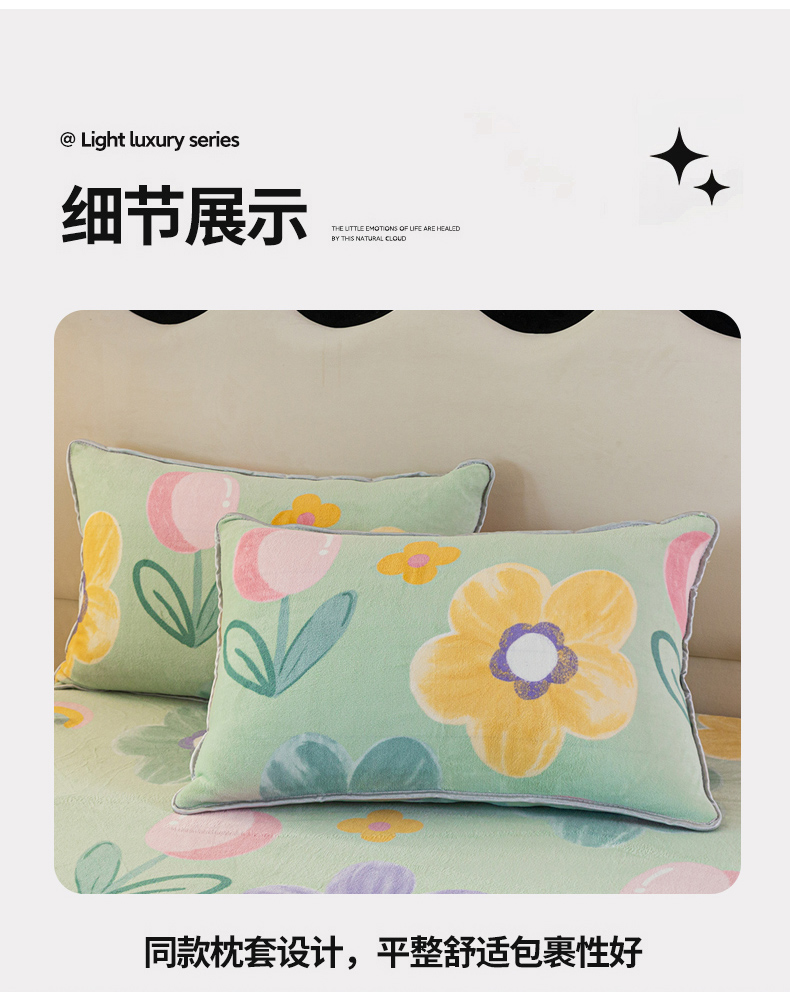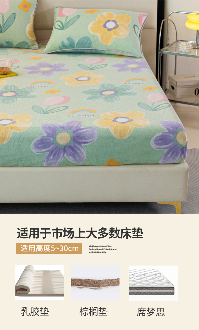 商品名称:欧喜璐 2024新款A类加厚牛奶绒印花单床笠 花海