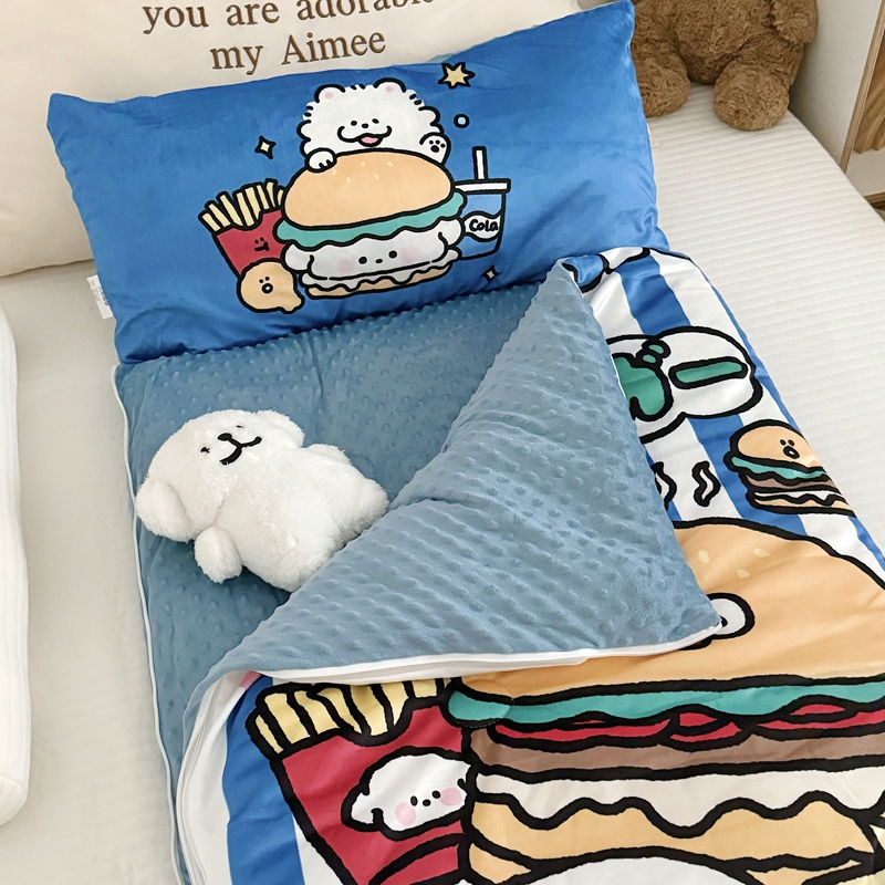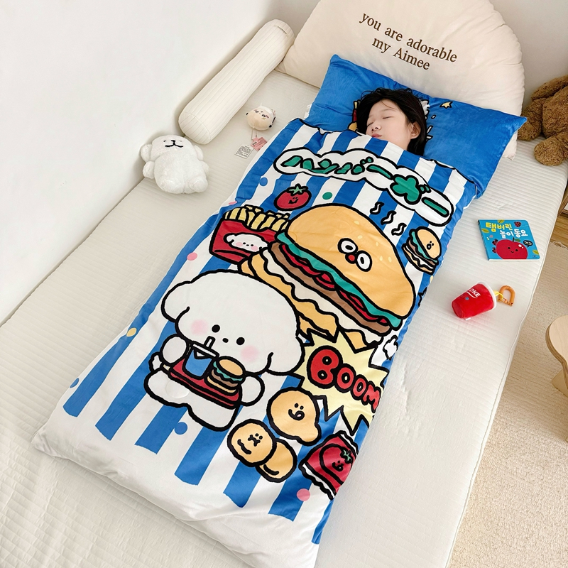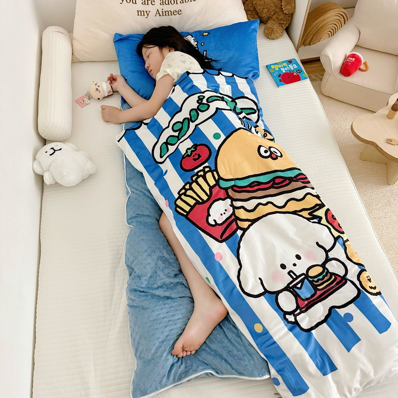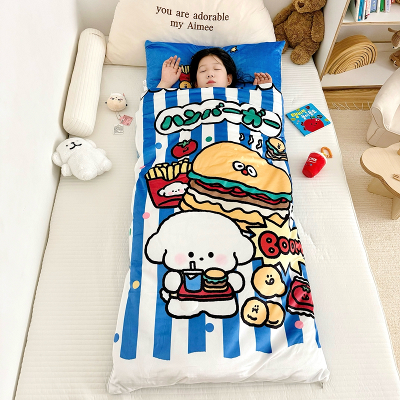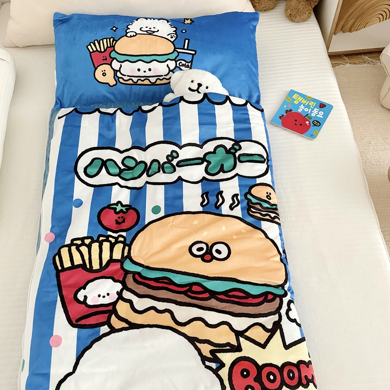 (总)美乐迪家纺 2024新款儿童睡袋,蛋糕猫咪,汉堡,汉堡狗蓝,帽子熊,甜甜圈,兔子,熊猫,宇航员