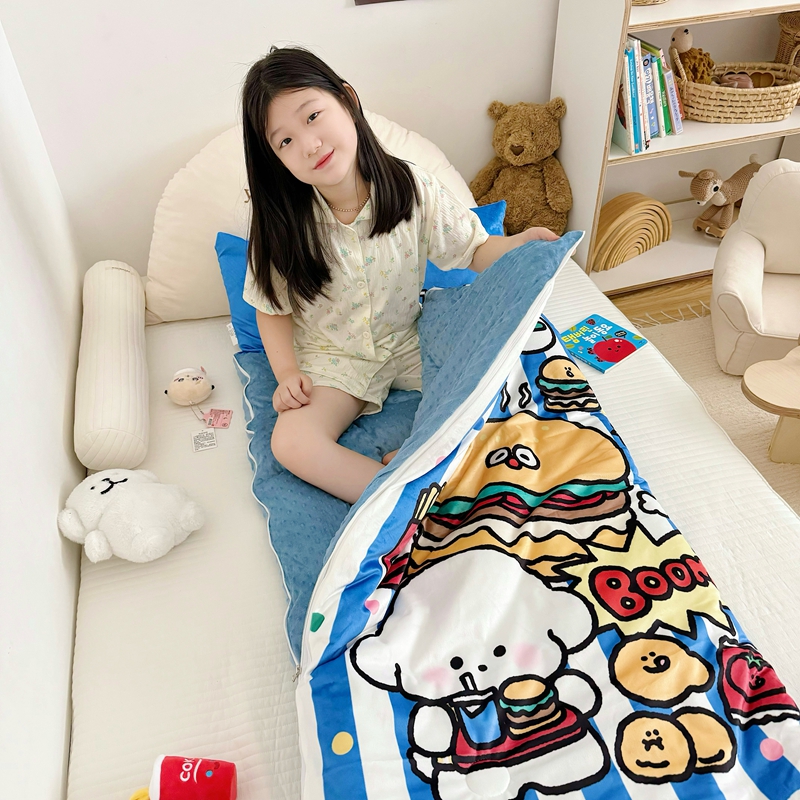 美乐迪家纺 2024新款儿童睡袋 汉堡狗蓝