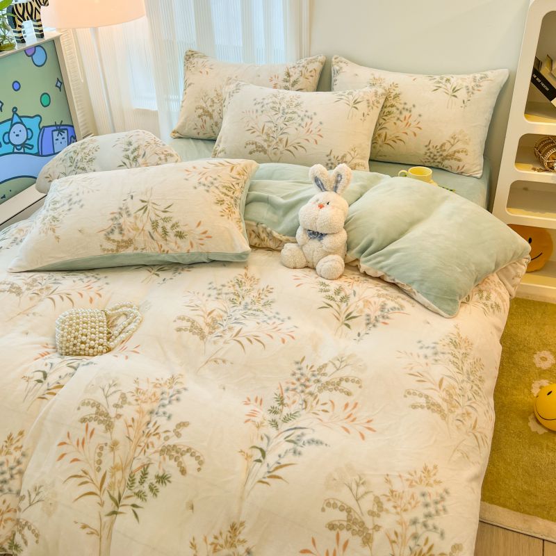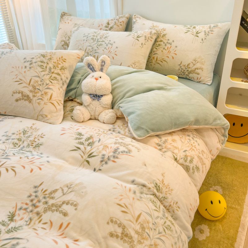 商品名称:2024新款原创白色小清新场景牛奶绒单被套 田园