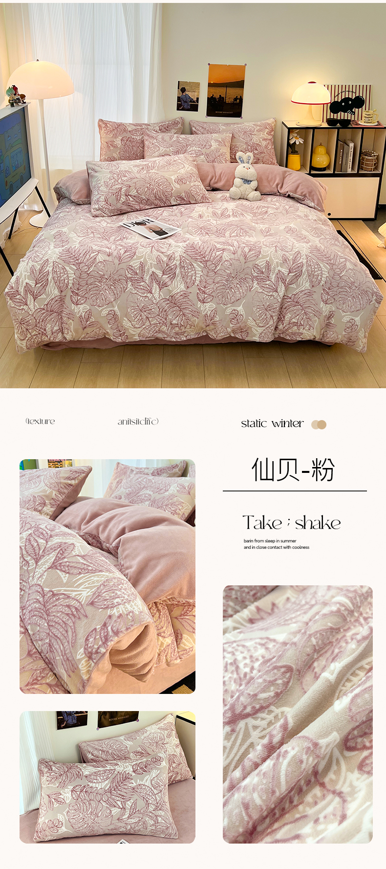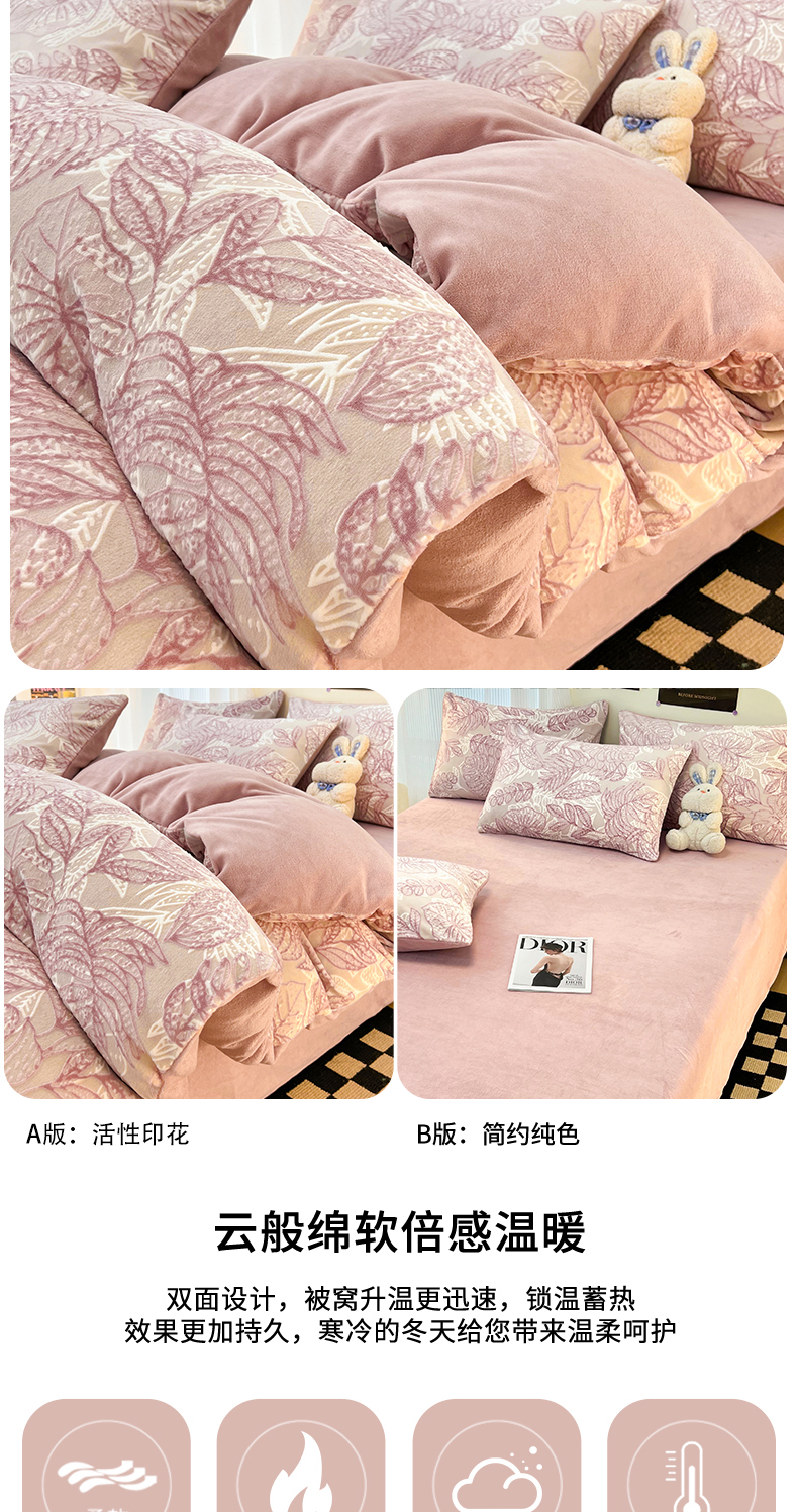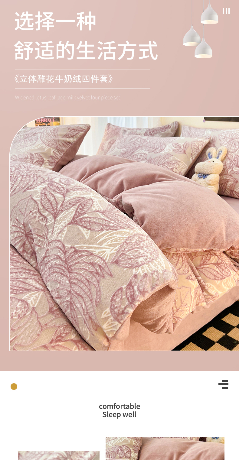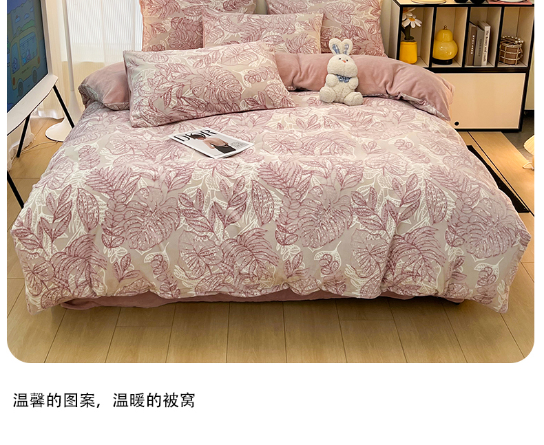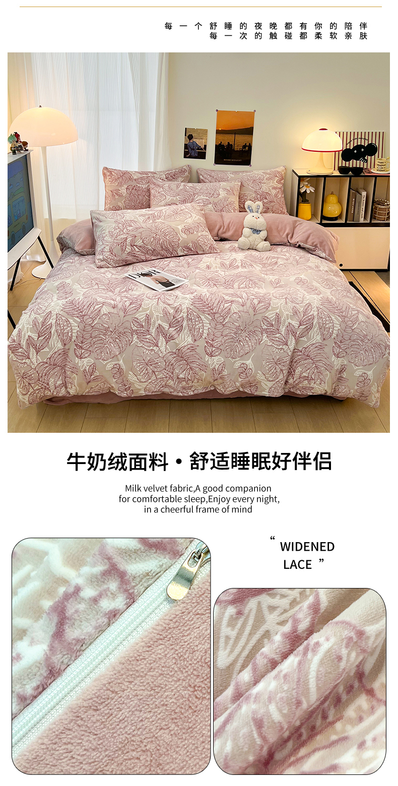 当前位置: 91家纺网 > 商品网购 > 床品套件 > 四件套 > 牛奶绒四件套 > 2024新款原创白色小清新场景雕花牛奶绒单被套四件套 仙贝-粉