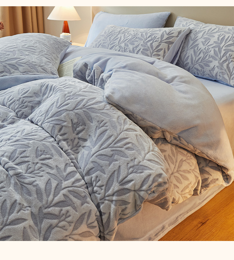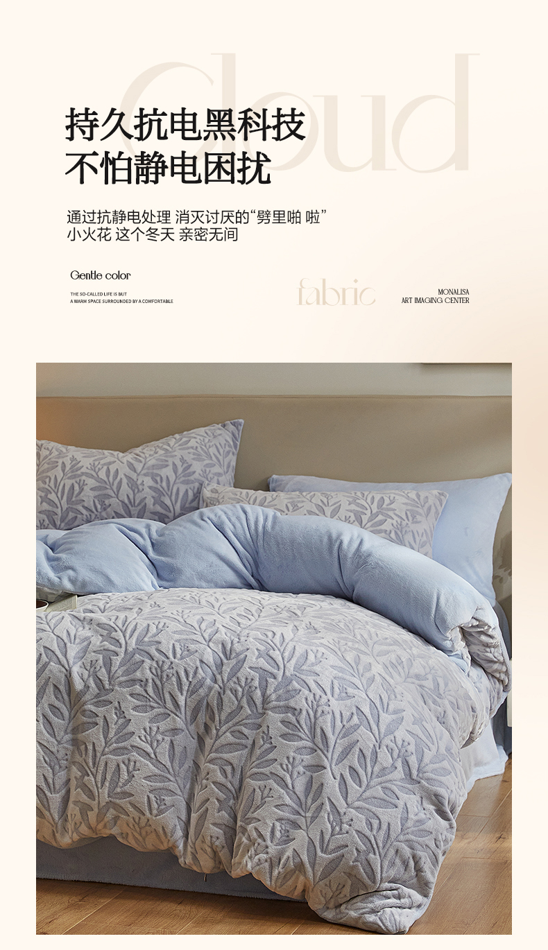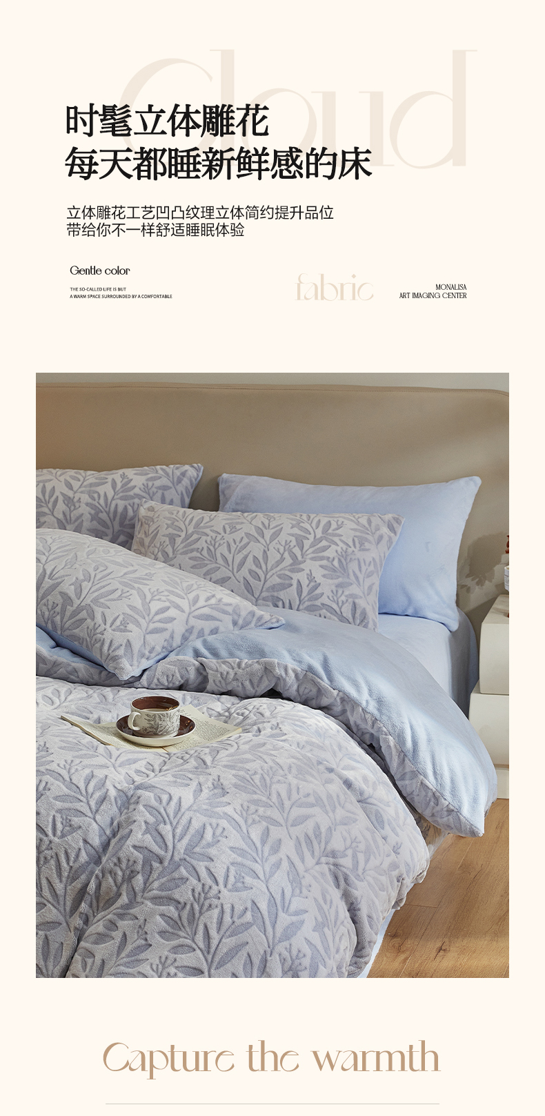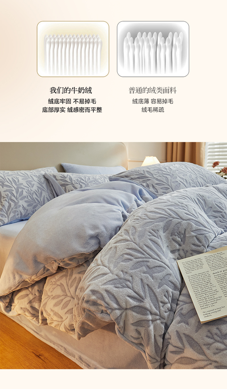 (总)三朵家纺 2025新款3D立体加厚雕花绒牛奶绒四件套-米兰系列,米兰-灰,米兰-蓝,米兰-玉,米兰-紫