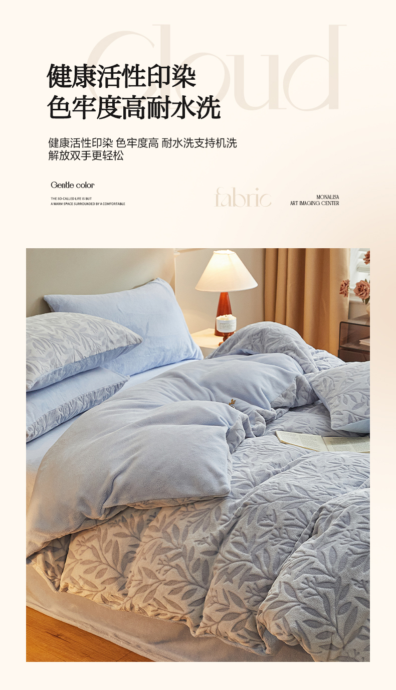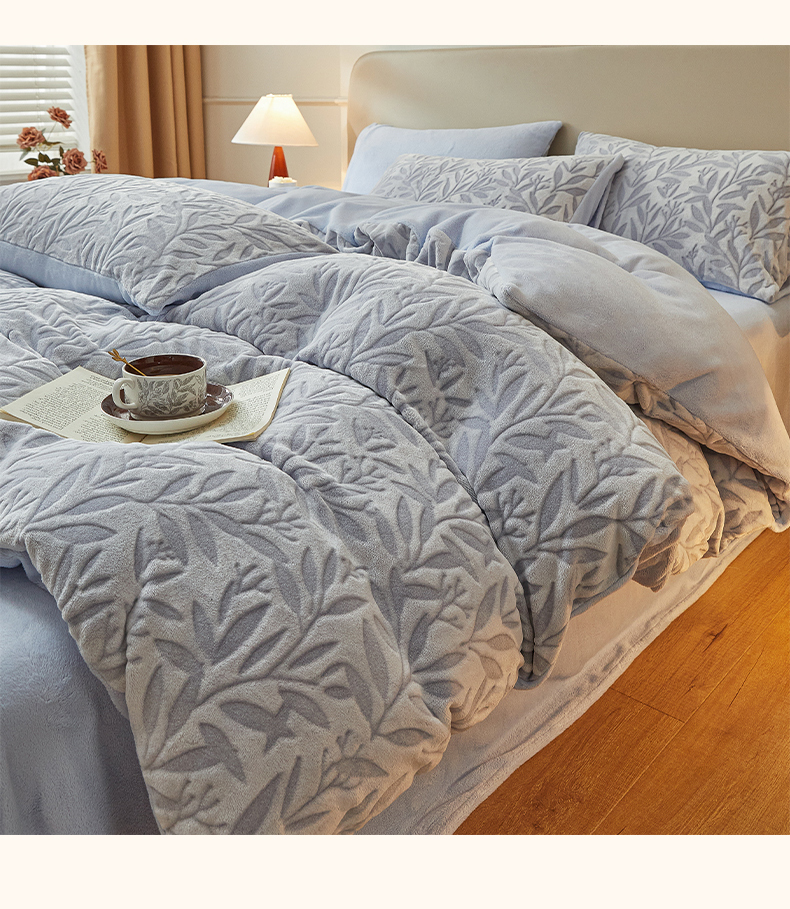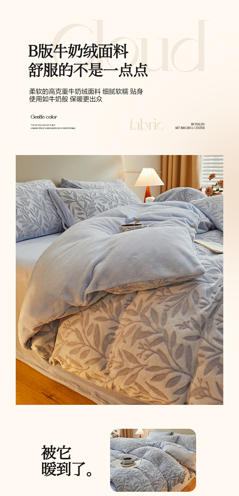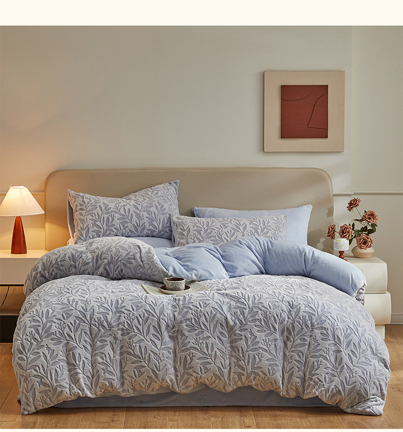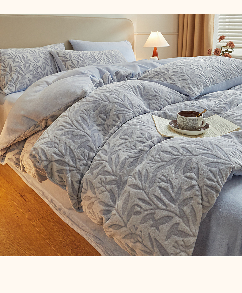 (总)三朵家纺 2025新款3D立体加厚雕花绒牛奶绒四件套-米兰系列,米兰-灰,米兰-蓝,米兰-玉,米兰-紫
