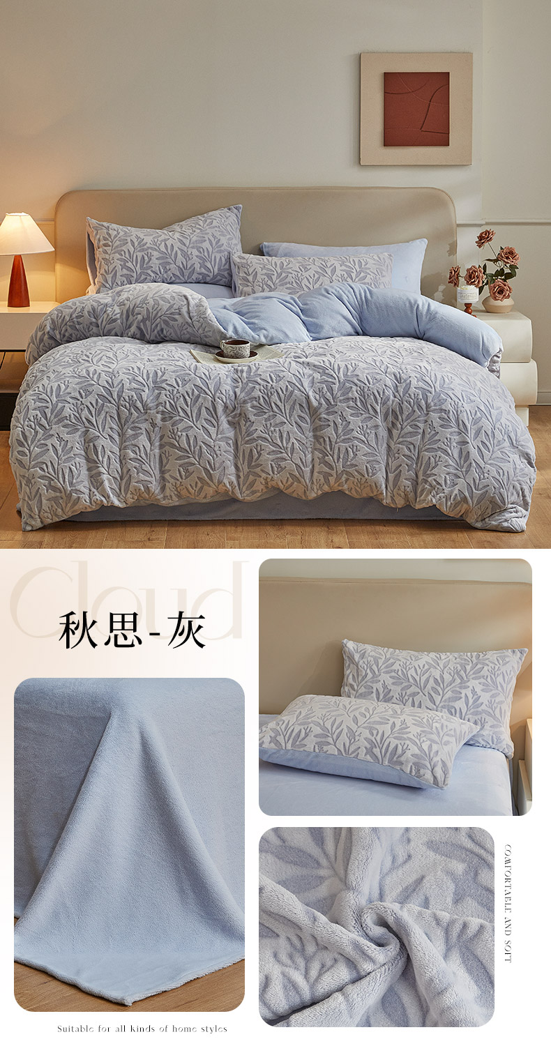商品名称:三朵家纺 2024新款立体浮雕保暖加厚四件套 秋思-灰