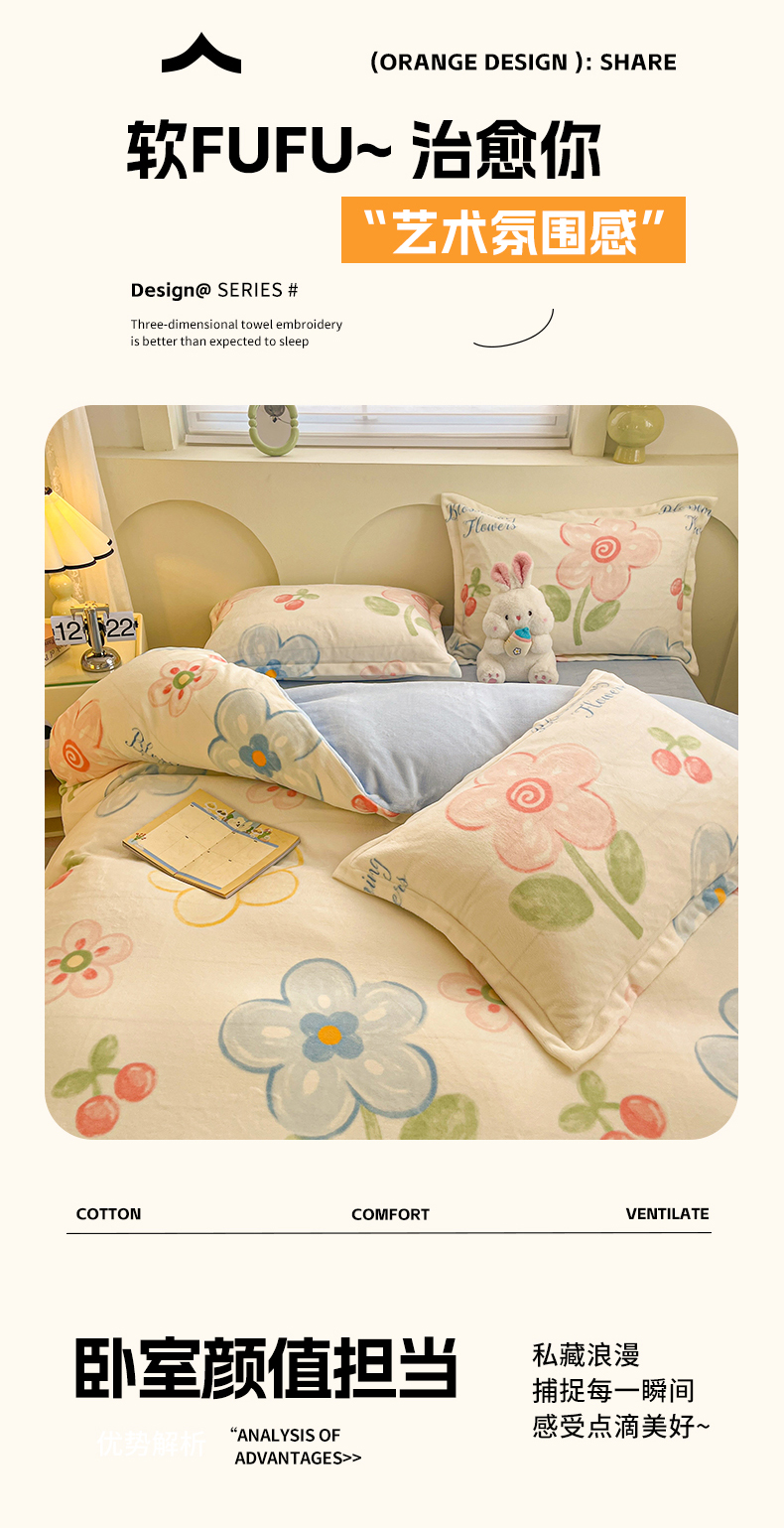 商品名称:(总)梦之岛 2024新款高克重小清新印花牛奶绒保暖四件套