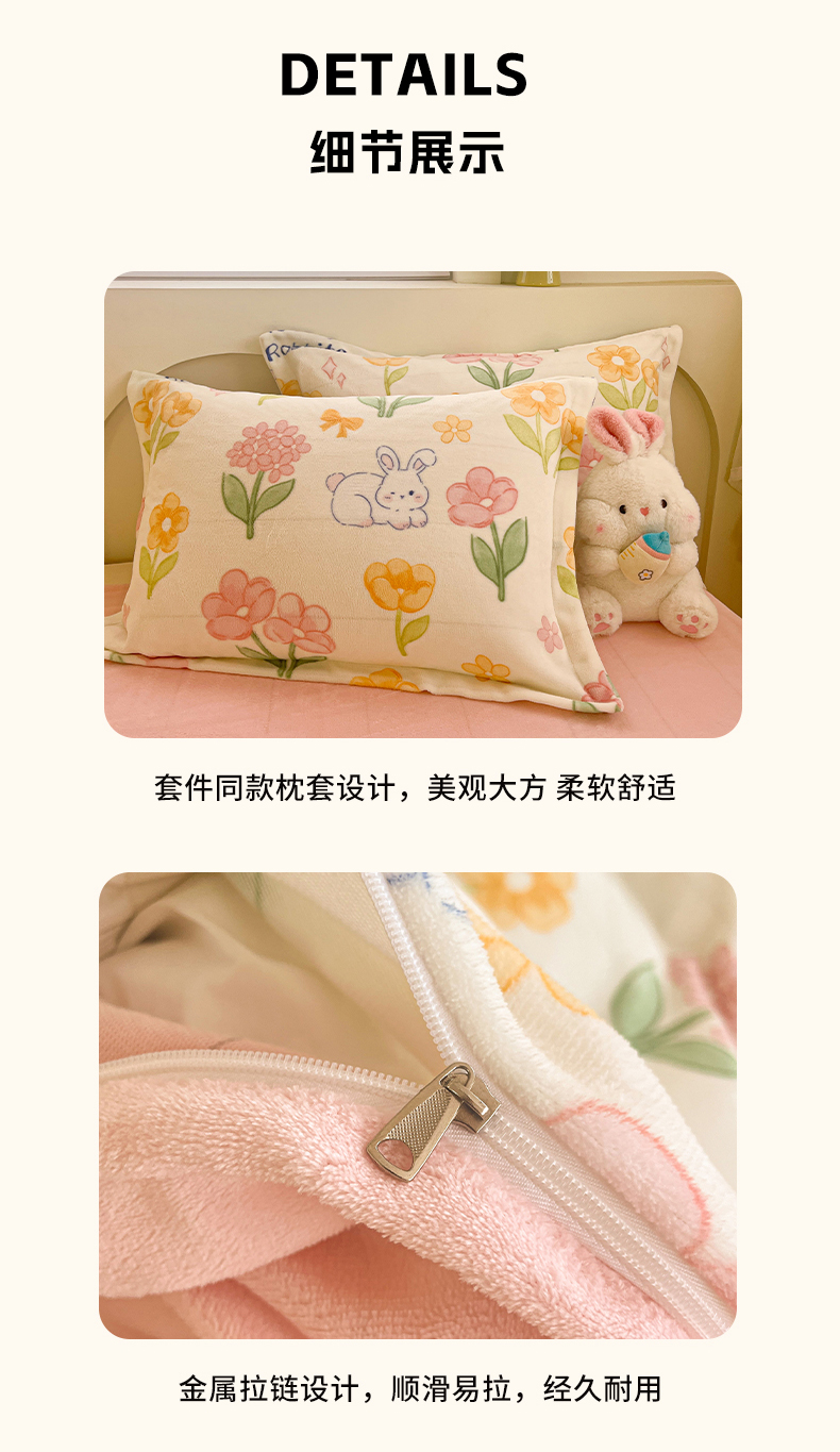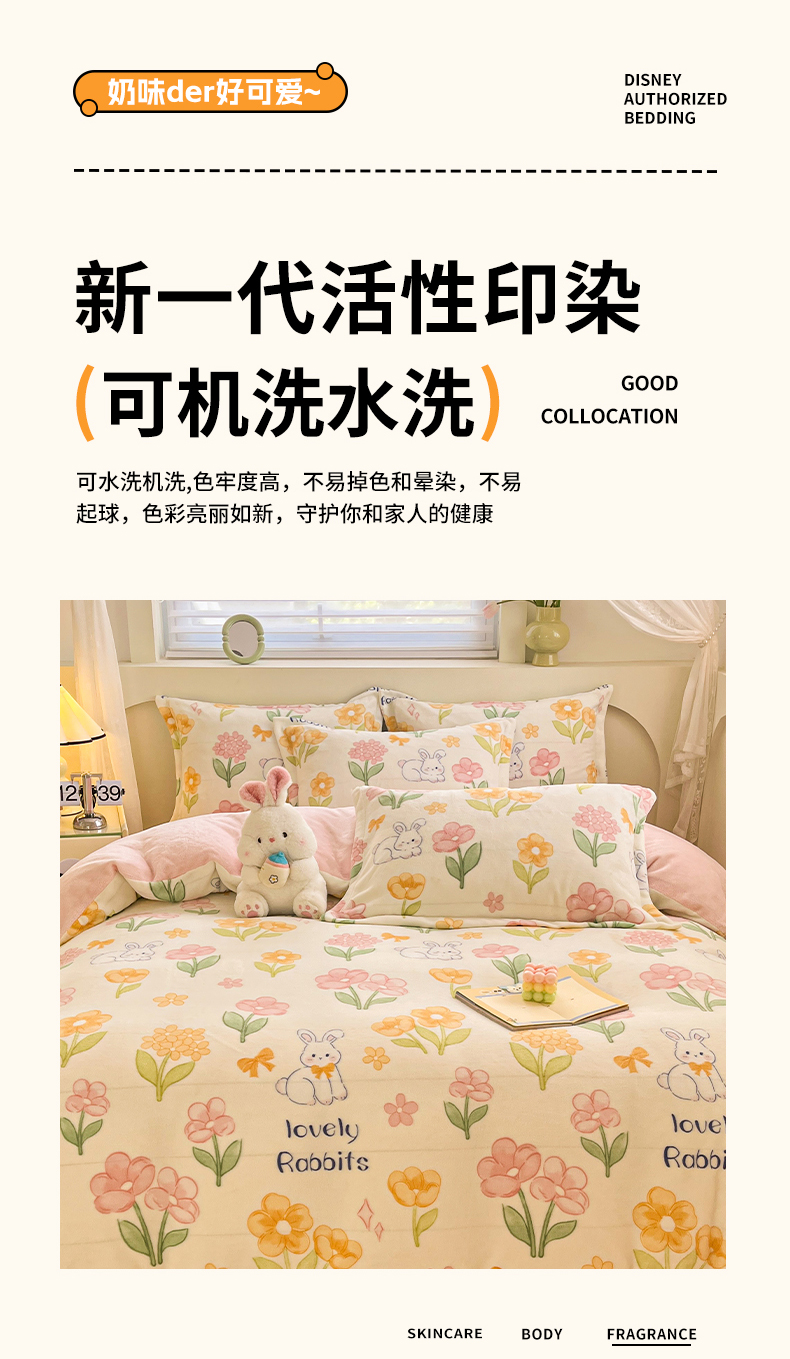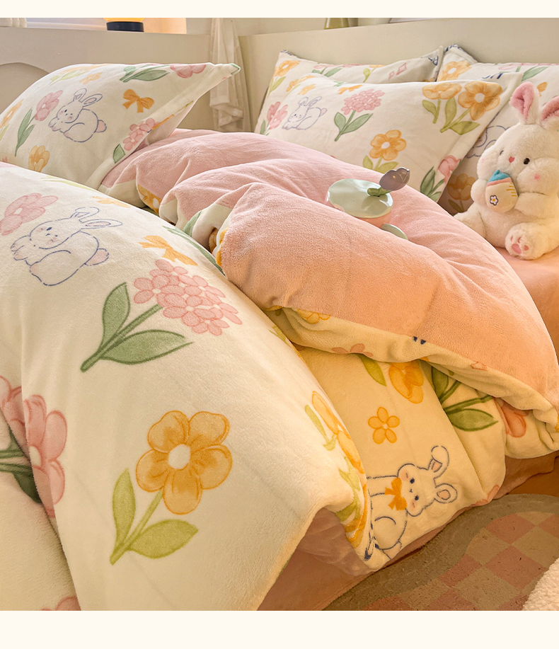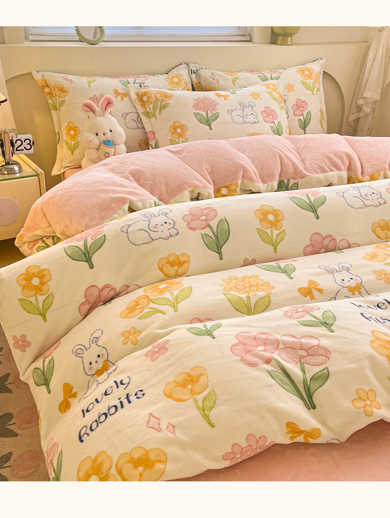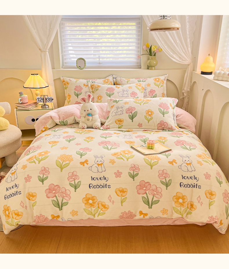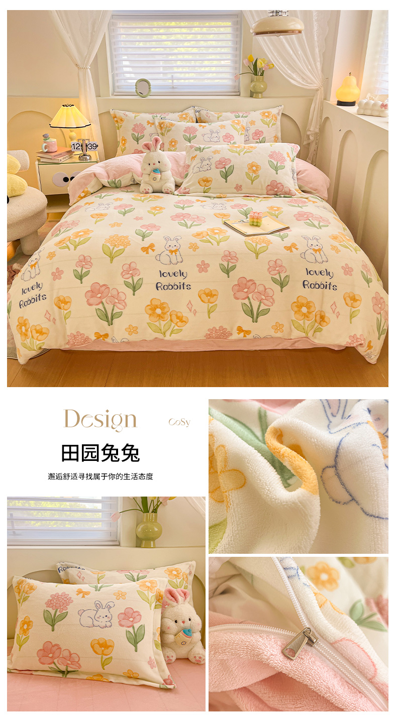 当前位置: 91家纺网 > 商品网购 > 床品套件 > 四件套 > 牛奶绒四件套 > 梦之岛 2024新款高克重小清新印花牛奶绒保暖四件套 田园兔兔