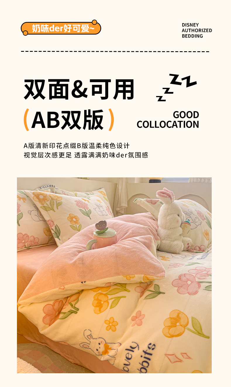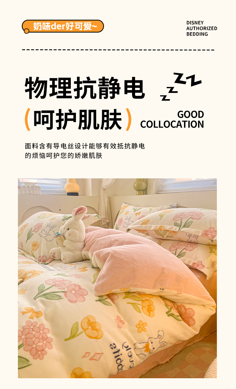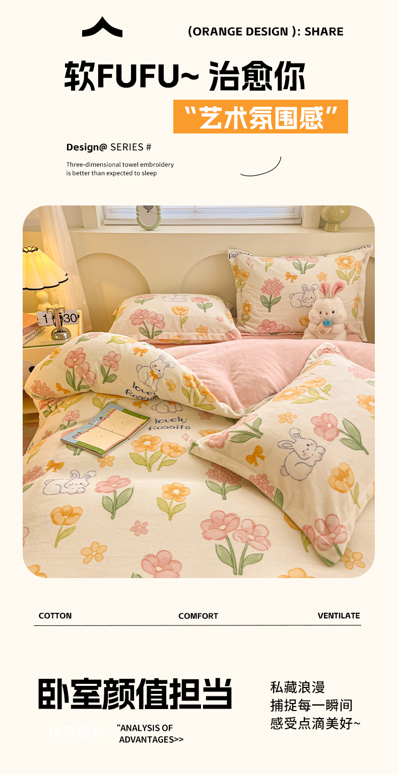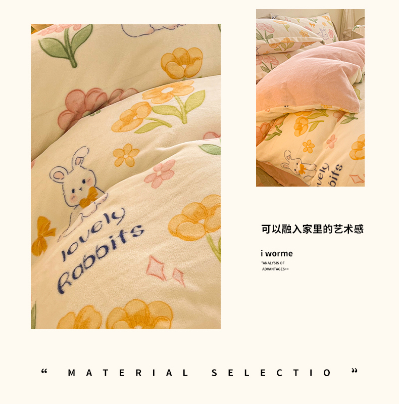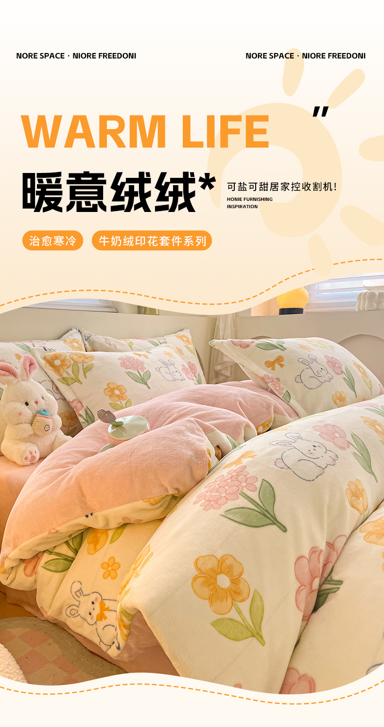 当前位置: 91家纺网 > 商品网购 > 床品套件 > 四件套 > 牛奶绒四件套 > 梦之岛 2024新款高克重小清新印花牛奶绒保暖四件套 田园兔兔