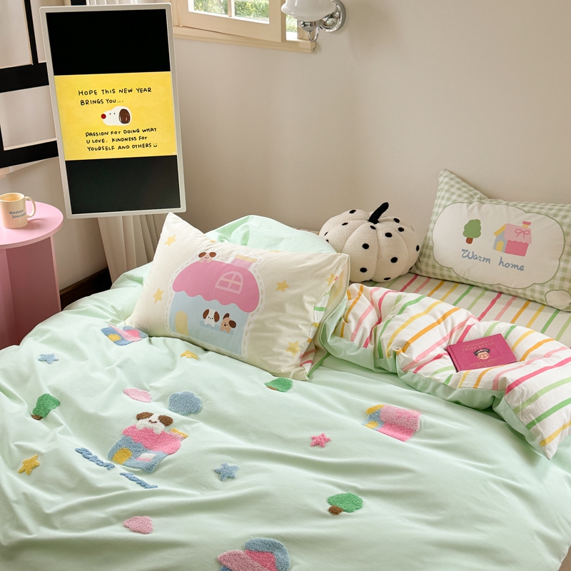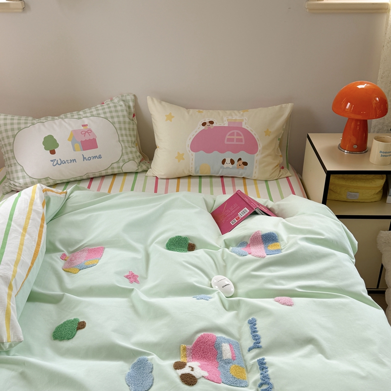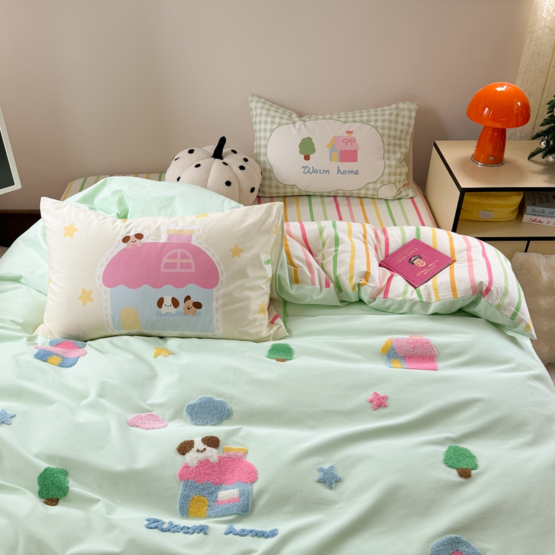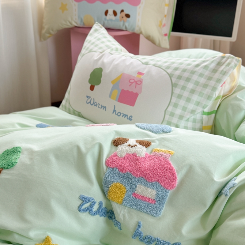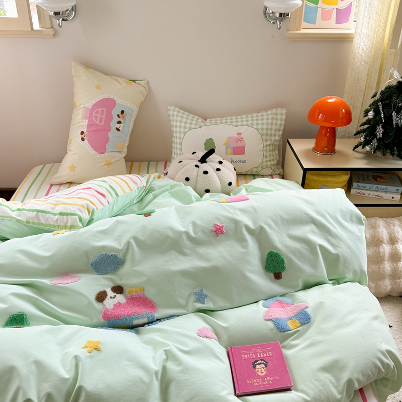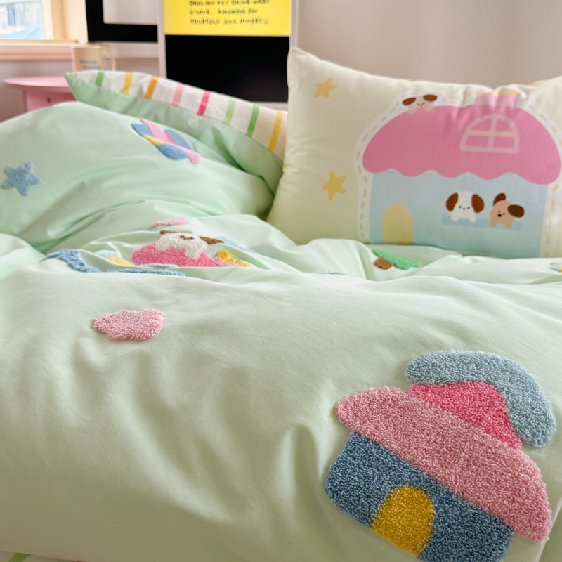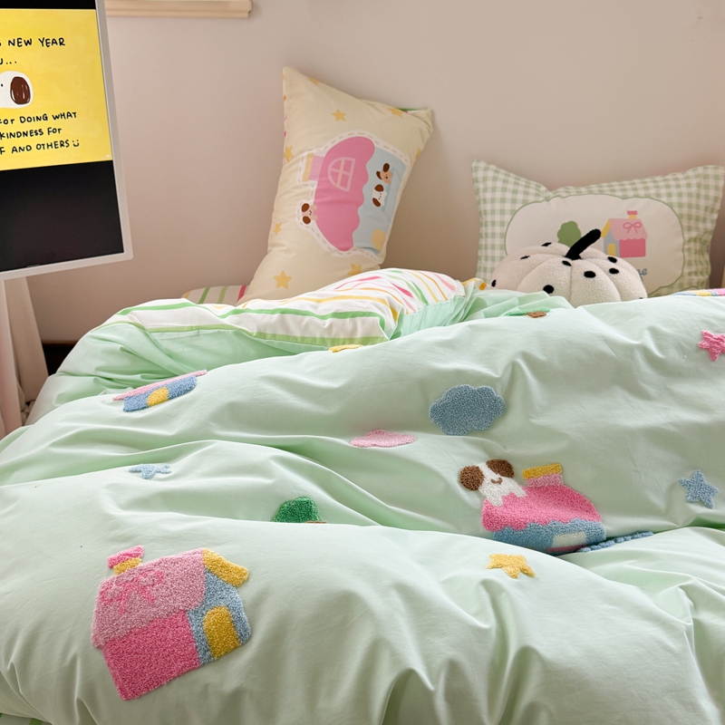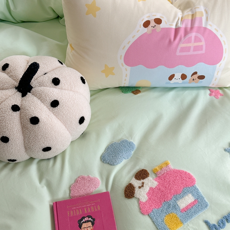 (总)柚子YOUTH 2025新款全棉纯棉工艺款13070贴布绣四件套,爱心小象,毛绒小狗,蘑菇女孩,星星法师