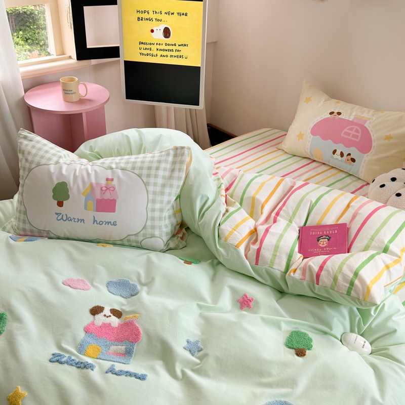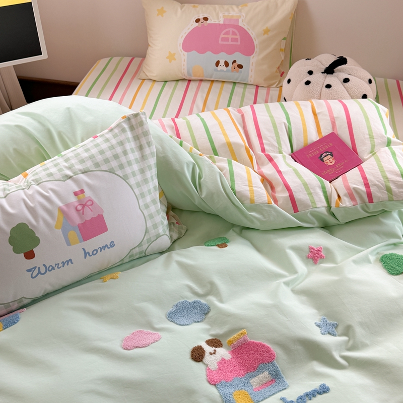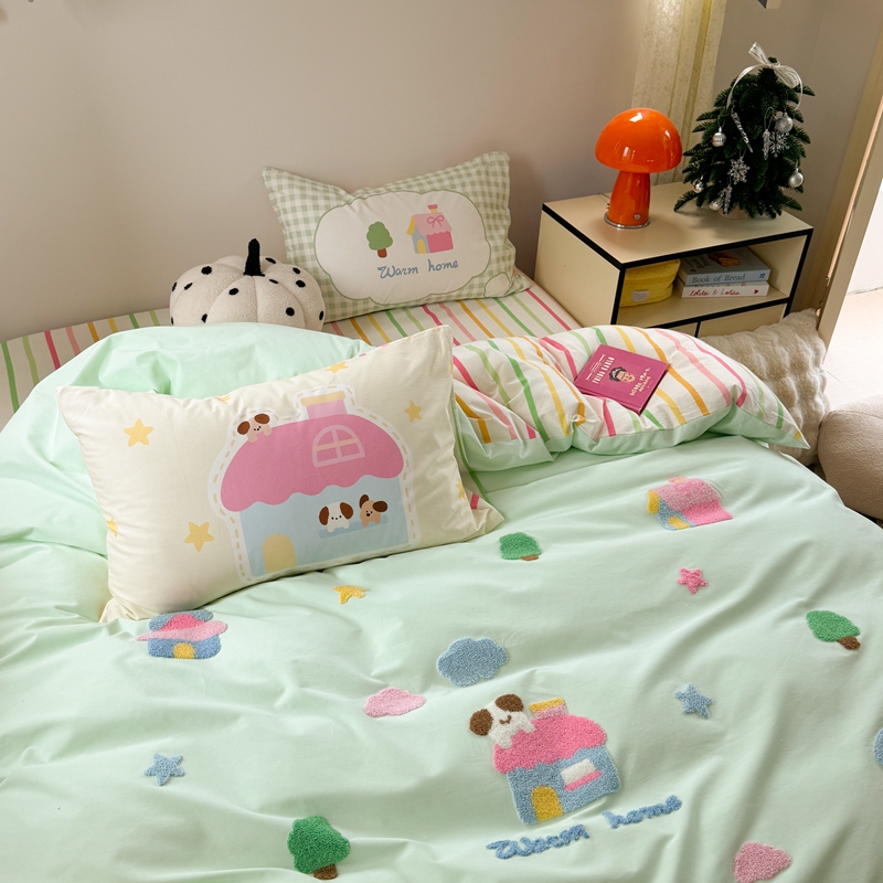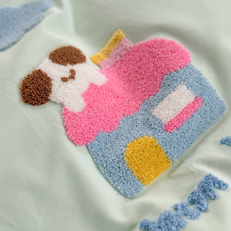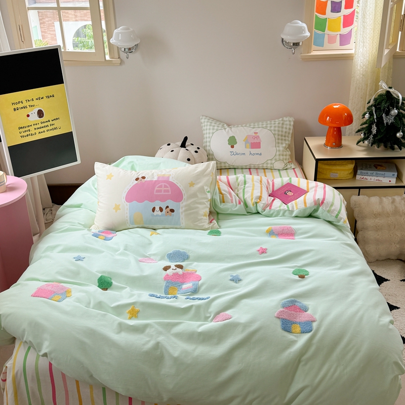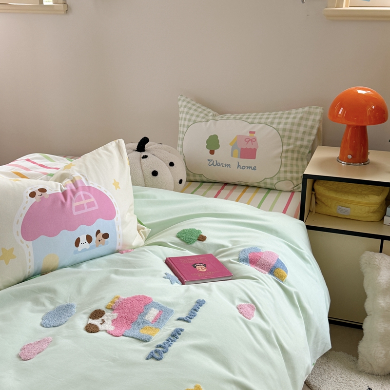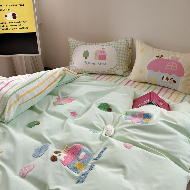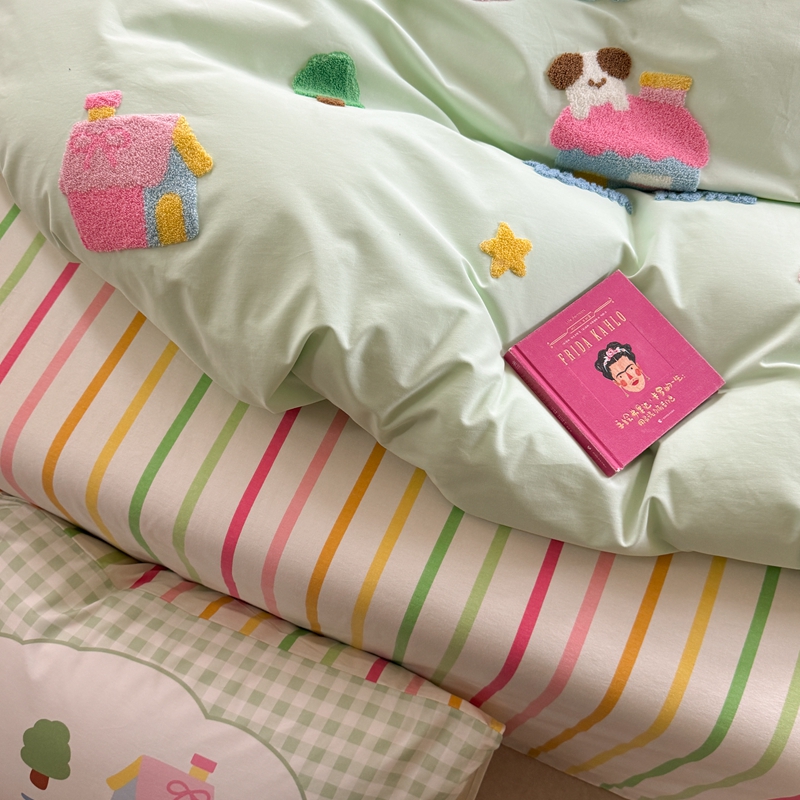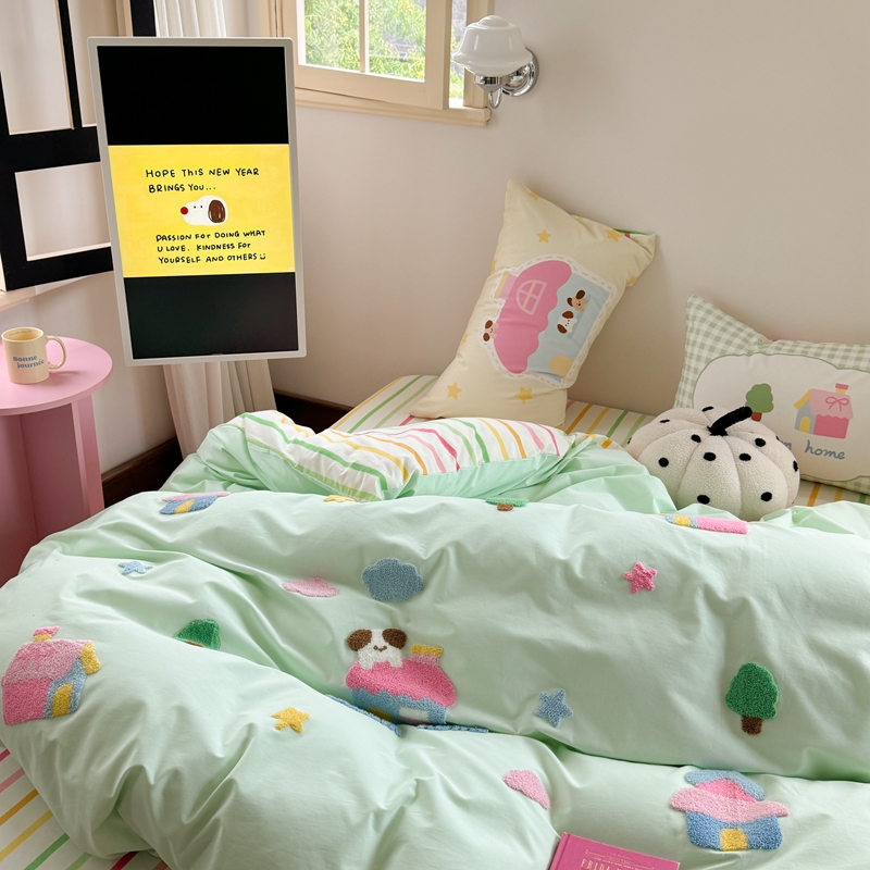 (总)柚子YOUTH 2025新款全棉纯棉工艺款13070贴布绣四件套,爱心小象,毛绒小狗,蘑菇女孩,星星法师