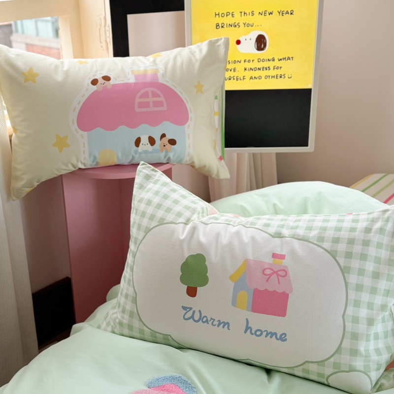 (总)柚子YOUTH 225新款全棉双层纱球球款四件套,薄荷绿条,波点霉霉,波点小丑,蓝心,芊芊结,碎花点点
