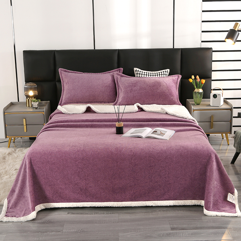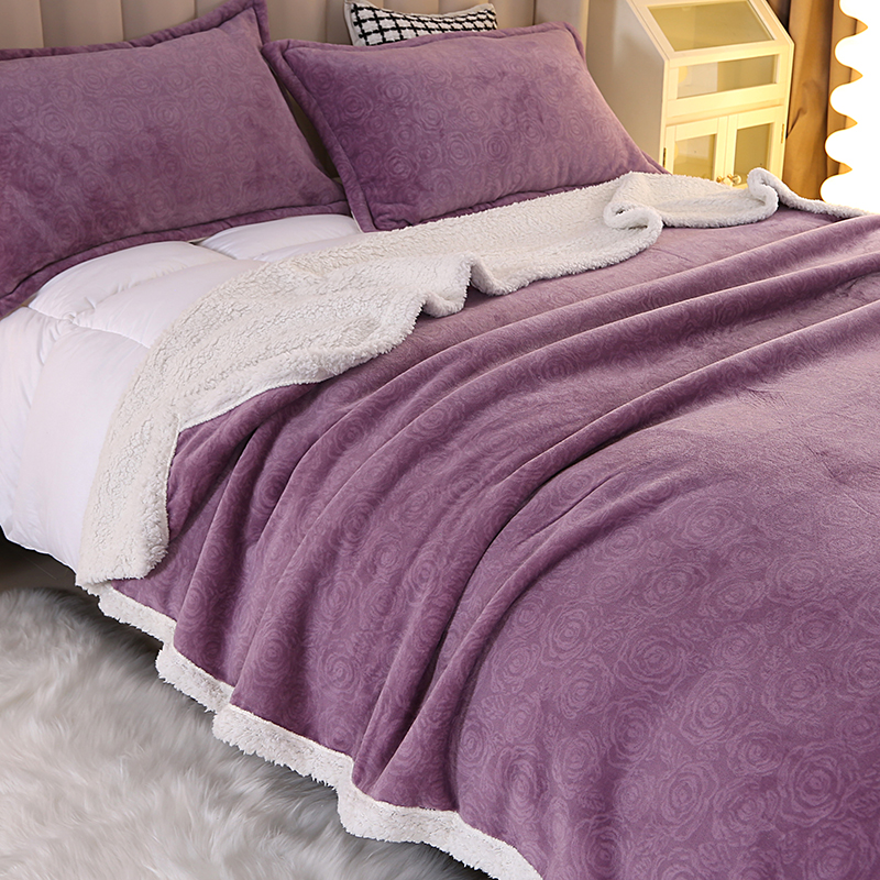 商品名称:悦织湾家纺 2025新款富贵绒羊羔绒双层复合毛毯 富贵绒莫奈紫