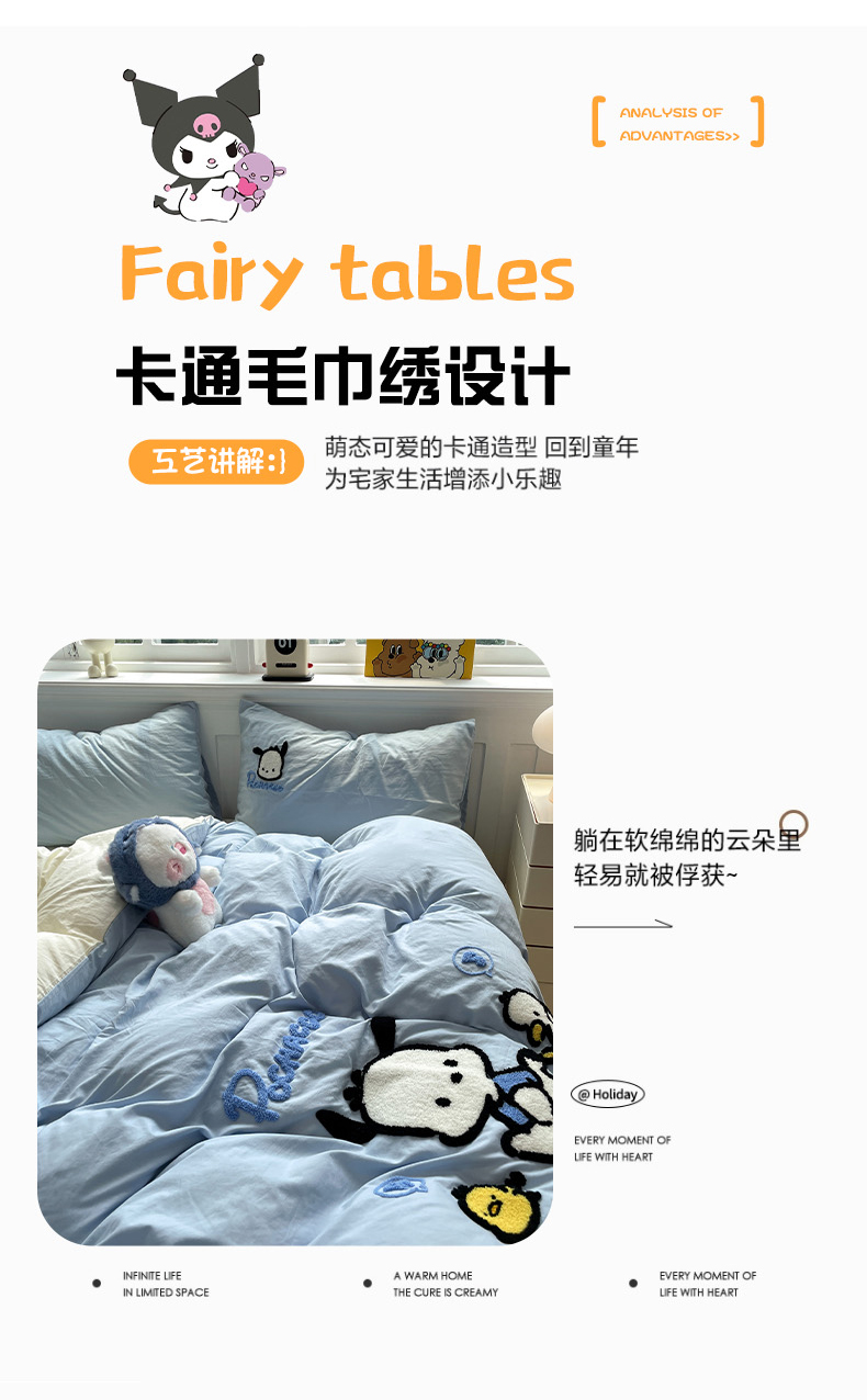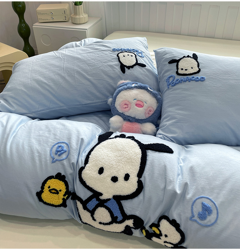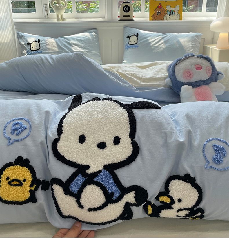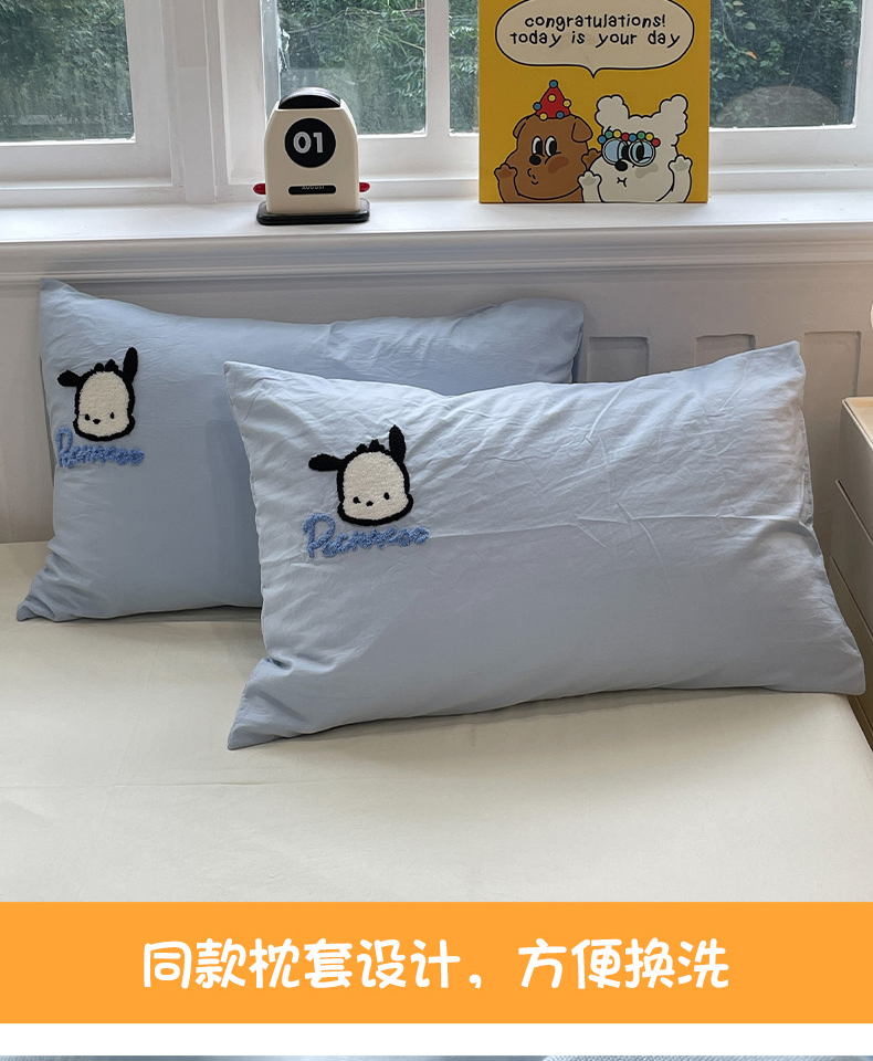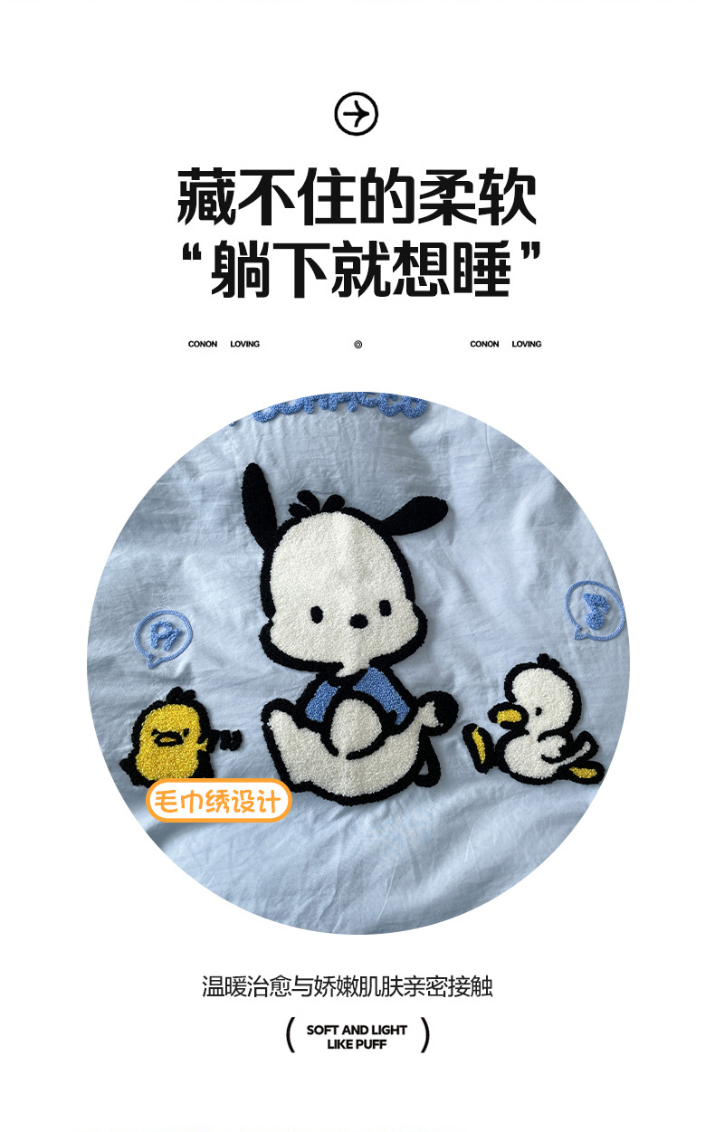 当前位置: 91家纺网 > 商品网购 > 床品套件 > 四件套 > 水洗棉四件套 > 奈颜 2024正版授权三丽鸥爆款超柔水洗棉纯色毛巾绣四件套学生三件套(含防伪吊牌)-摄影图 怕哈狗-浅蓝+乳白