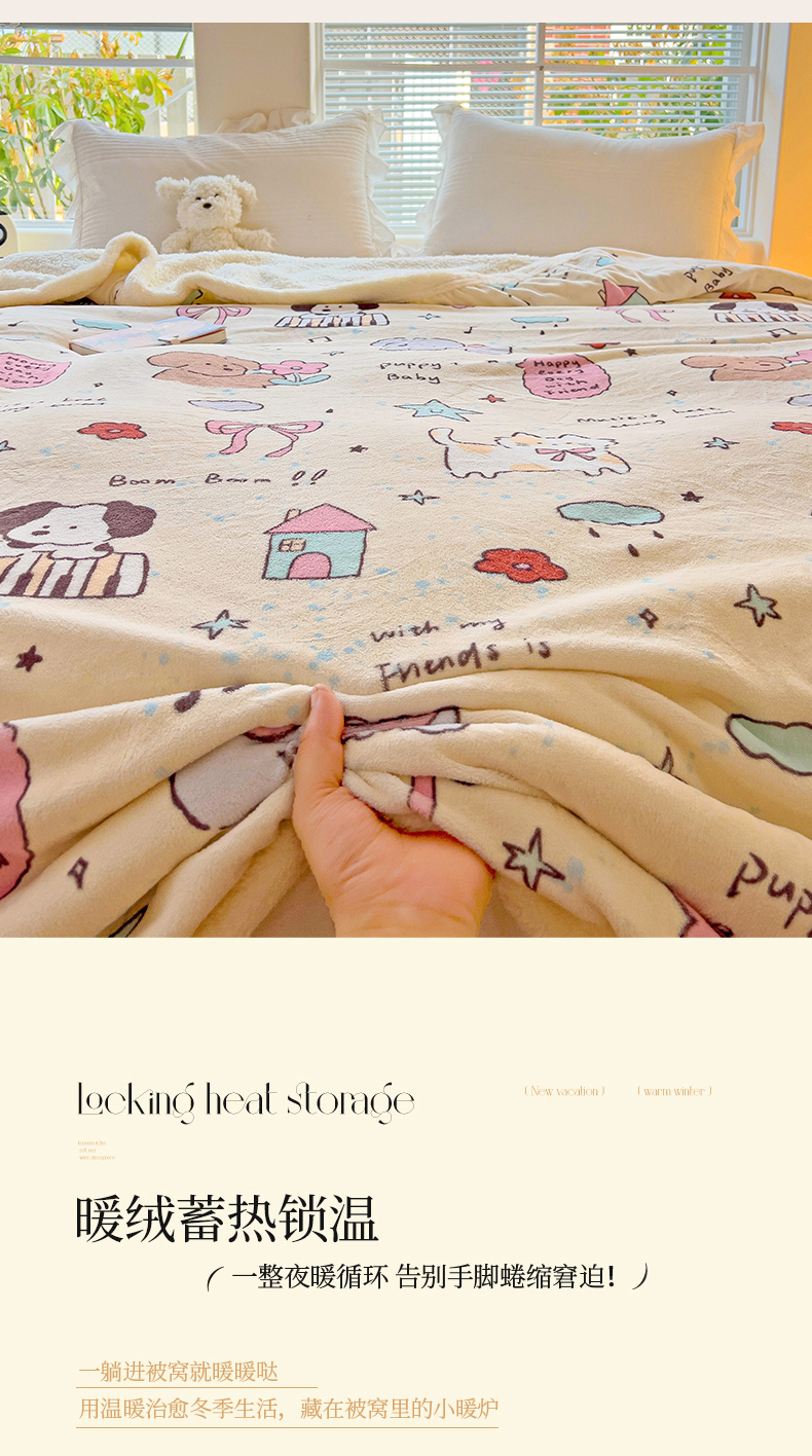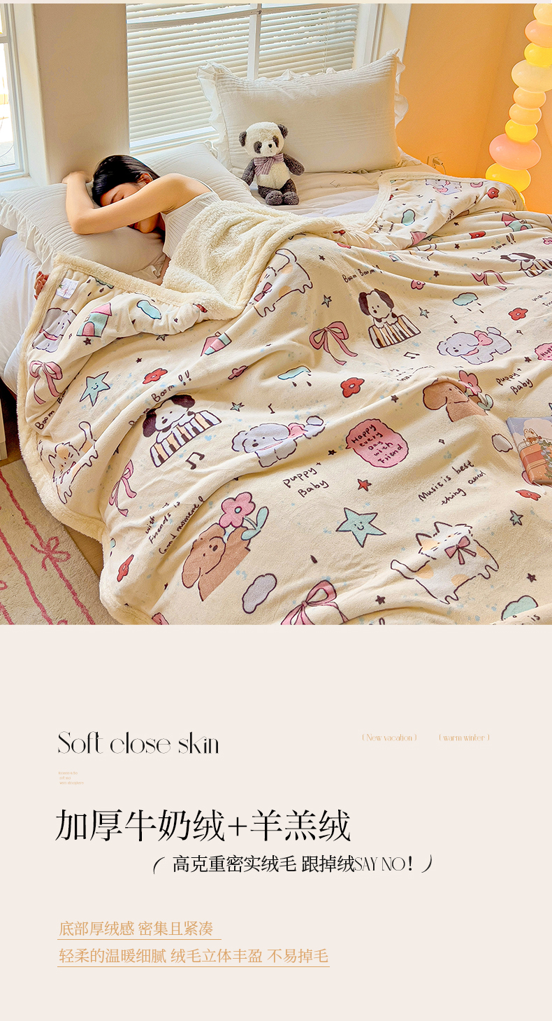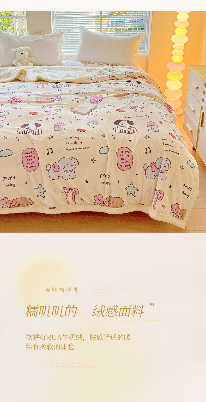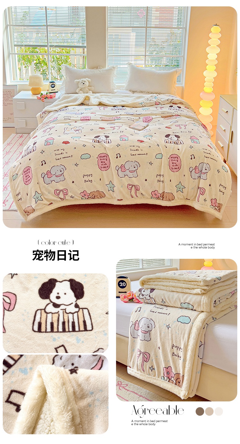鑫喜莱家纺 2024新款牛奶绒羊羔绒盖毯毛毯毯子午睡毯 宠物日记