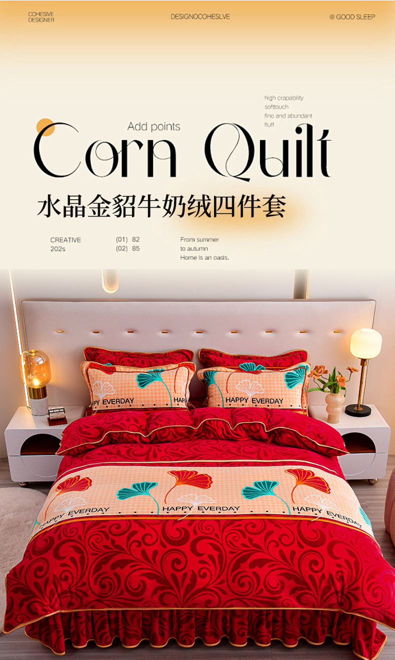 当前位置: 91家纺网 > 商品网购 > 床品套件 > 四件套 > 牛奶绒四件套 > 芯诗曼2025新款8.5斤直播热款高克重牛奶绒法莱绒水晶金貂法莱绒四件套 幸福美满