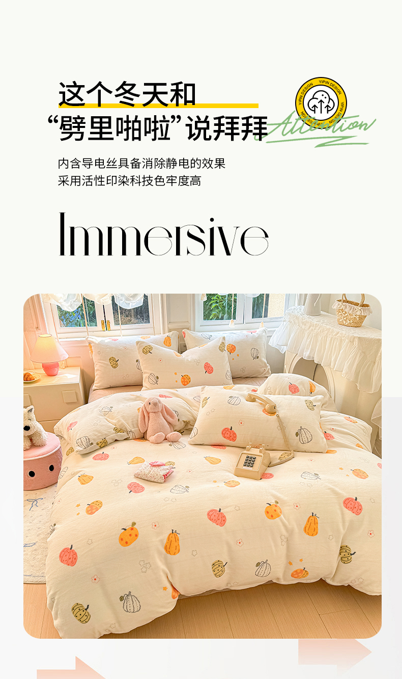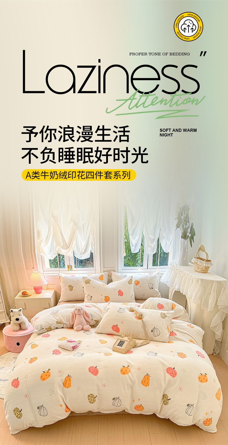 当前位置: 91家纺网 > 商品网购 > 床品套件 > 四件套 > 牛奶绒四件套 > 2025新款小清新双面牛奶绒四件套 南瓜