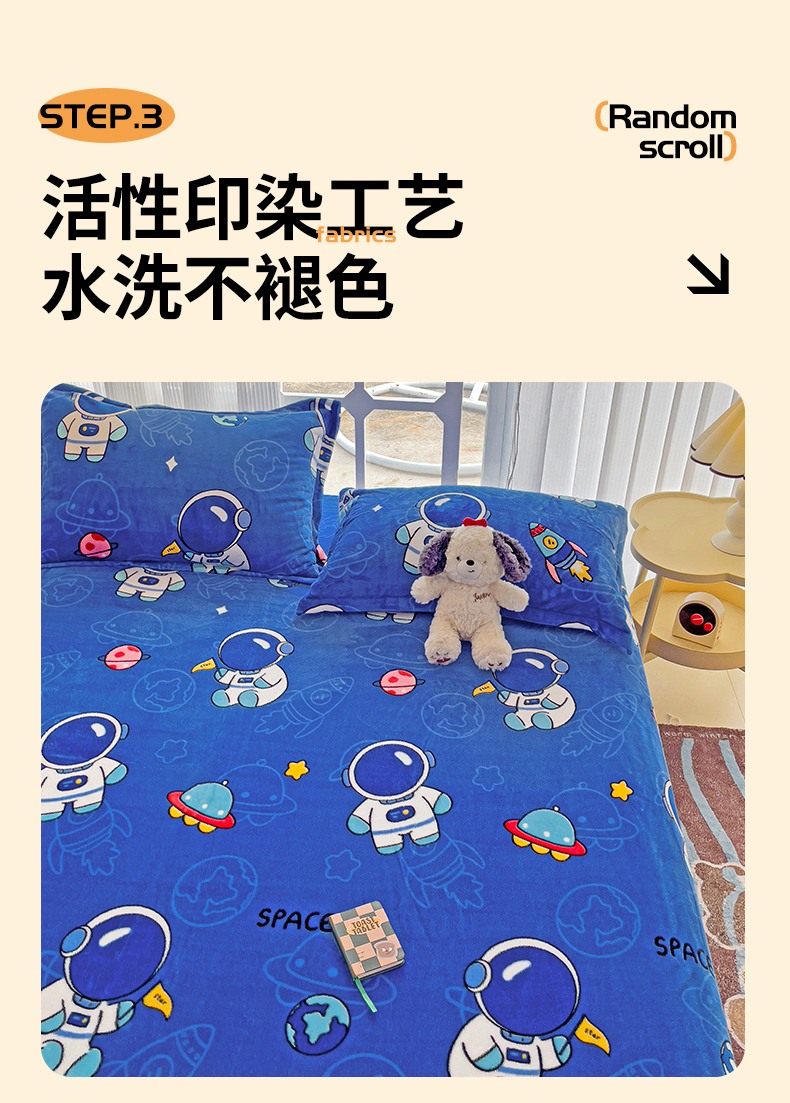 • 91家纺网 家纺一手货源 找家纺 名兮家居 2024新款时尚卡通风高克重牛奶绒床单-盖毯 太空人