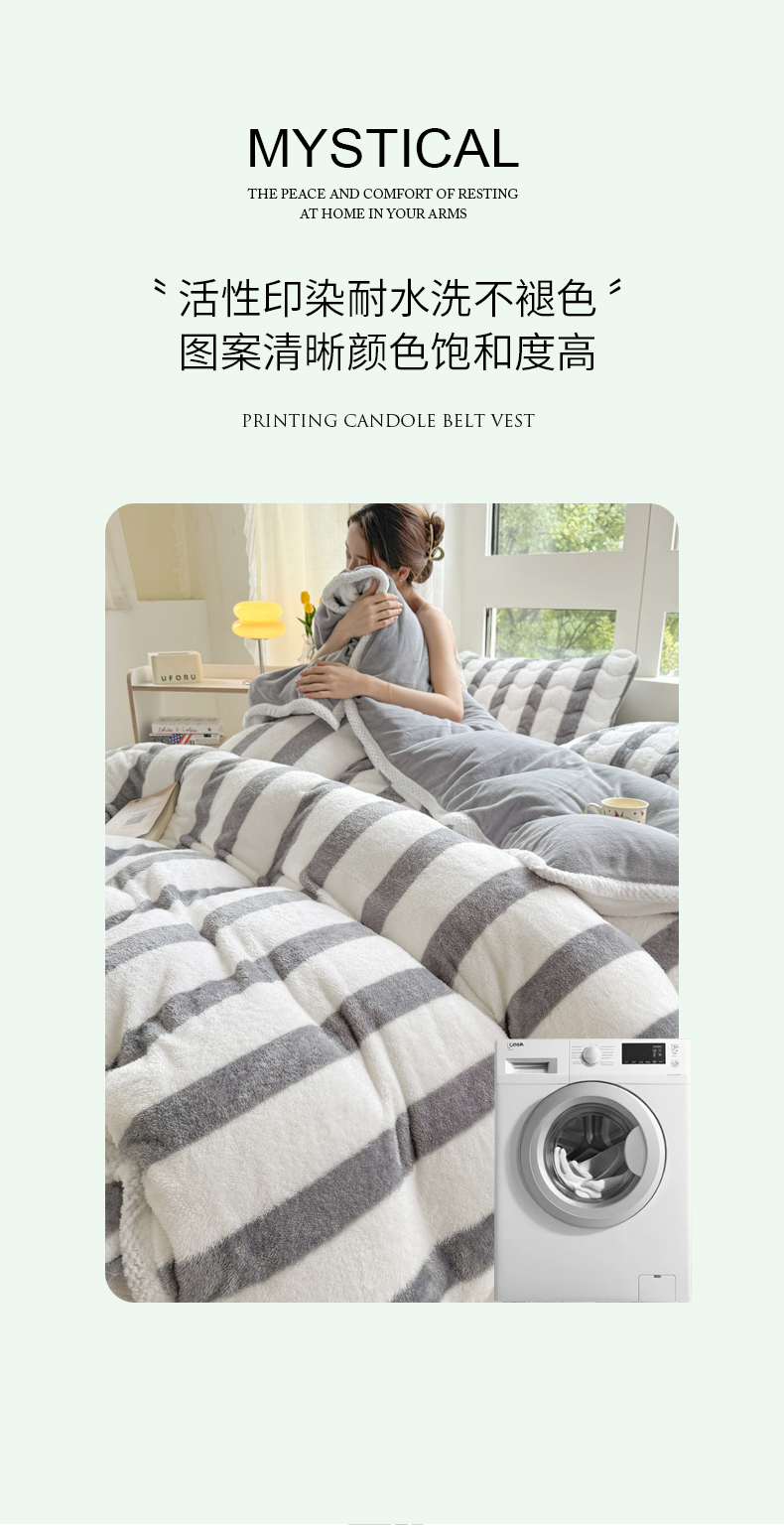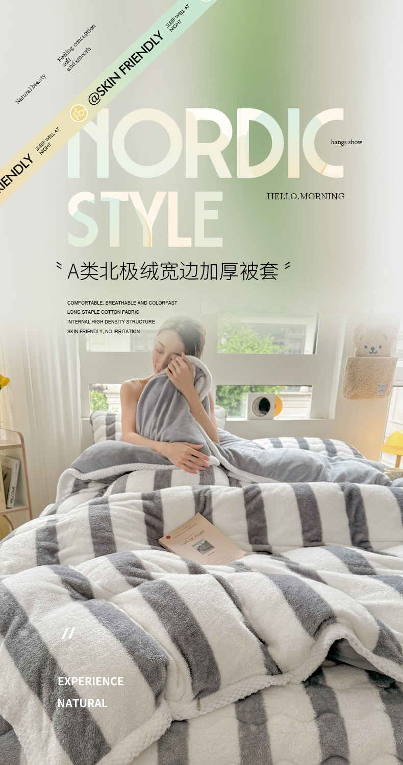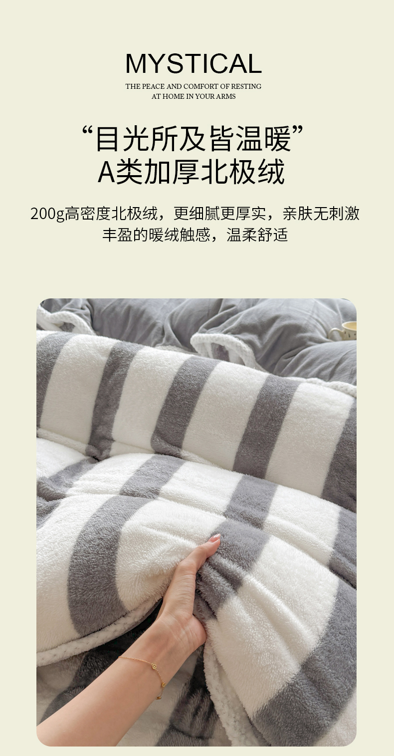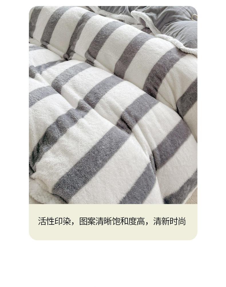 商品名称:2024新款A类北极绒格子-条纹系列宽包边加厚被套(自然光图) 条纹-灰色