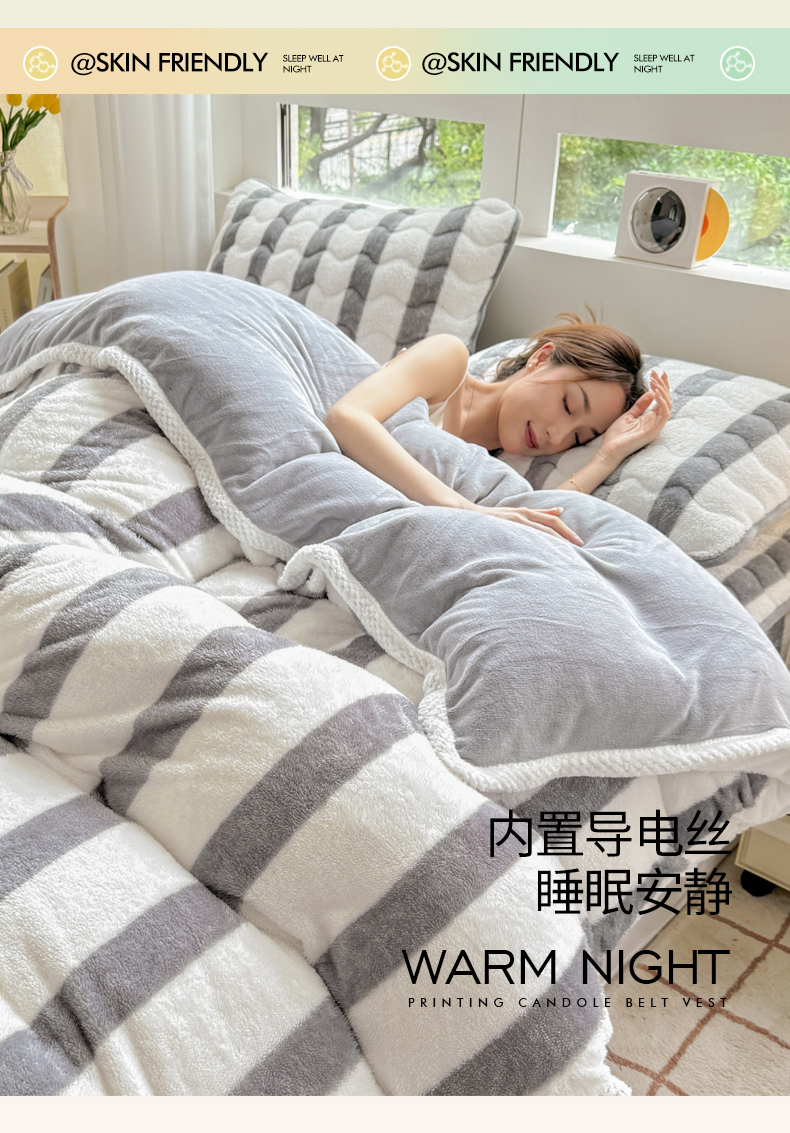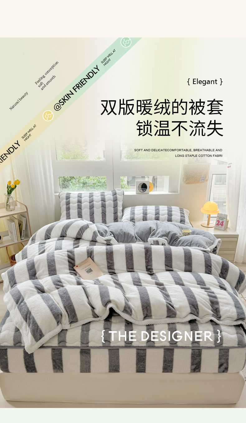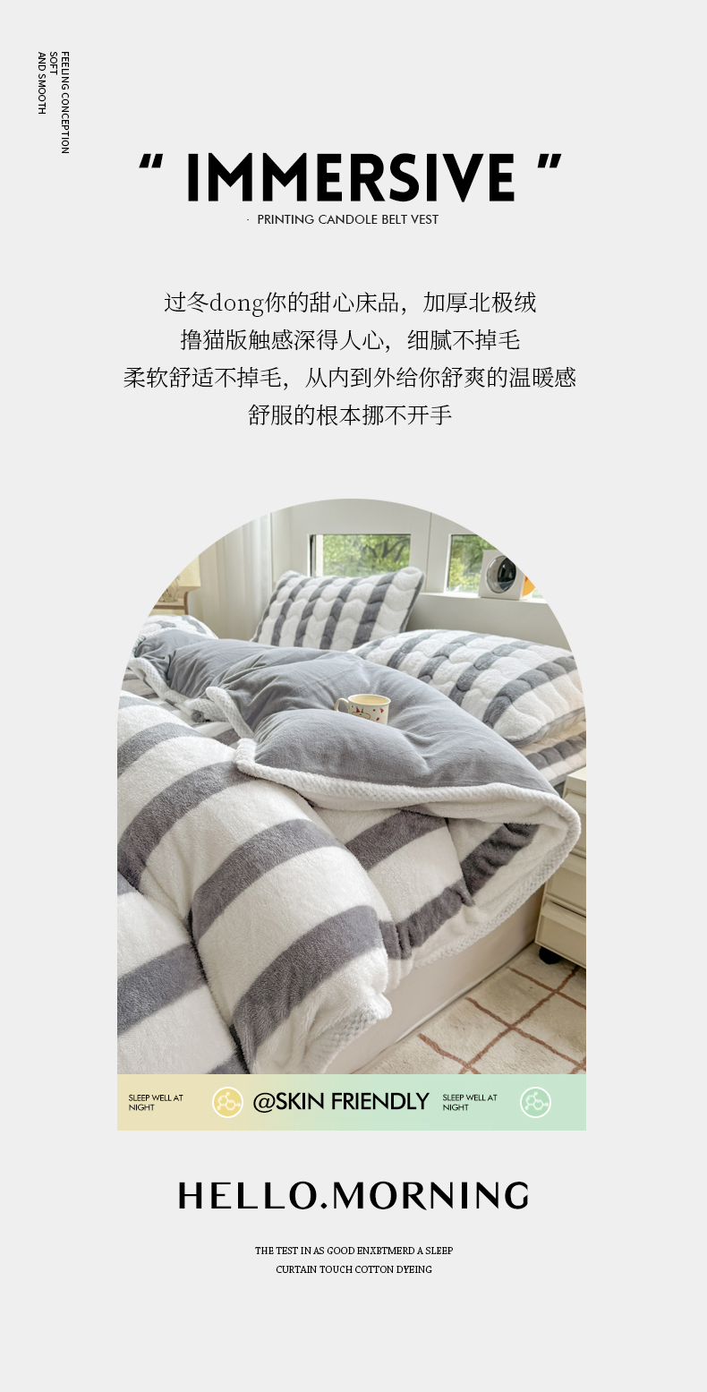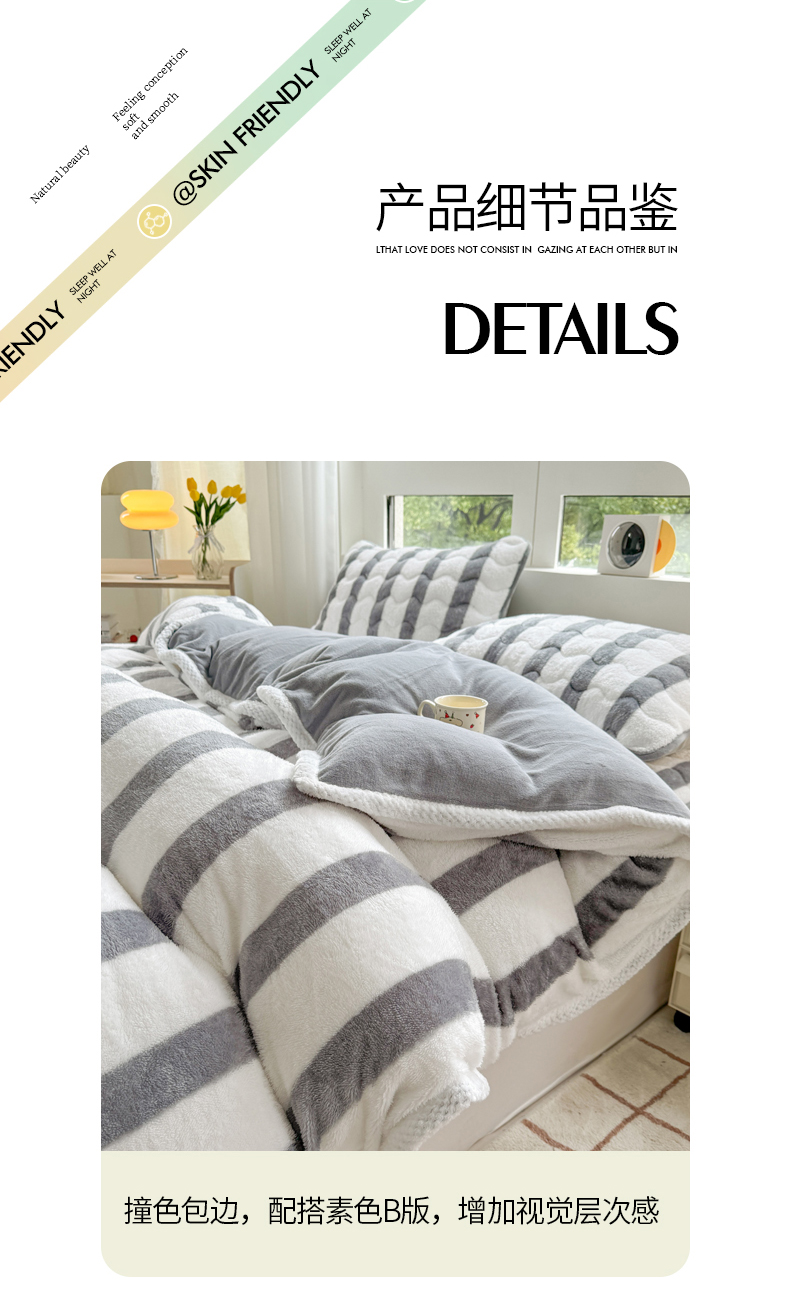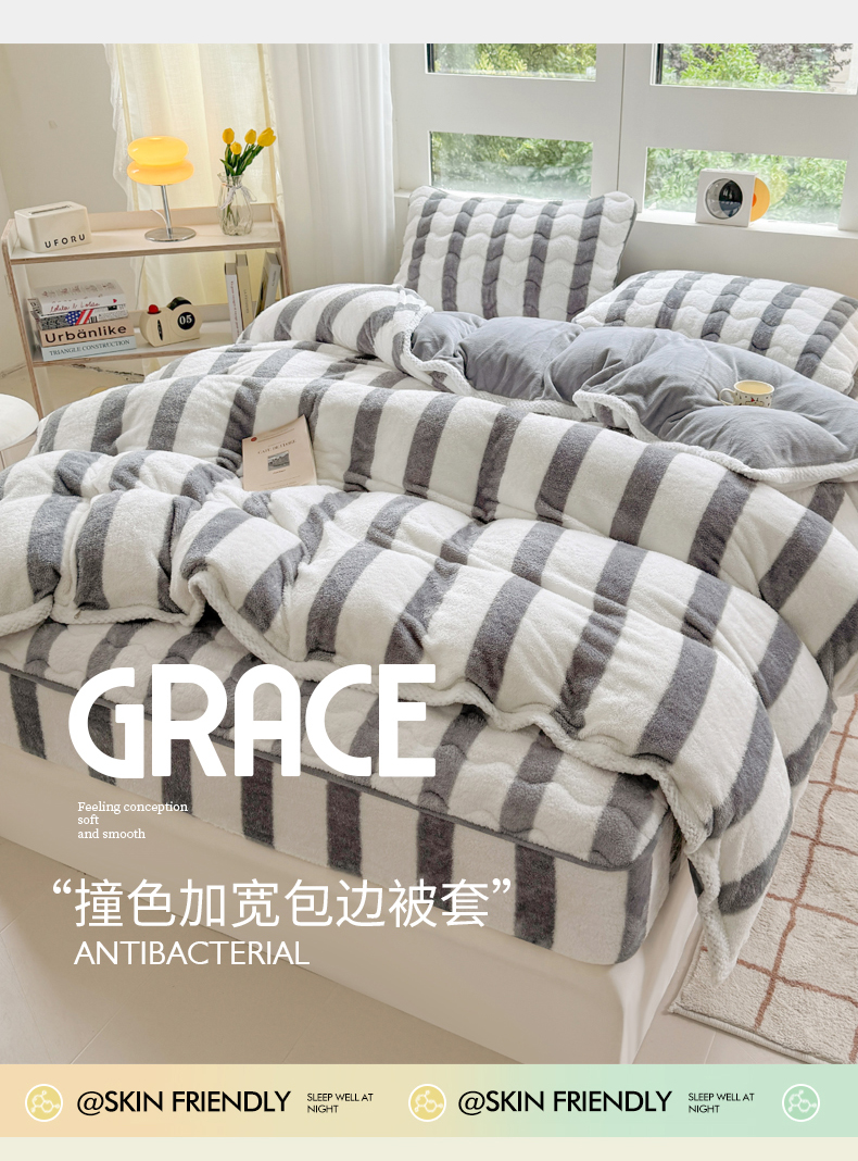 商品名称:2024新款A类北极绒格子-条纹系列宽包边加厚被套(自然光图) 条纹-灰色