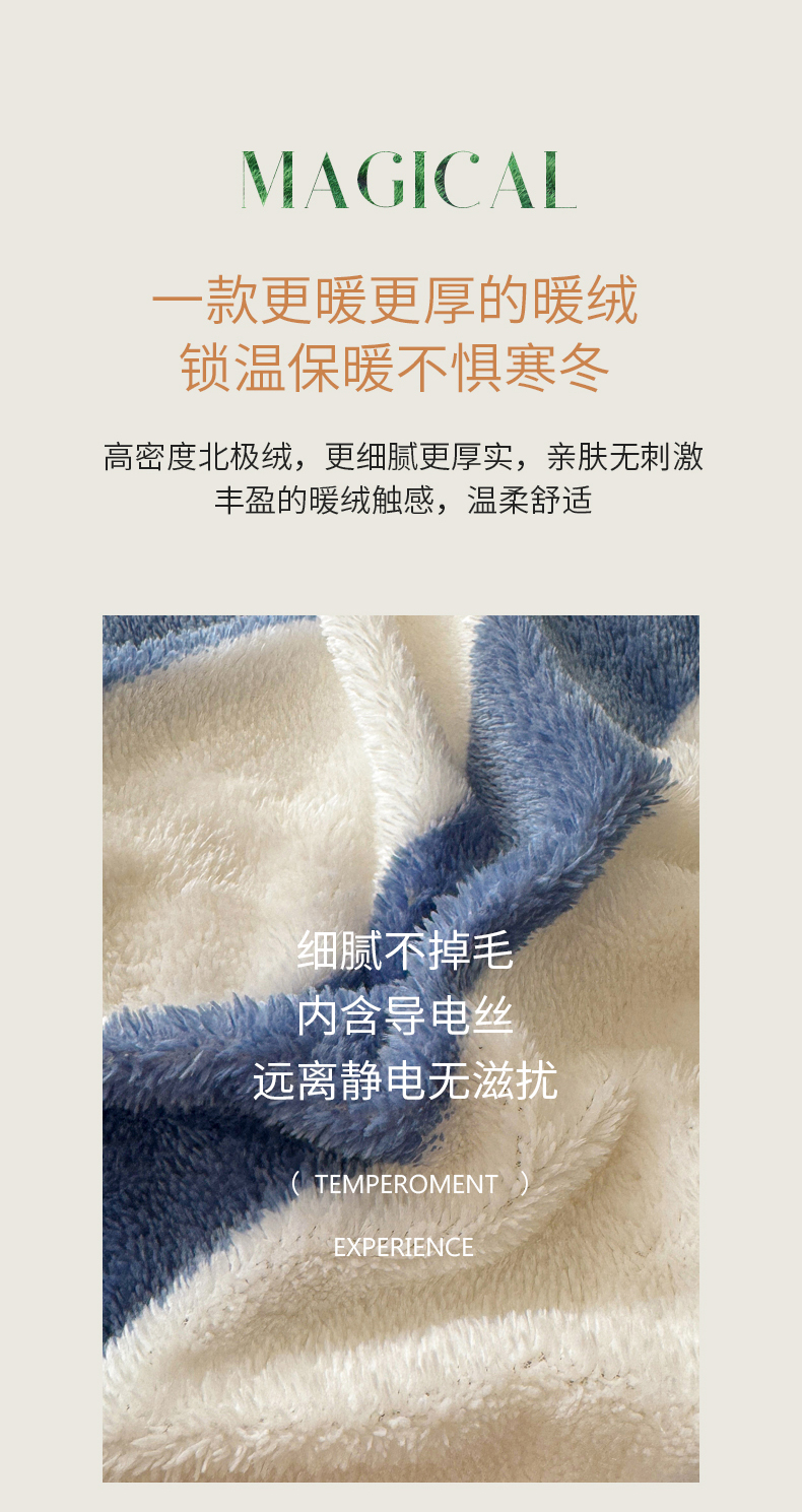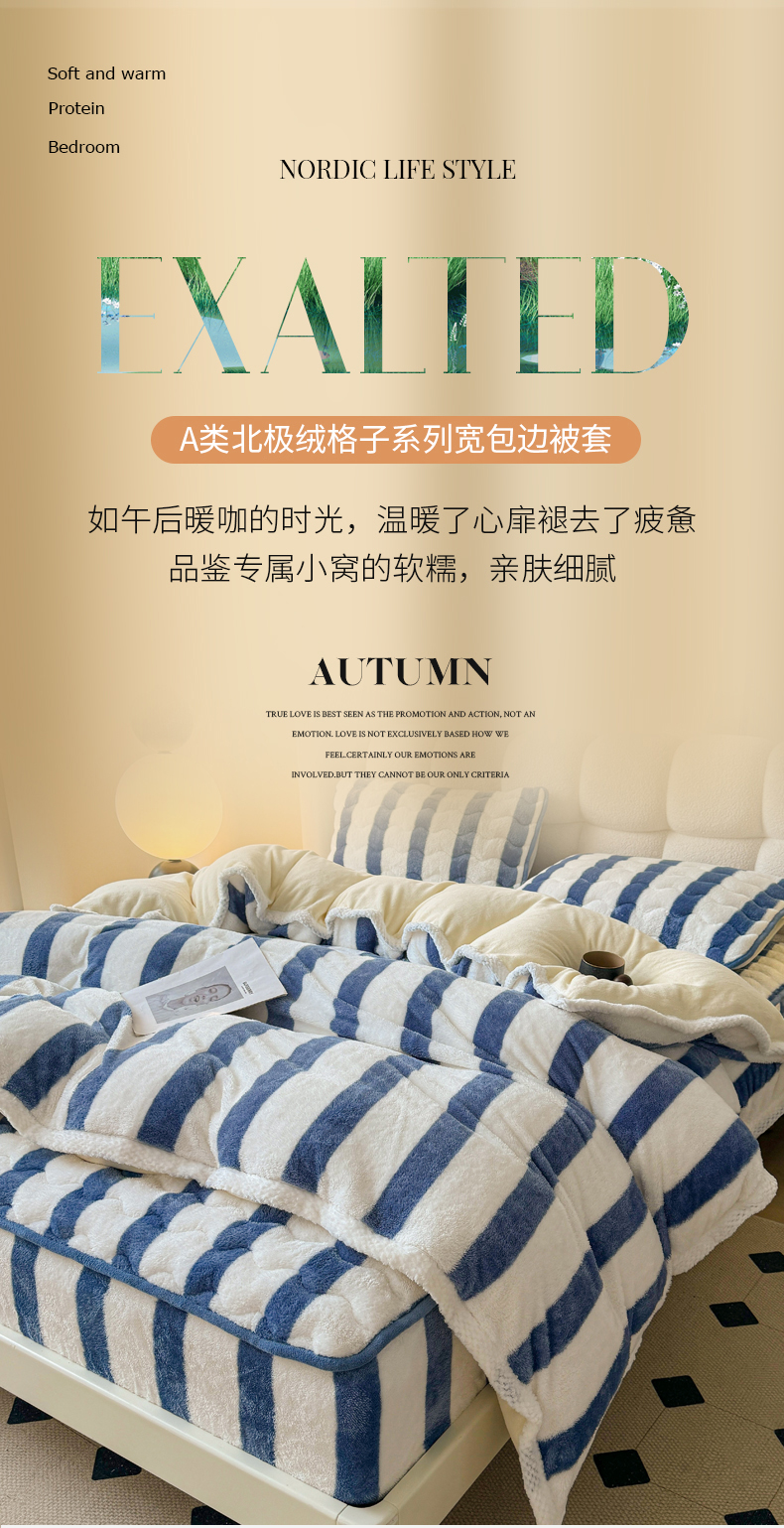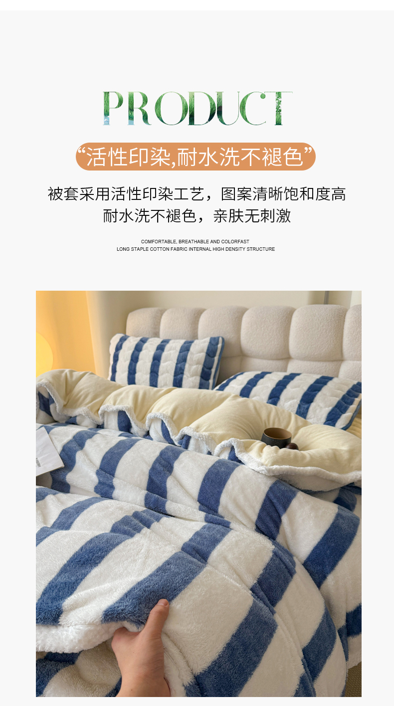 商品名称:2024新款A类北极绒格子-条纹系列宽包边加厚被套(暖光图) 条纹-高贵蓝