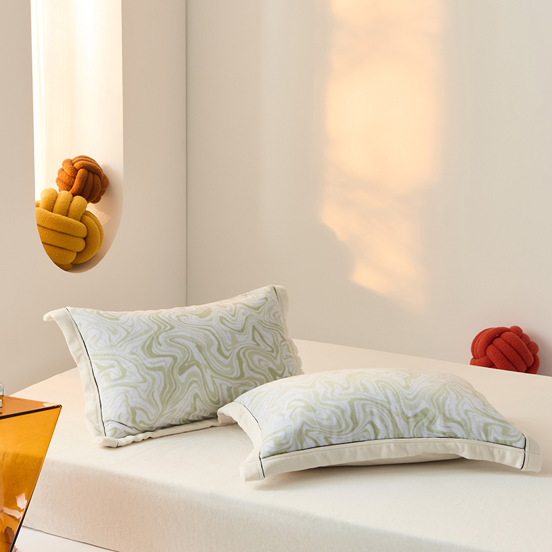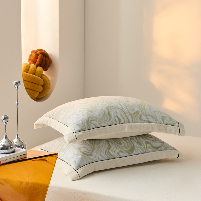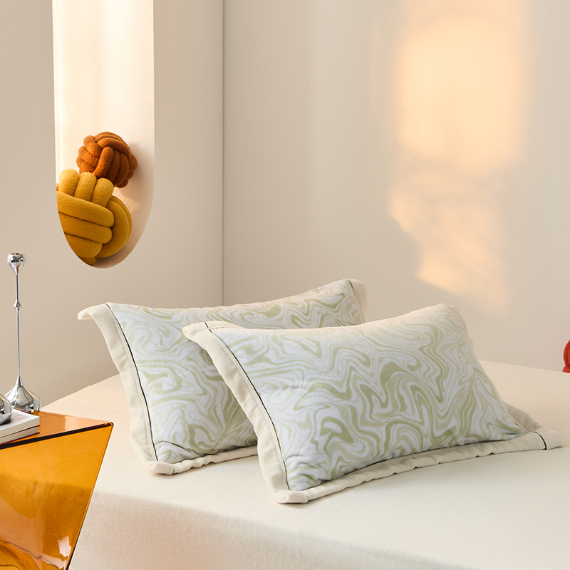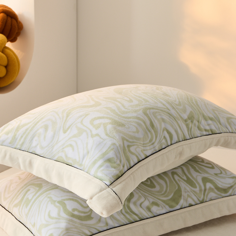 LADYCOCO可可家居 单枕套-2024新款牛奶绒数码印花单品系列 雾语浅绿+米白