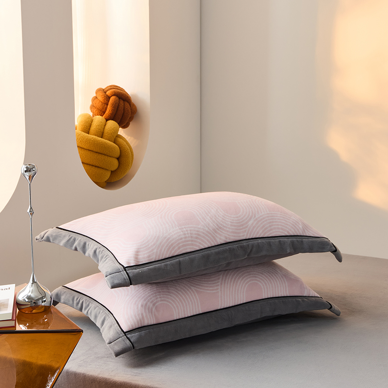 LADYCOCO可可家居 单枕套-2024新款牛奶绒数码印花单品系列 知音粉色+灰色