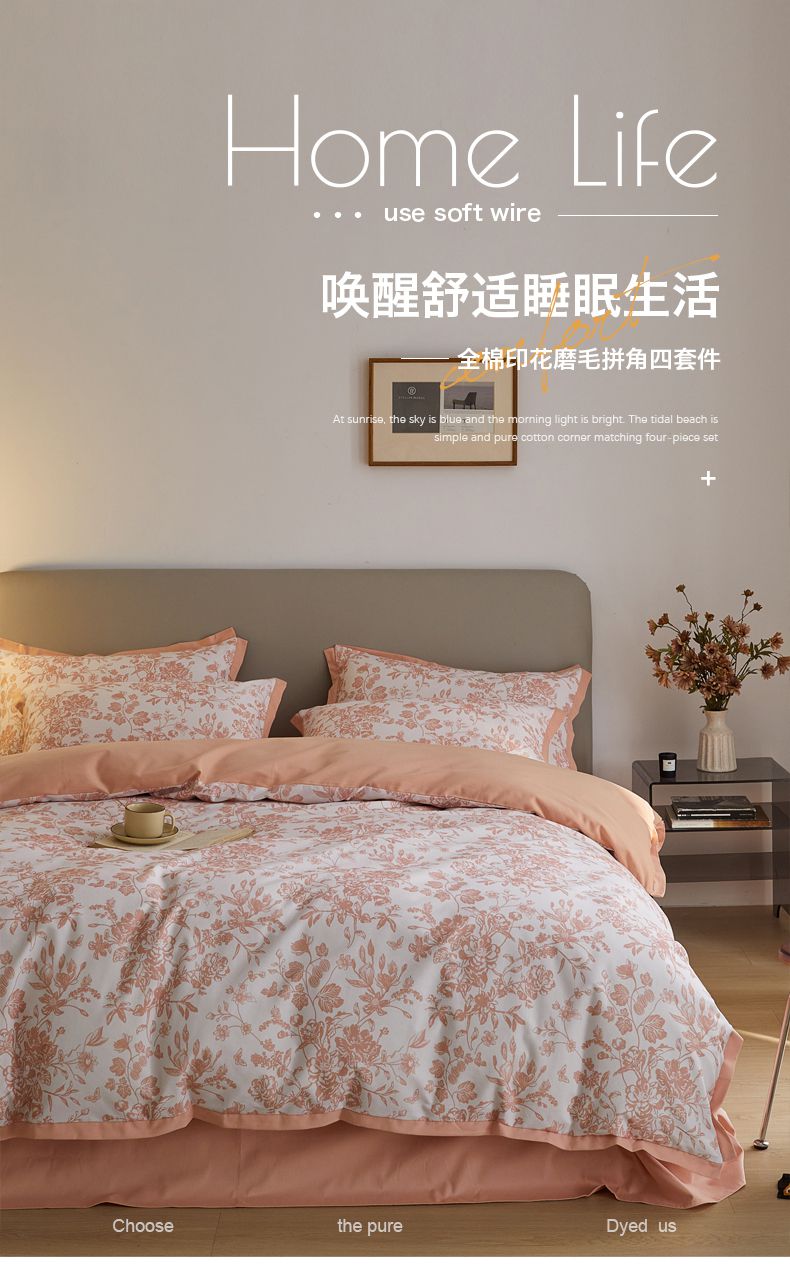 千朵森 2024新款高定新疆长绒棉全棉印花拼角磨毛四件套 风格二 芳华
