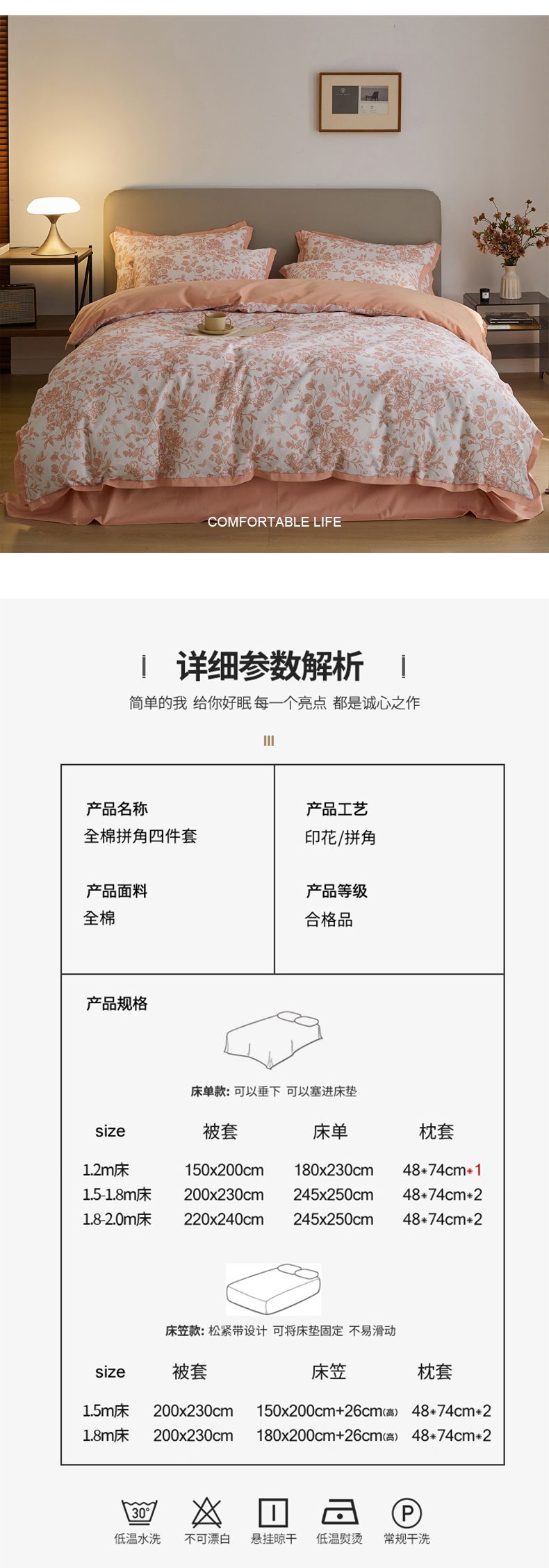 商品名称:千朵森 2024新款高定新疆长绒棉全棉印花拼角磨毛四件套 风格二 芳华