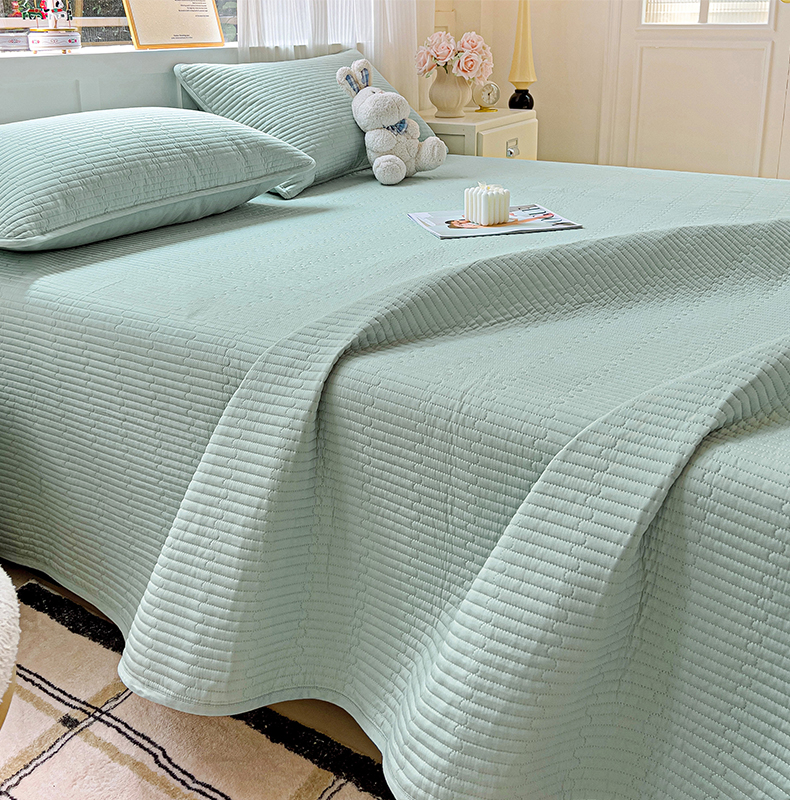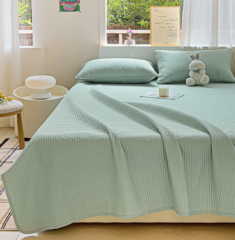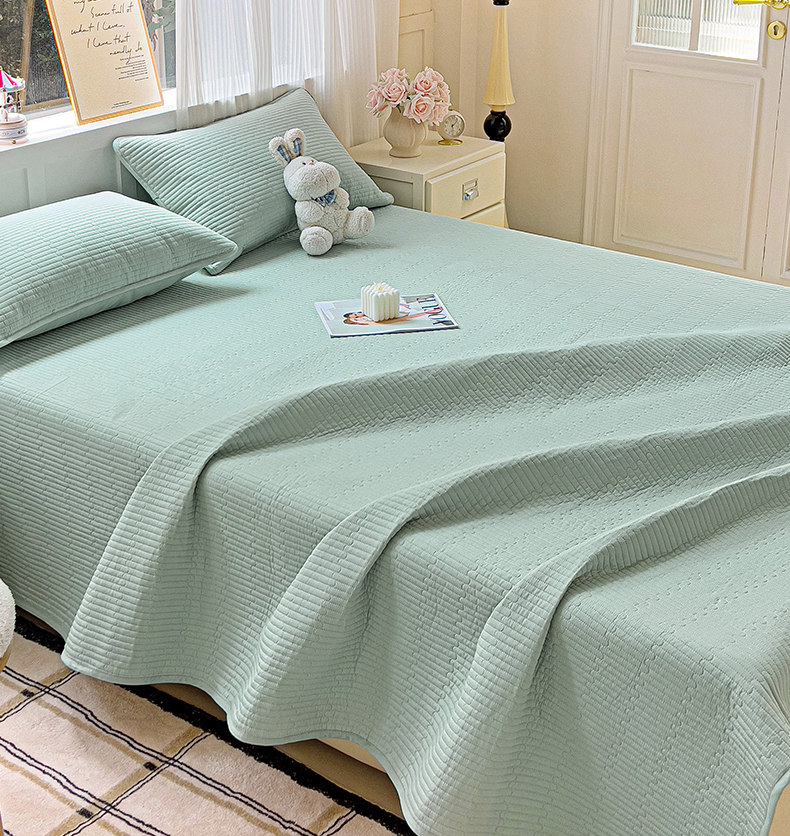 漫时光 2025新款40支全棉纯色夹棉床盖款 露草