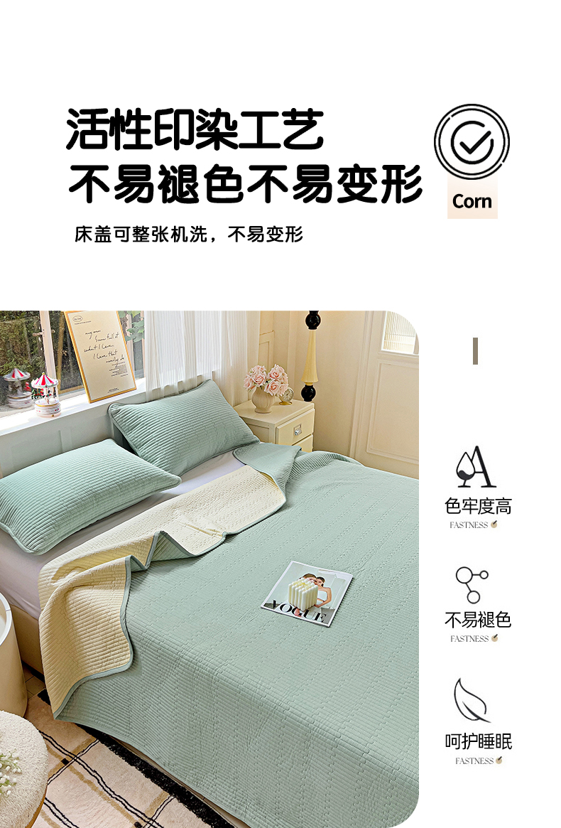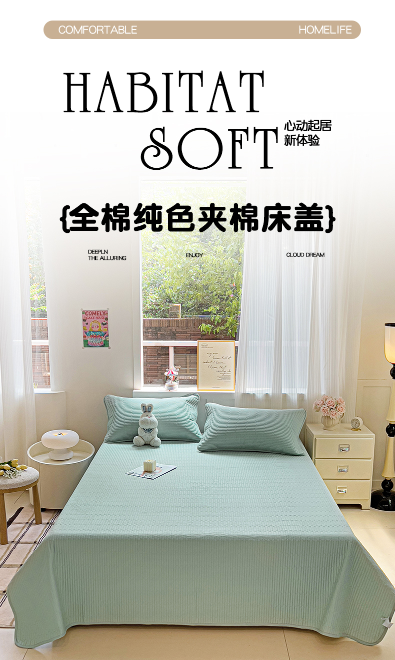 • 91家纺网 家纺一手货源 找家纺 漫时光 2025新款40支全棉纯色夹棉床盖款 露草