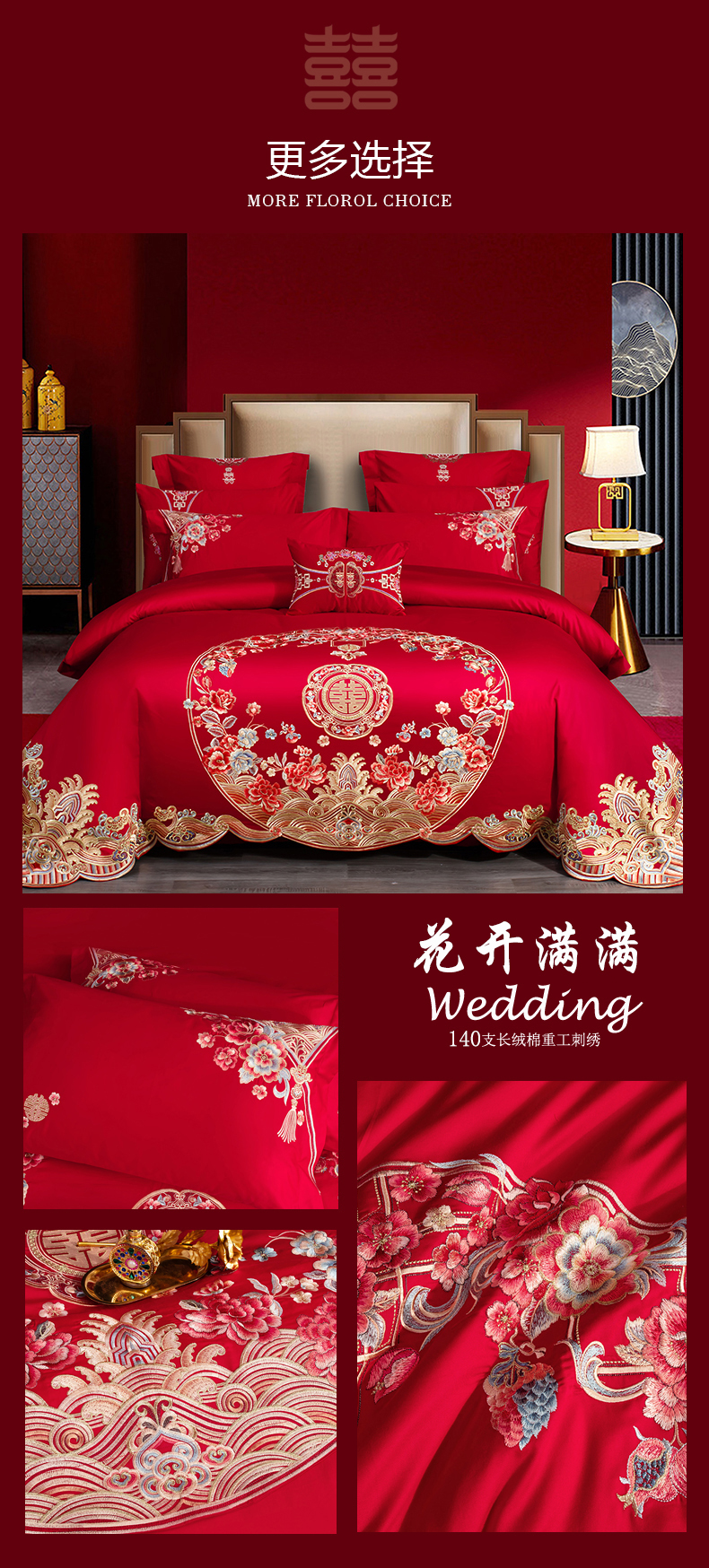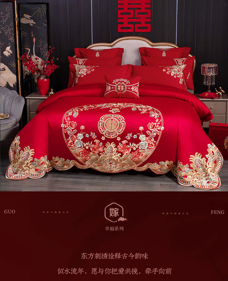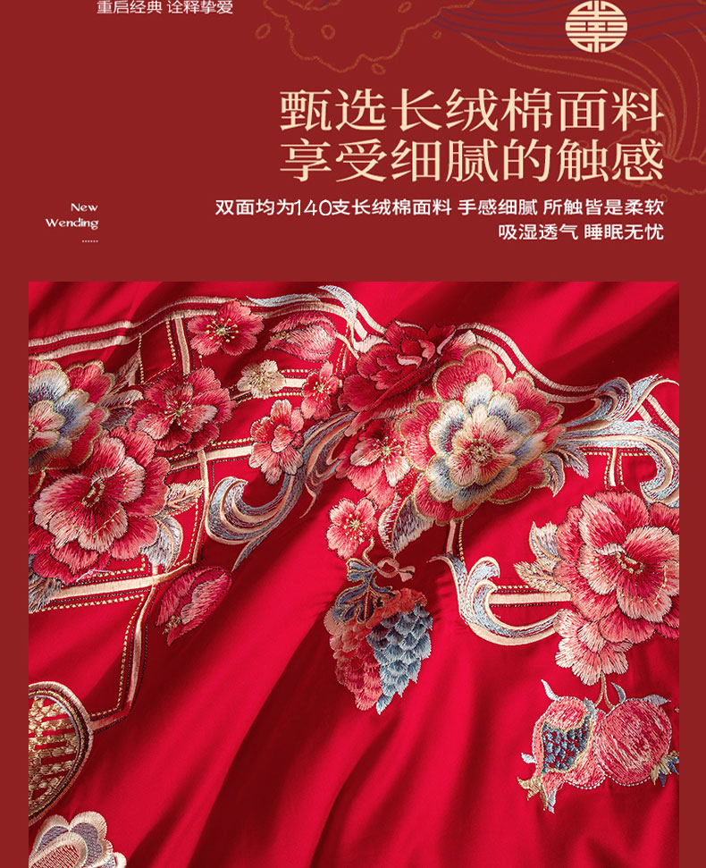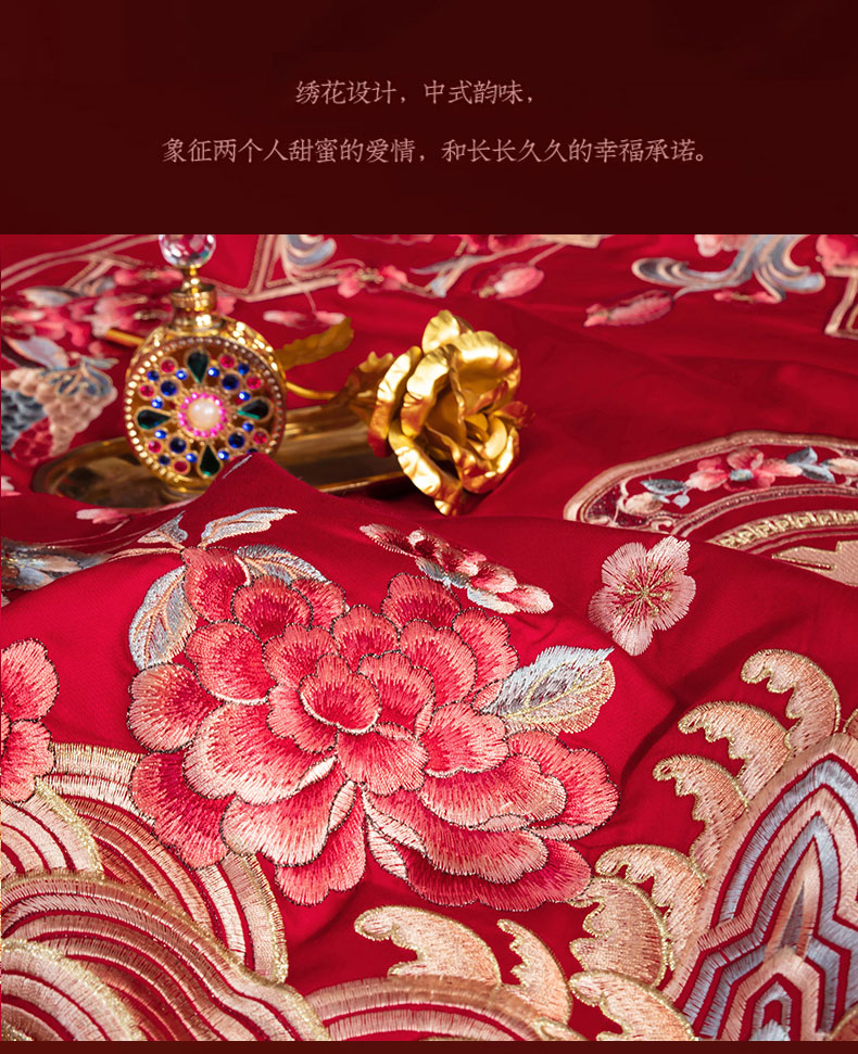 当前位置: 91家纺网 > 商品网购 > 床品套件 > 四件套 > 婚庆四件套 > 蒂爵 全棉纯棉高端刺绣长绒棉提花婚庆多件套 花开满满