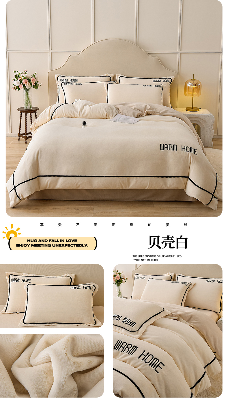 商品名称:同田家纺 2024新款230克蓄暖高克重牛奶绒四件套 贝壳白