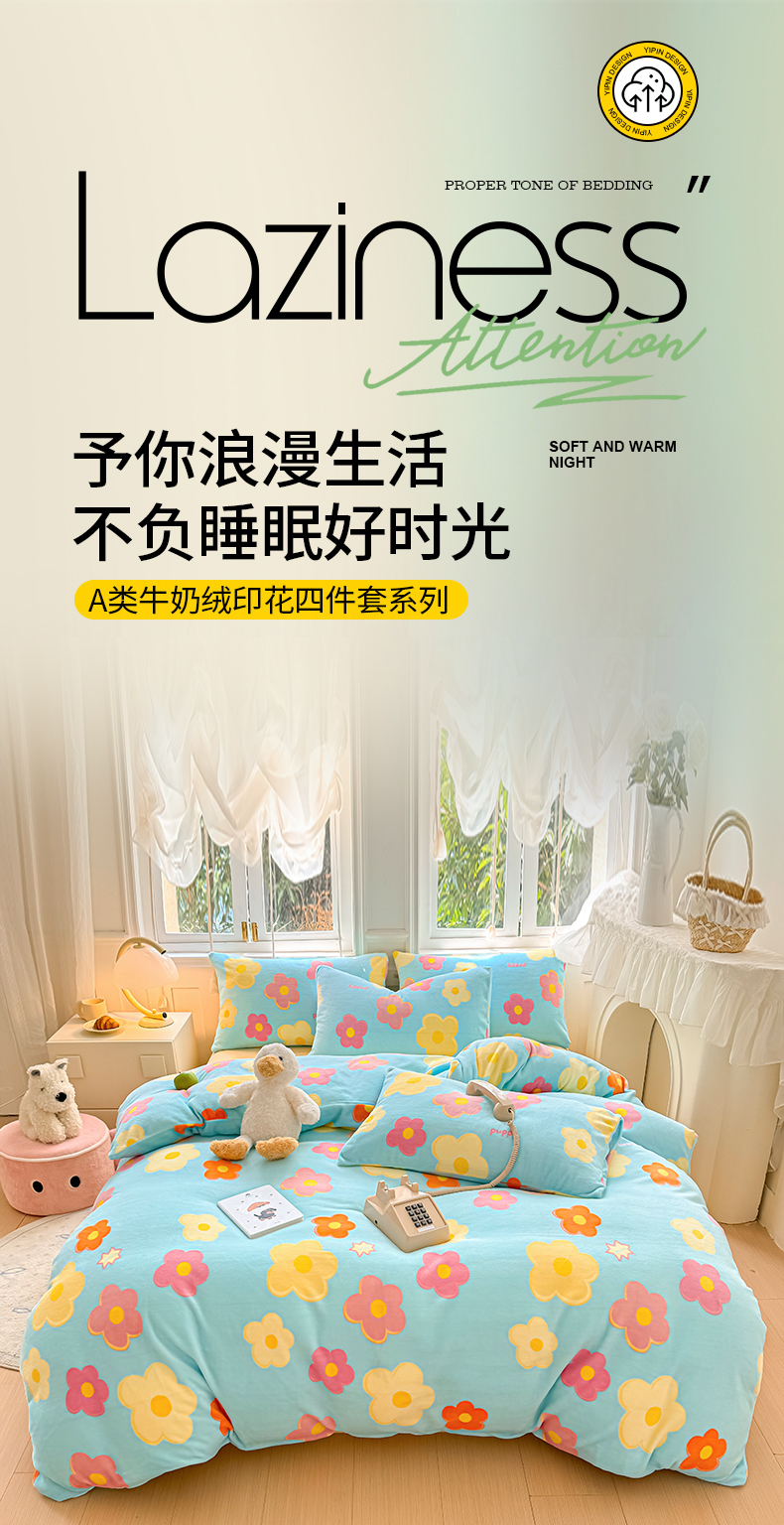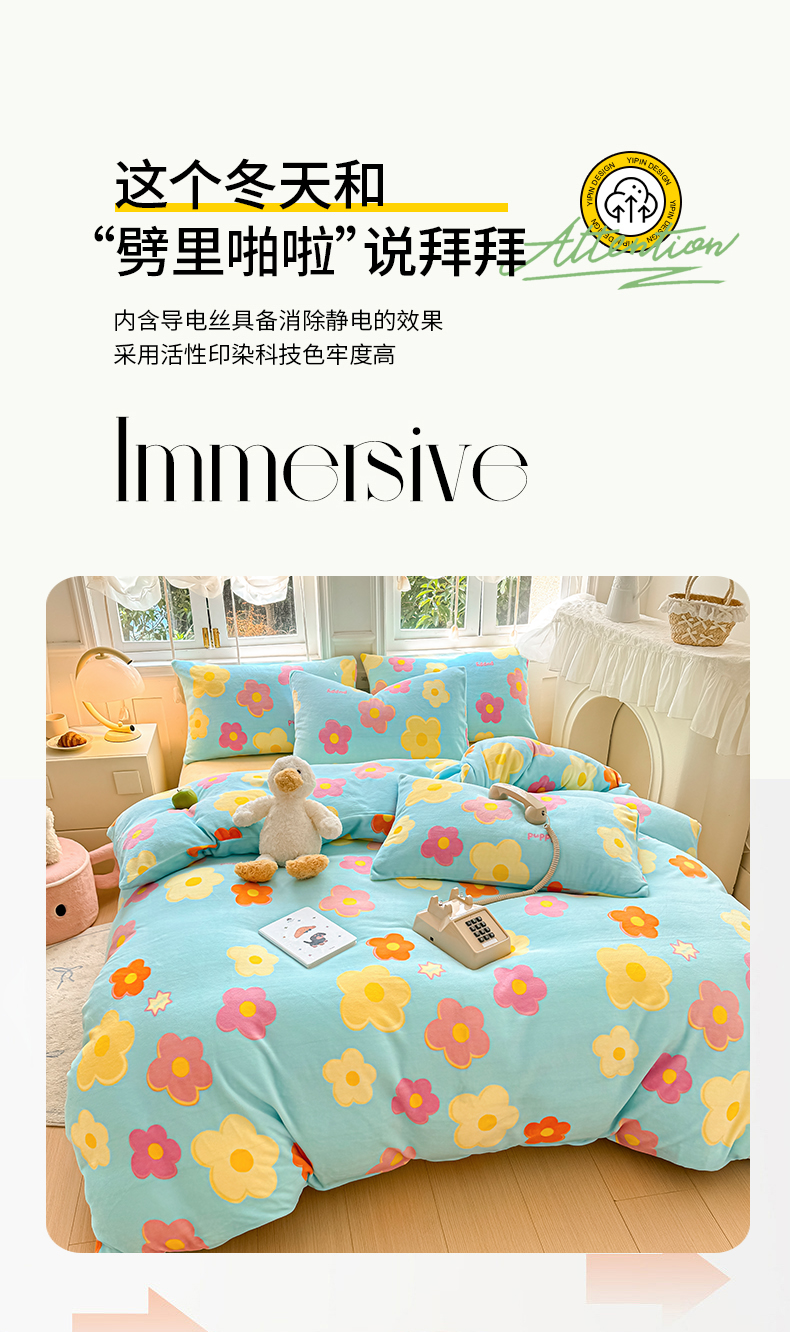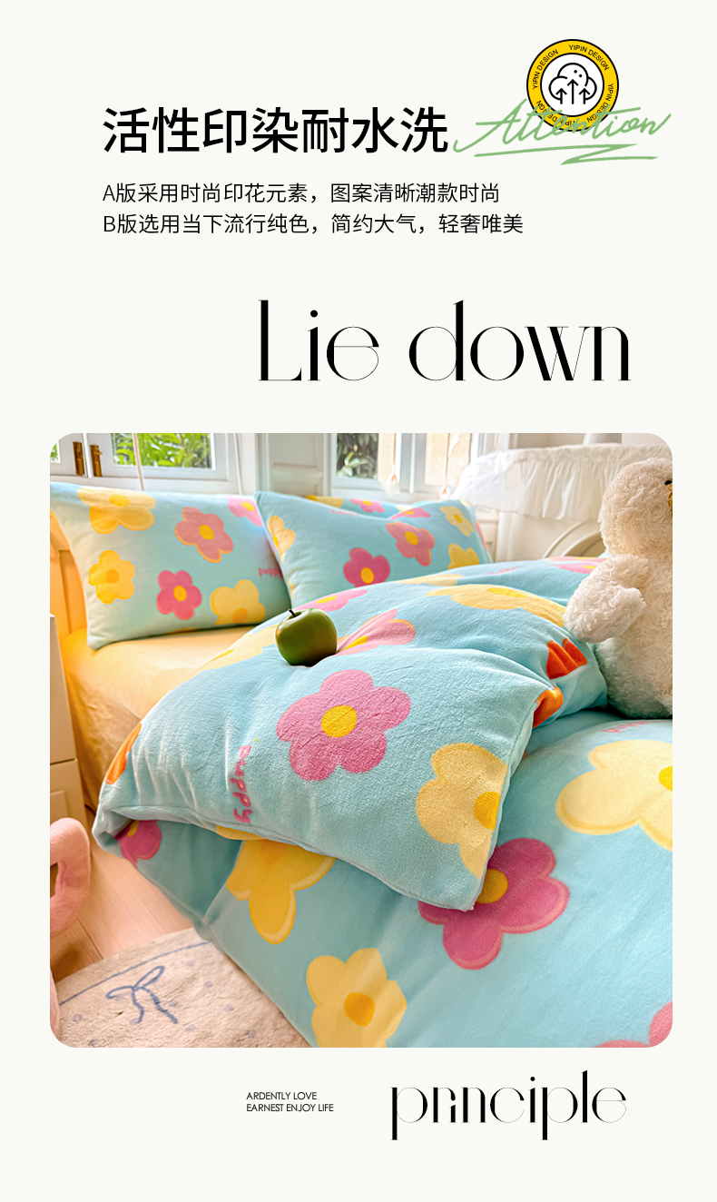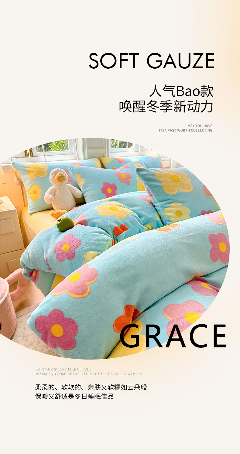 商品名称:红粉佳人 2025新款小清新双面牛奶绒四件套繁花