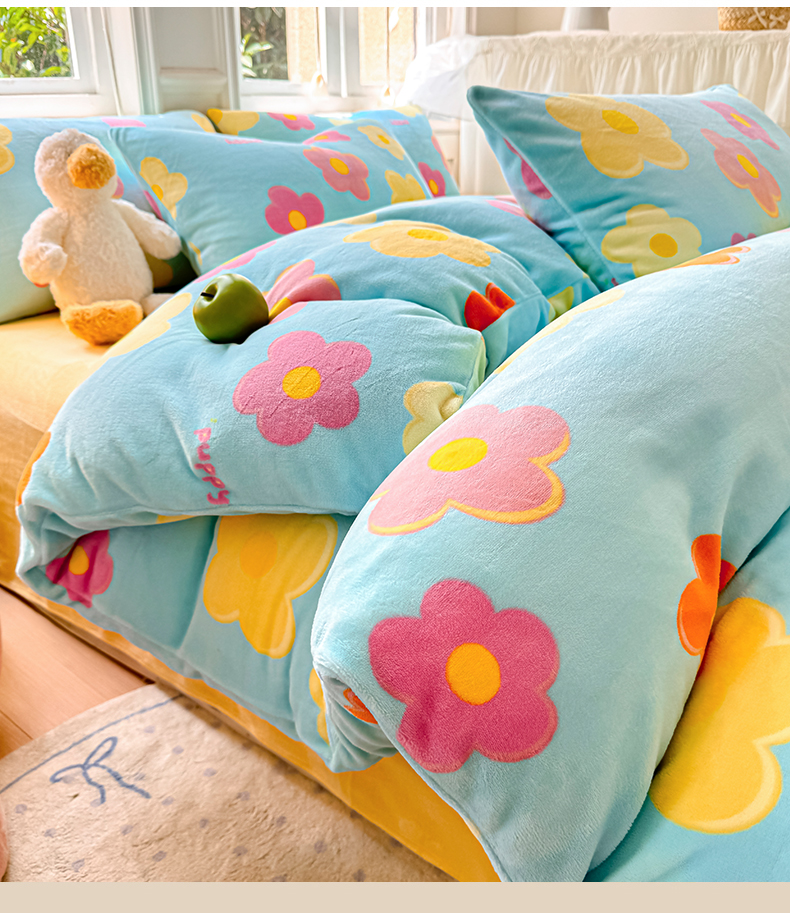 红粉佳人 2025新款小清新双面牛奶绒四件套繁花