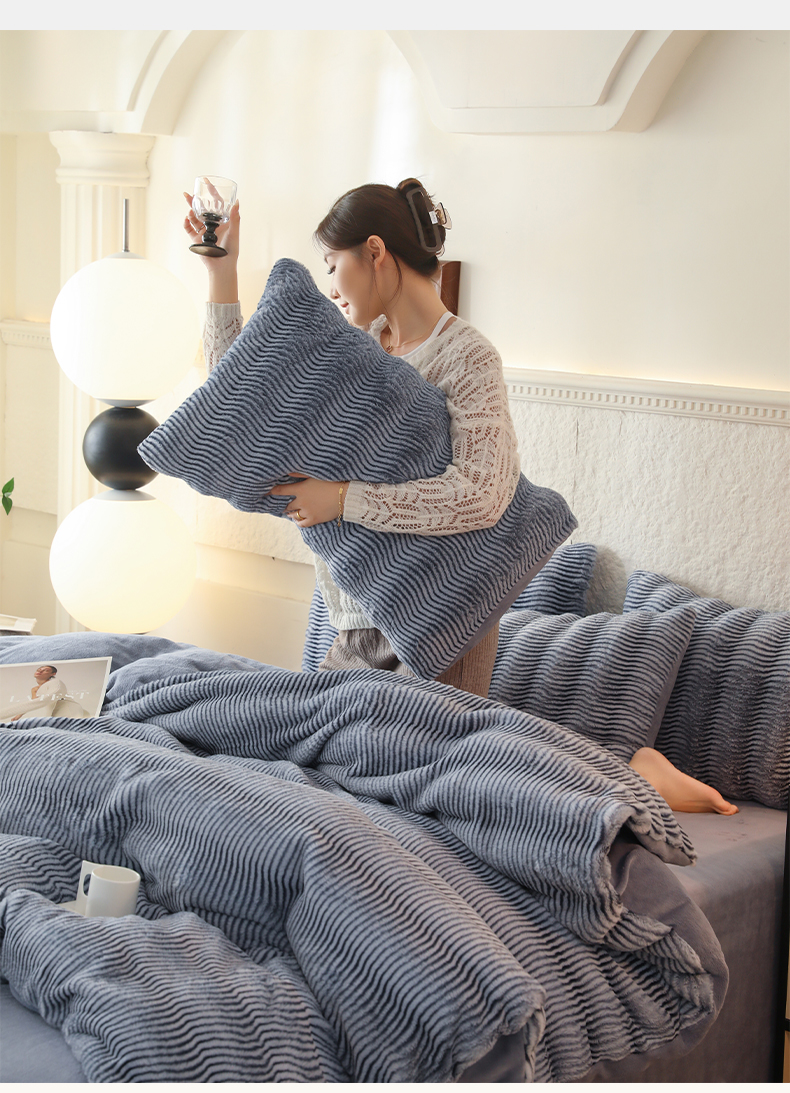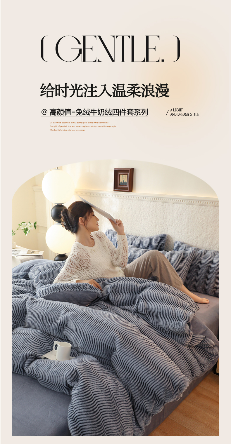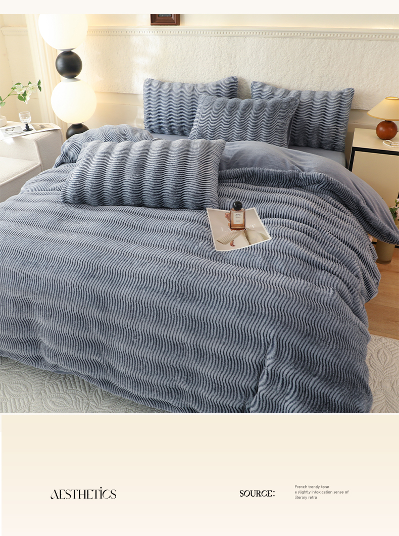 当前位置: 91家纺网 > 商品网购 > 床品套件 > 四件套 > 兔毛绒四件套 > 逸尚阁 2024新款极奢兔绒牛奶绒四件套 极光蓝