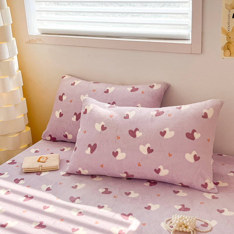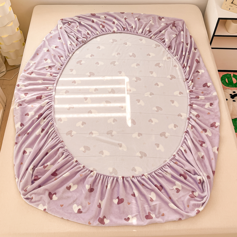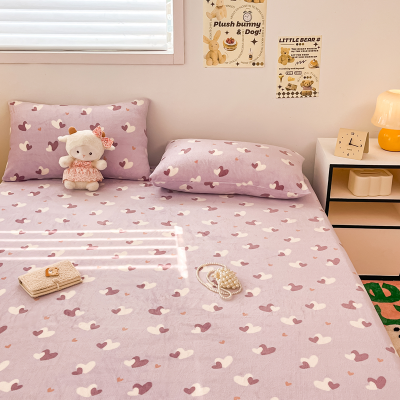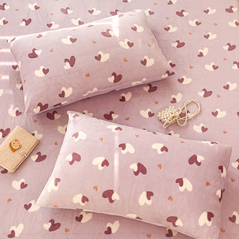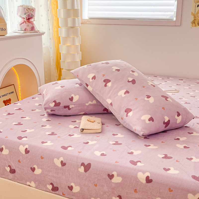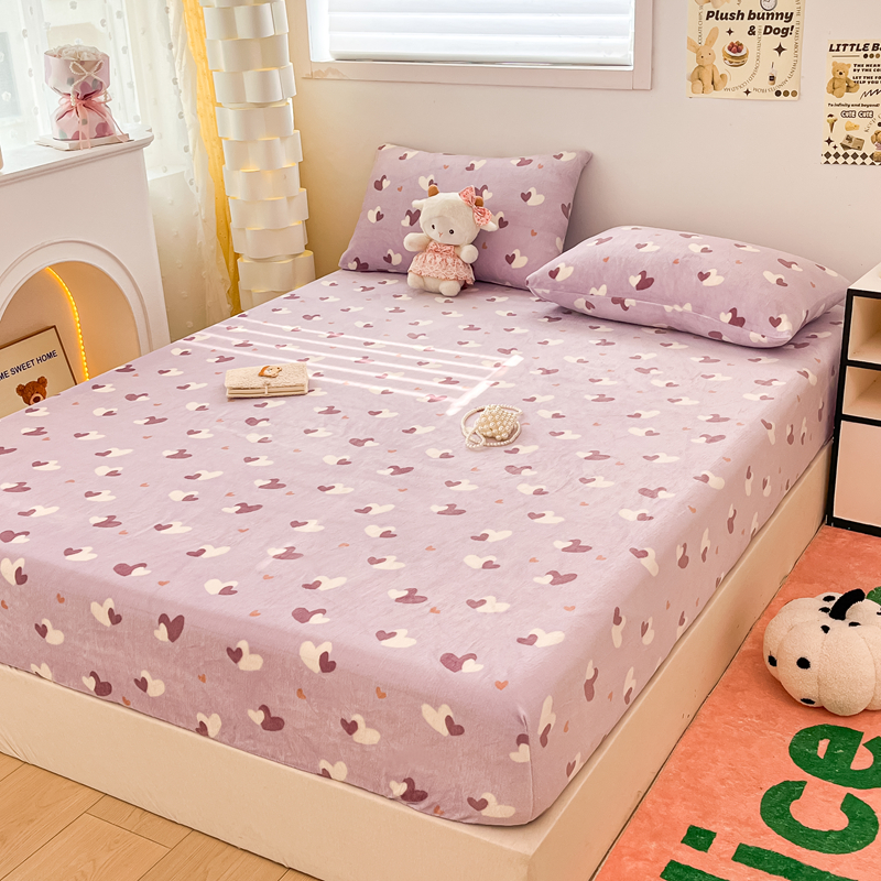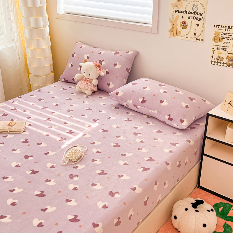 默忆 2025新款加厚印花牛奶绒床笠三件套单床笠 心相印