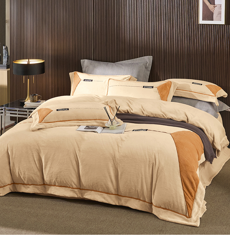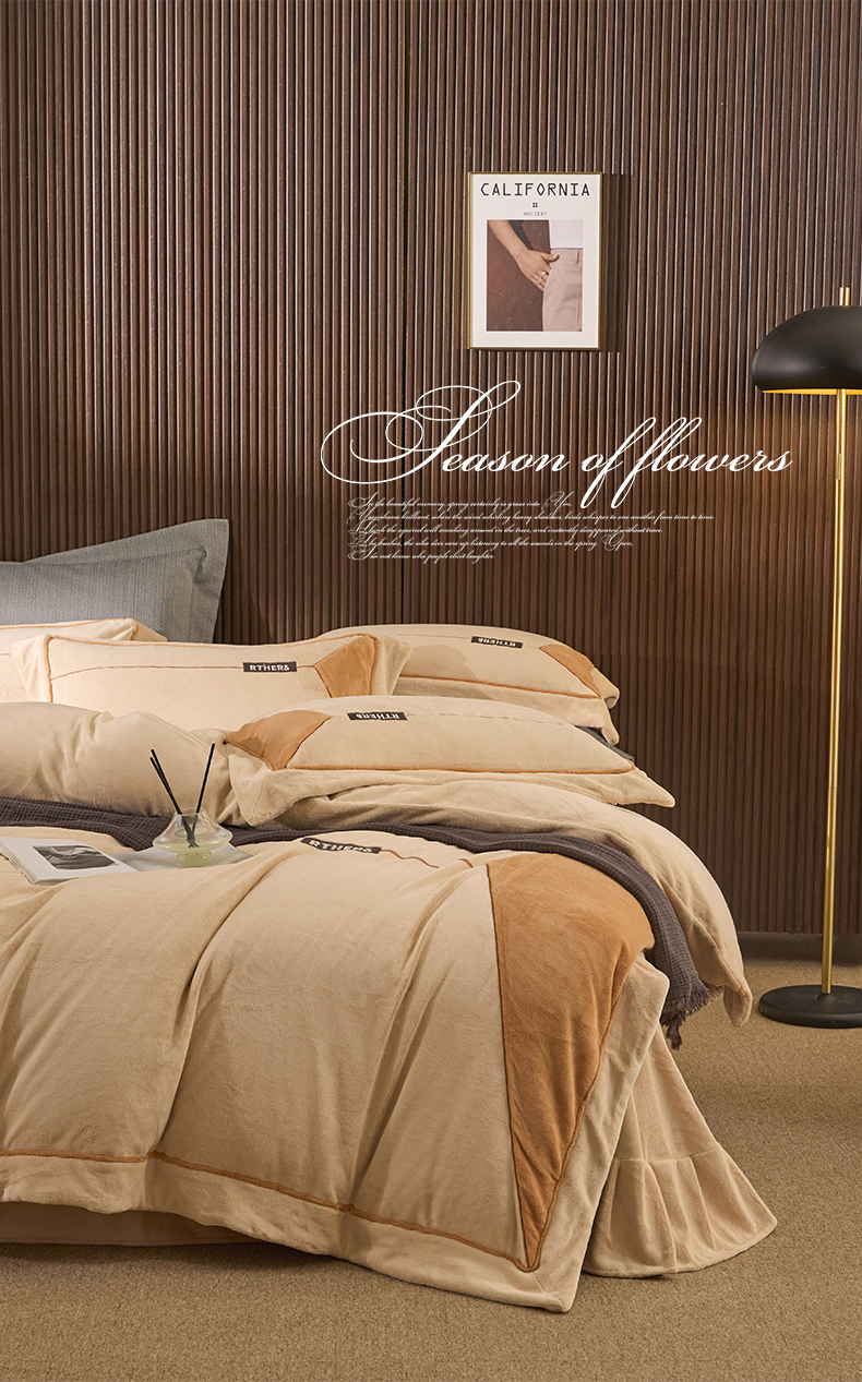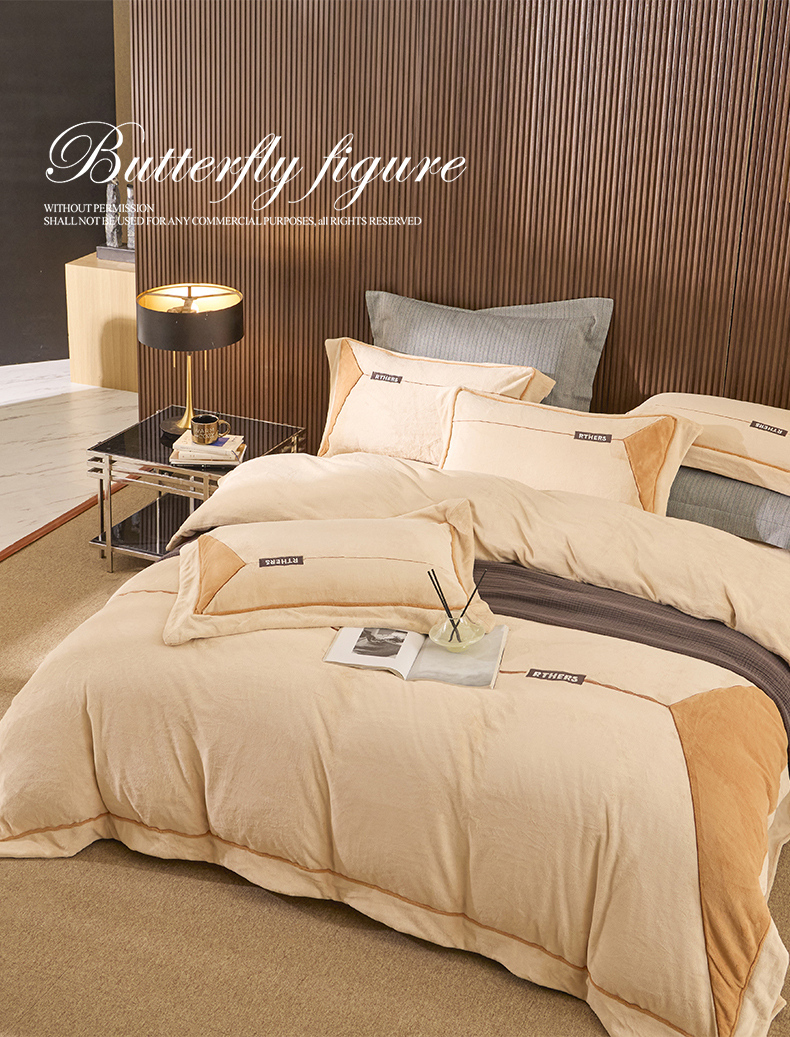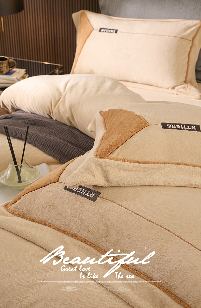 名品优仓 2024新款高克重牛奶绒刺绣四件套-巴伦西亚 甜灰