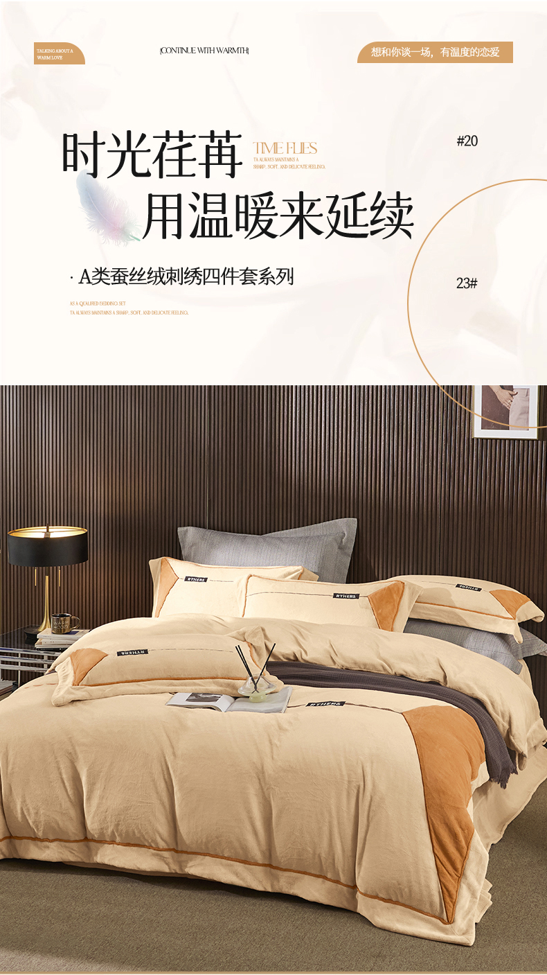 商品名称:名品优仓 2024新款高克重牛奶绒刺绣四件套-巴伦西亚 甜灰