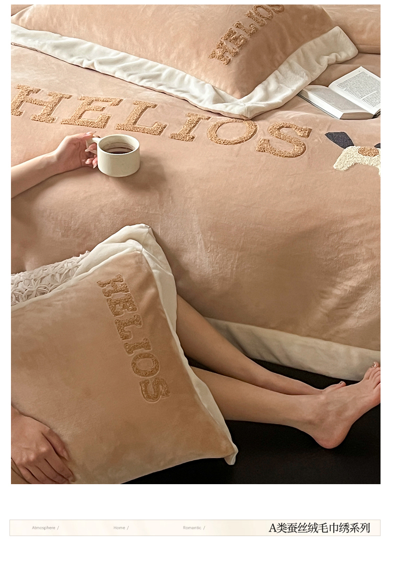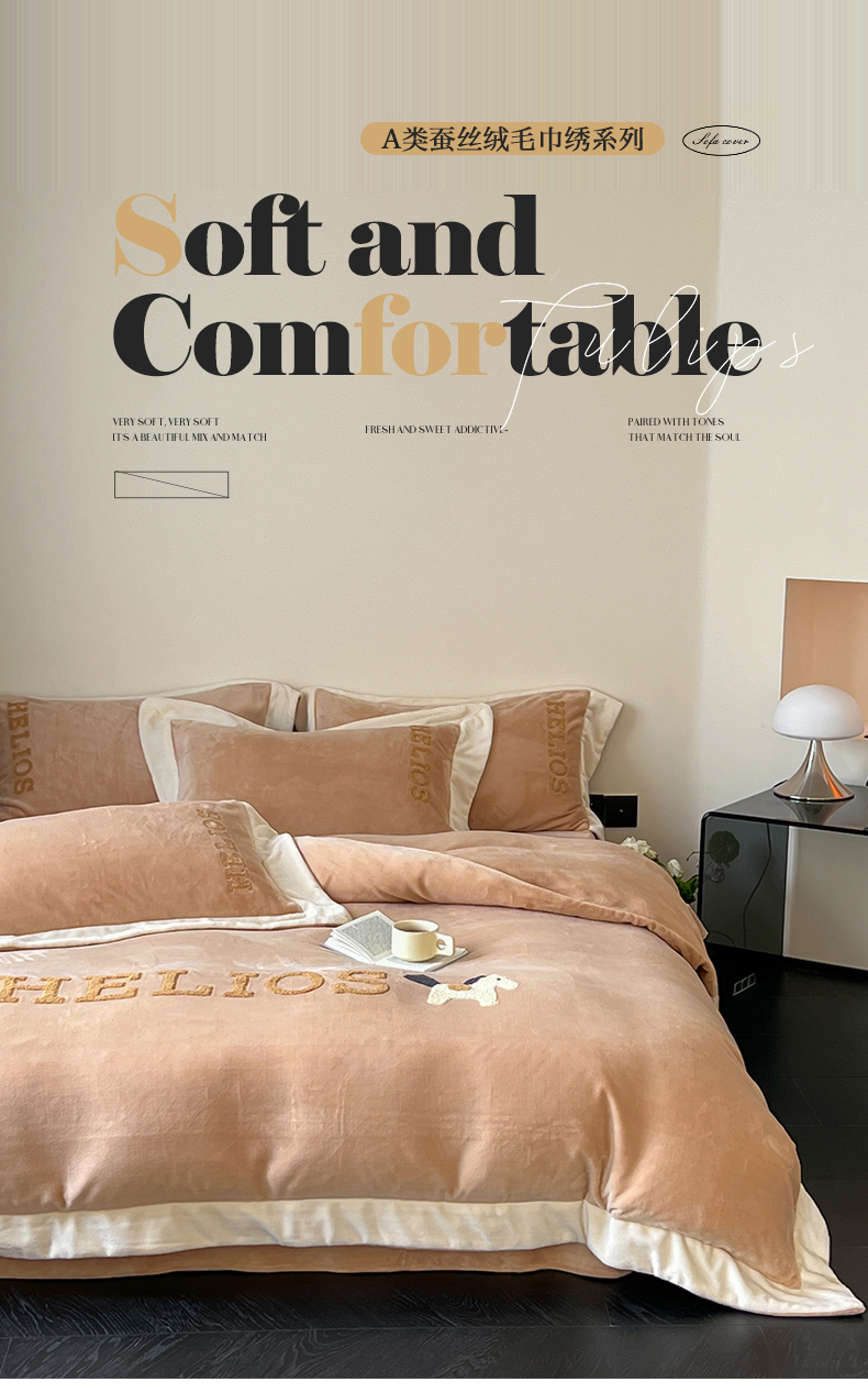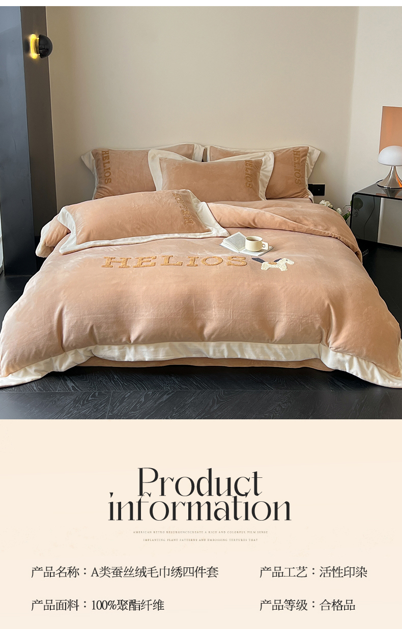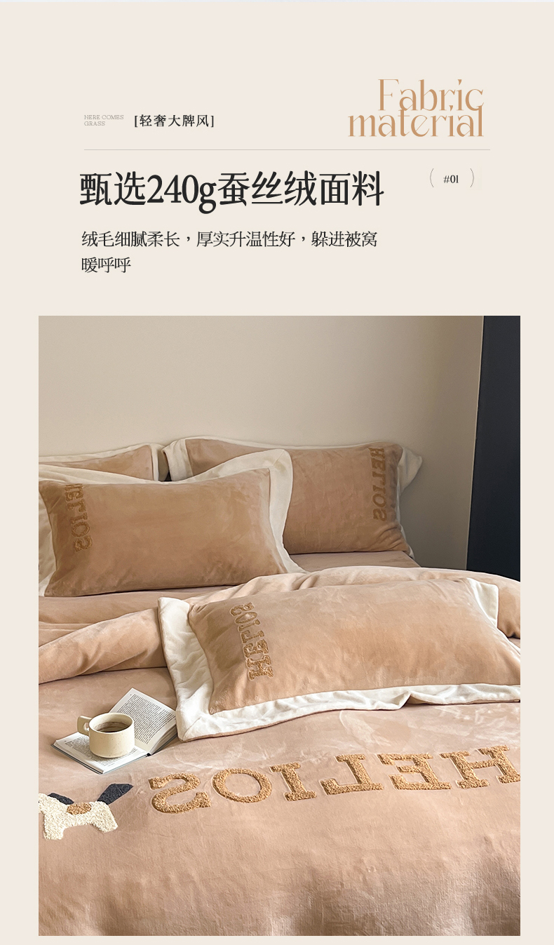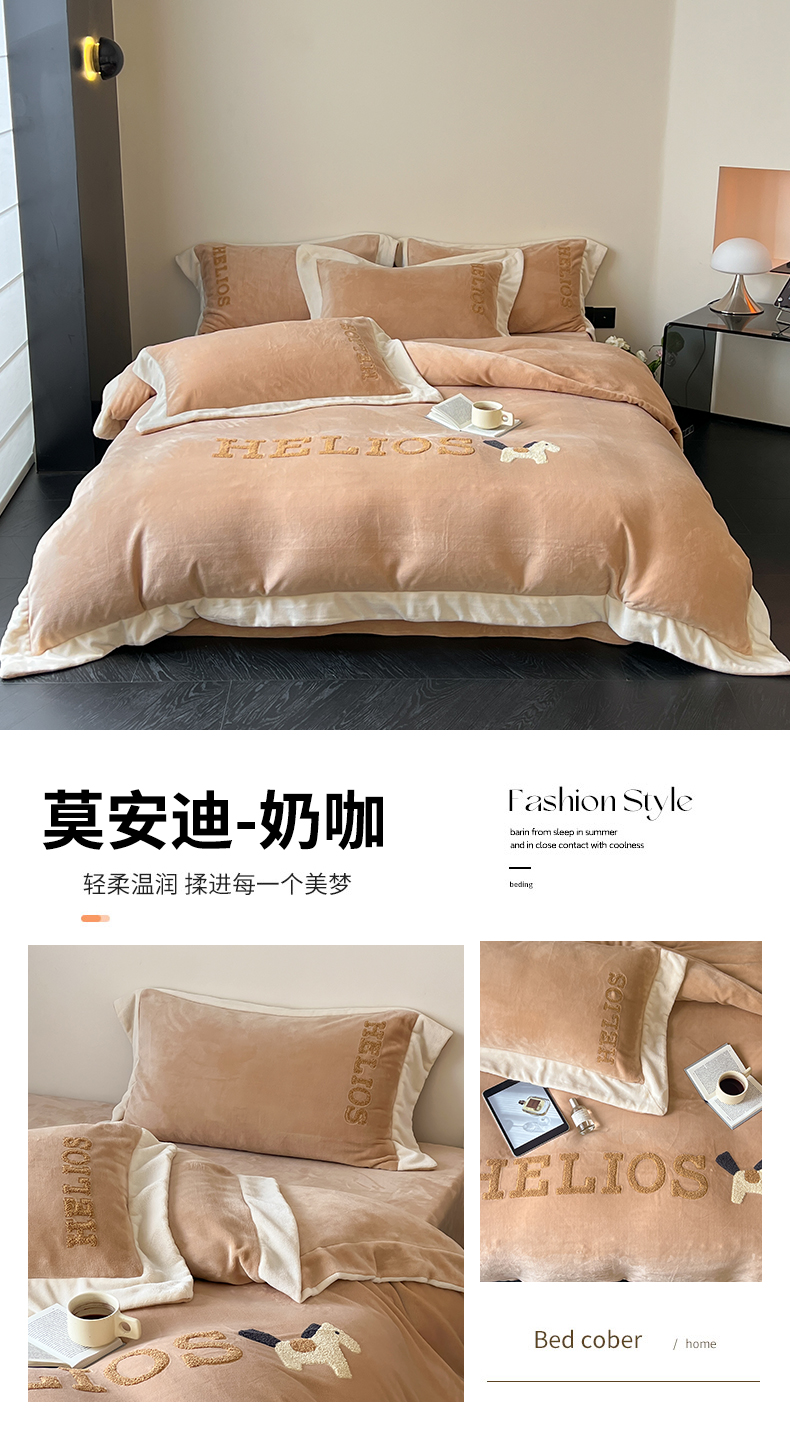 商品名称:名品优仓 2024新款高克重牛奶绒毛巾绣四件套-莫安迪 莫安迪-奶咖