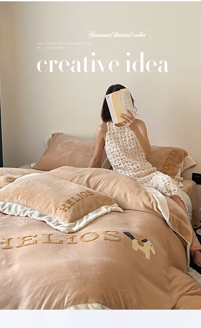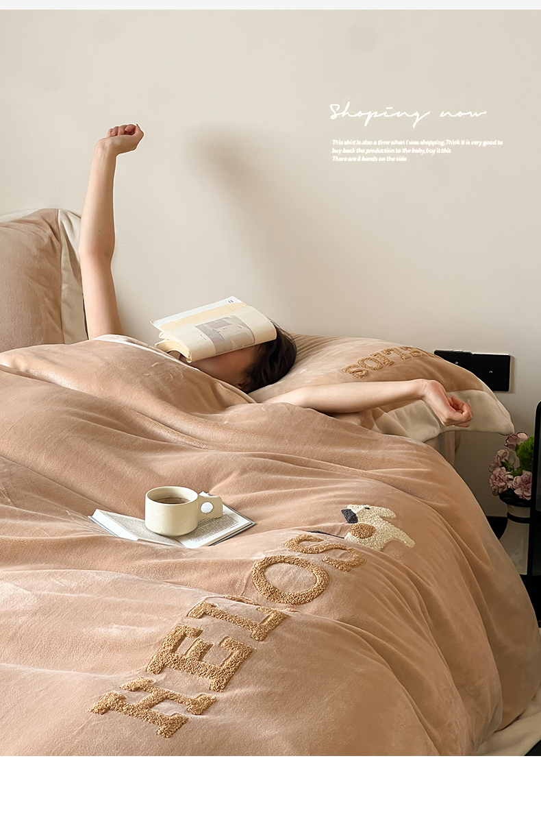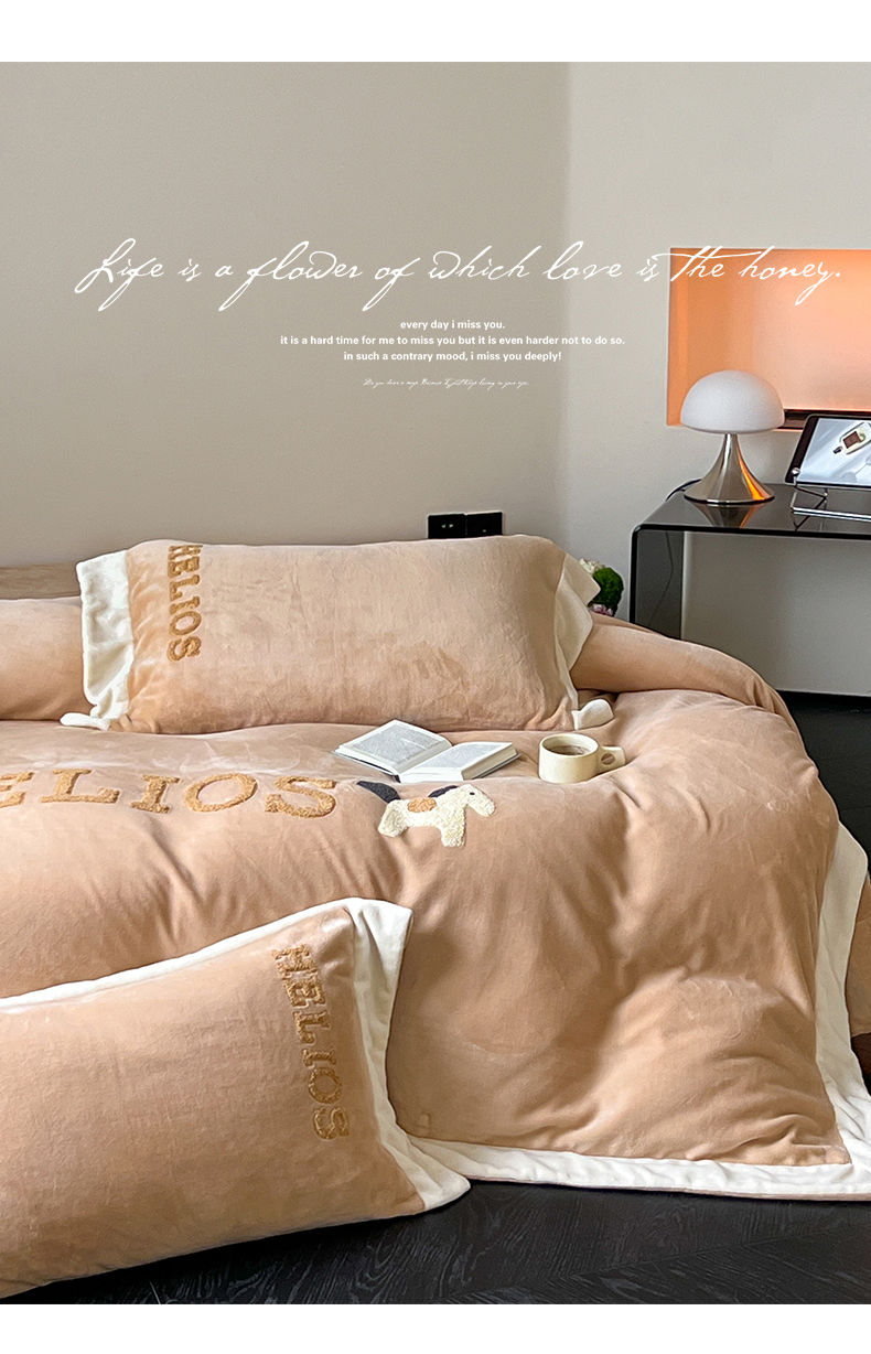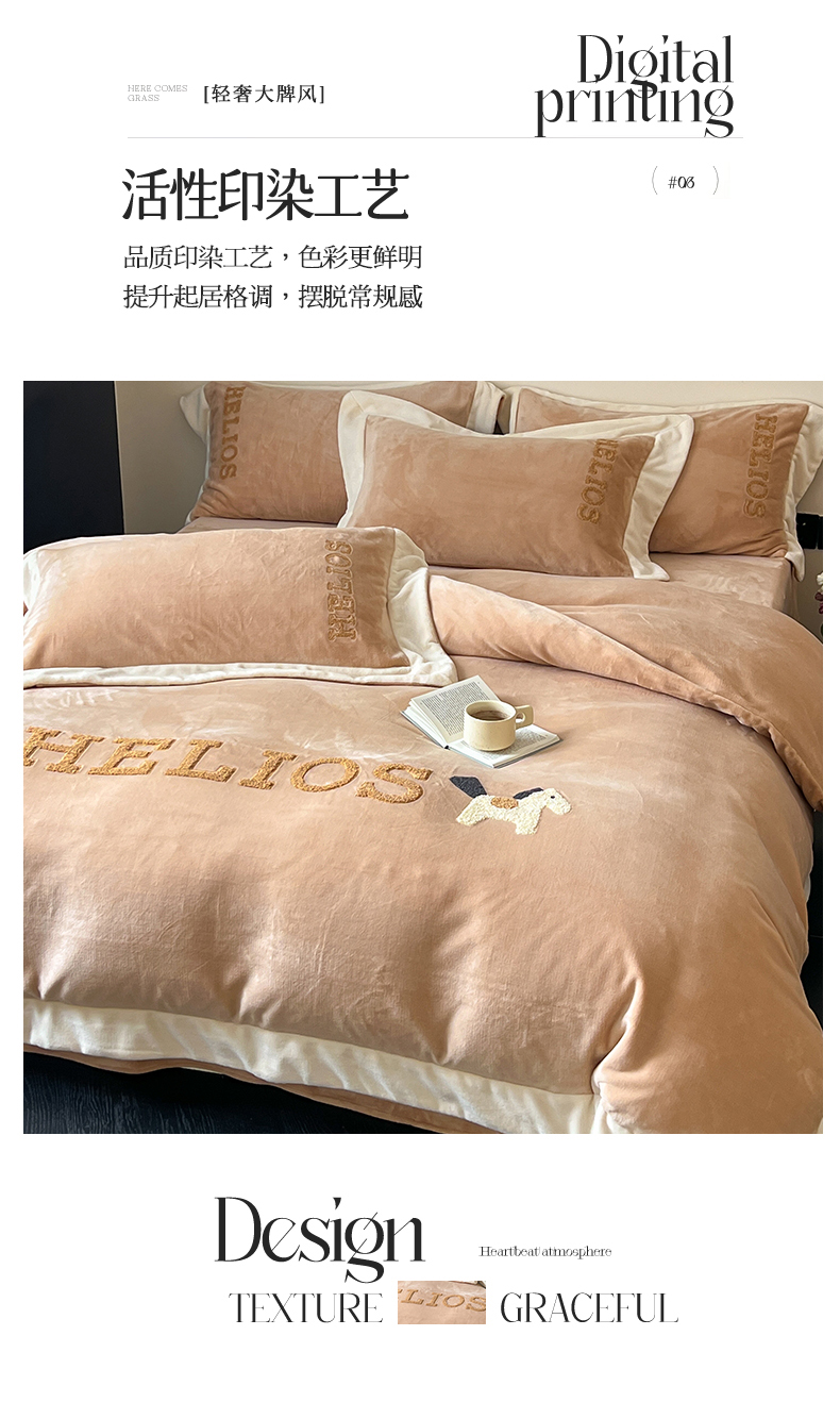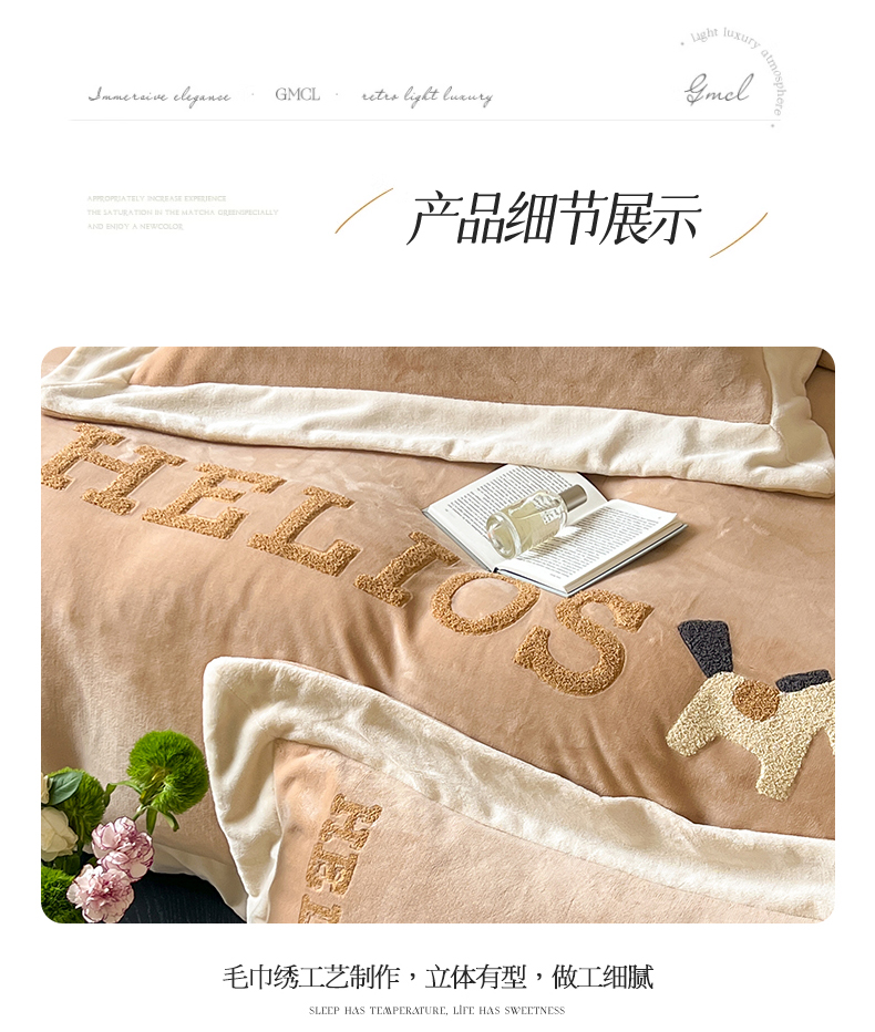 商品名称:名品优仓 2024新款高克重牛奶绒毛巾绣四件套-莫安迪 莫安迪-奶咖