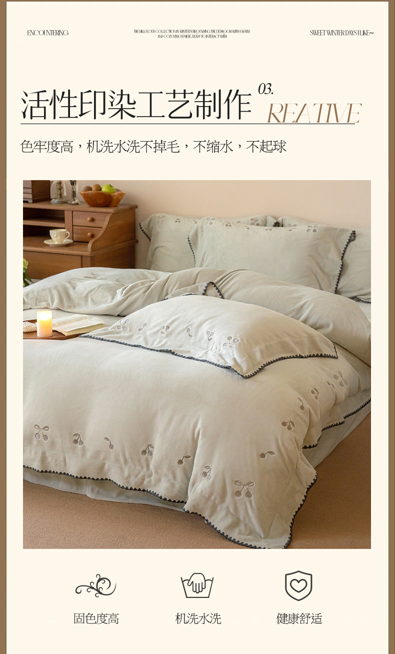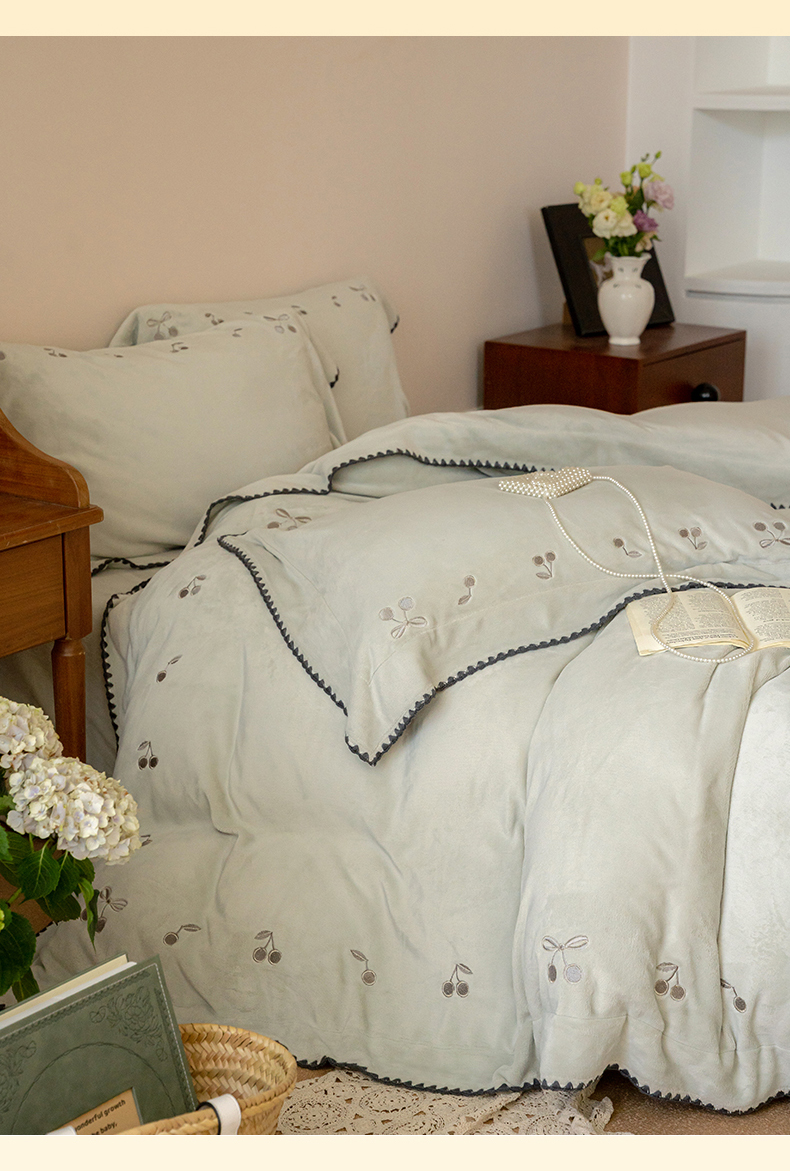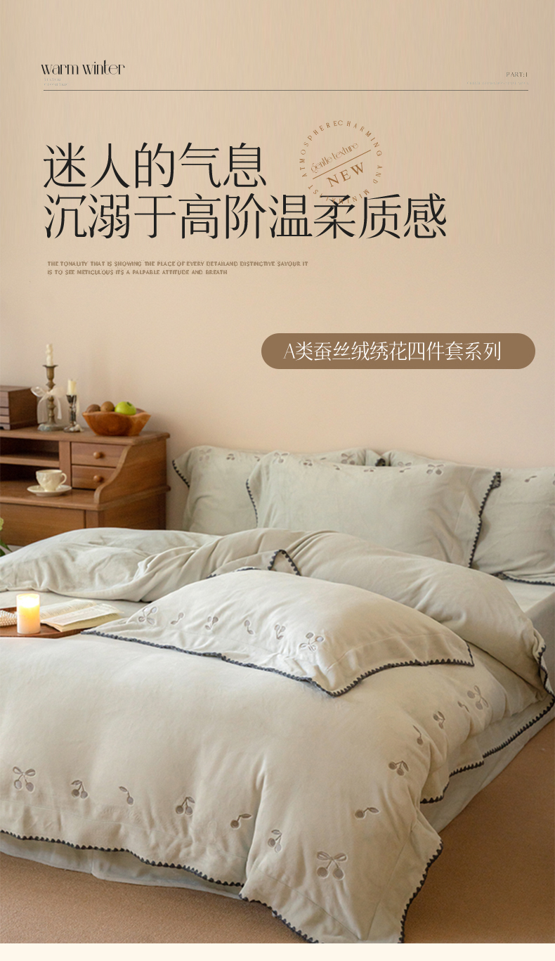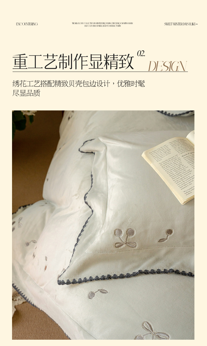 名品优仓 2024新款高克重牛奶绒绣花四件套-樱桃之玥 樱桃之玥-甜灰